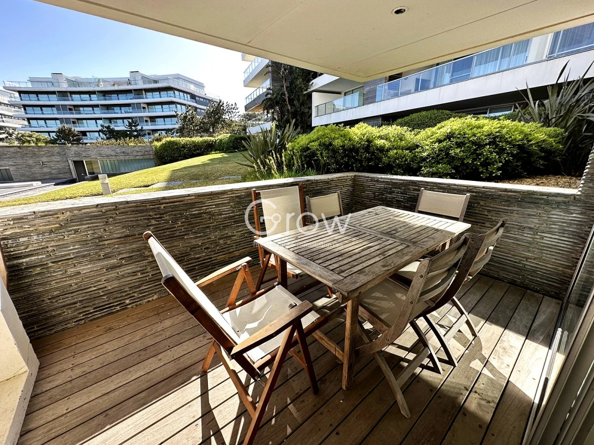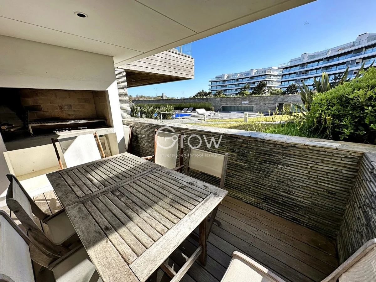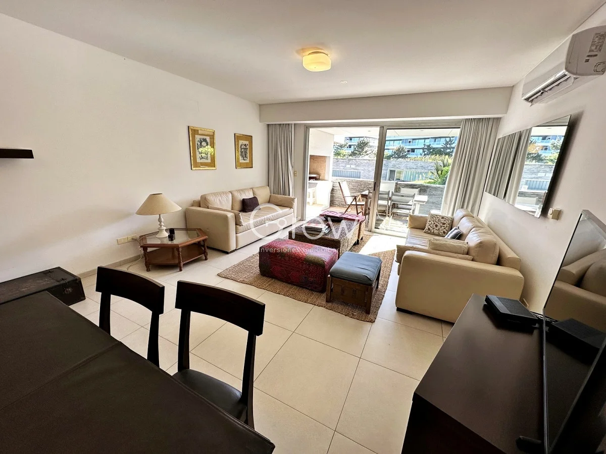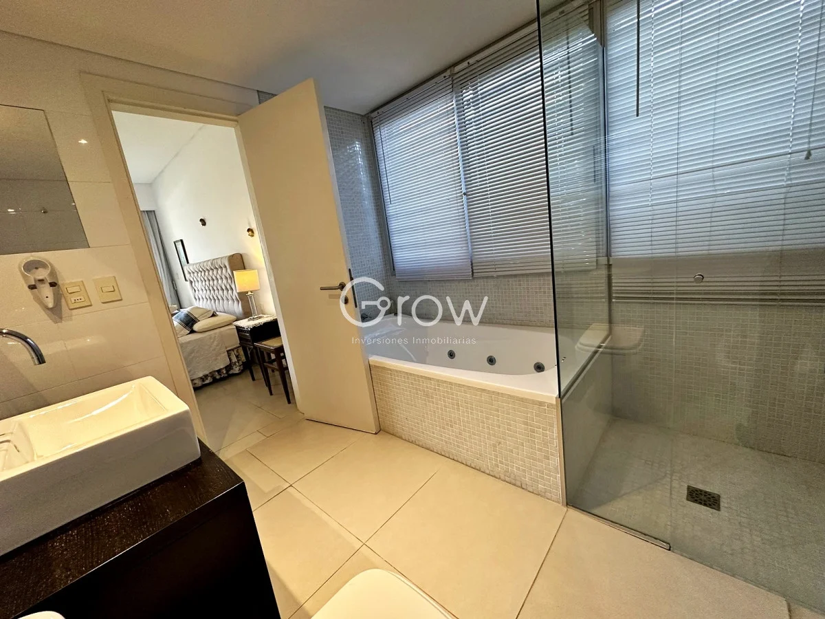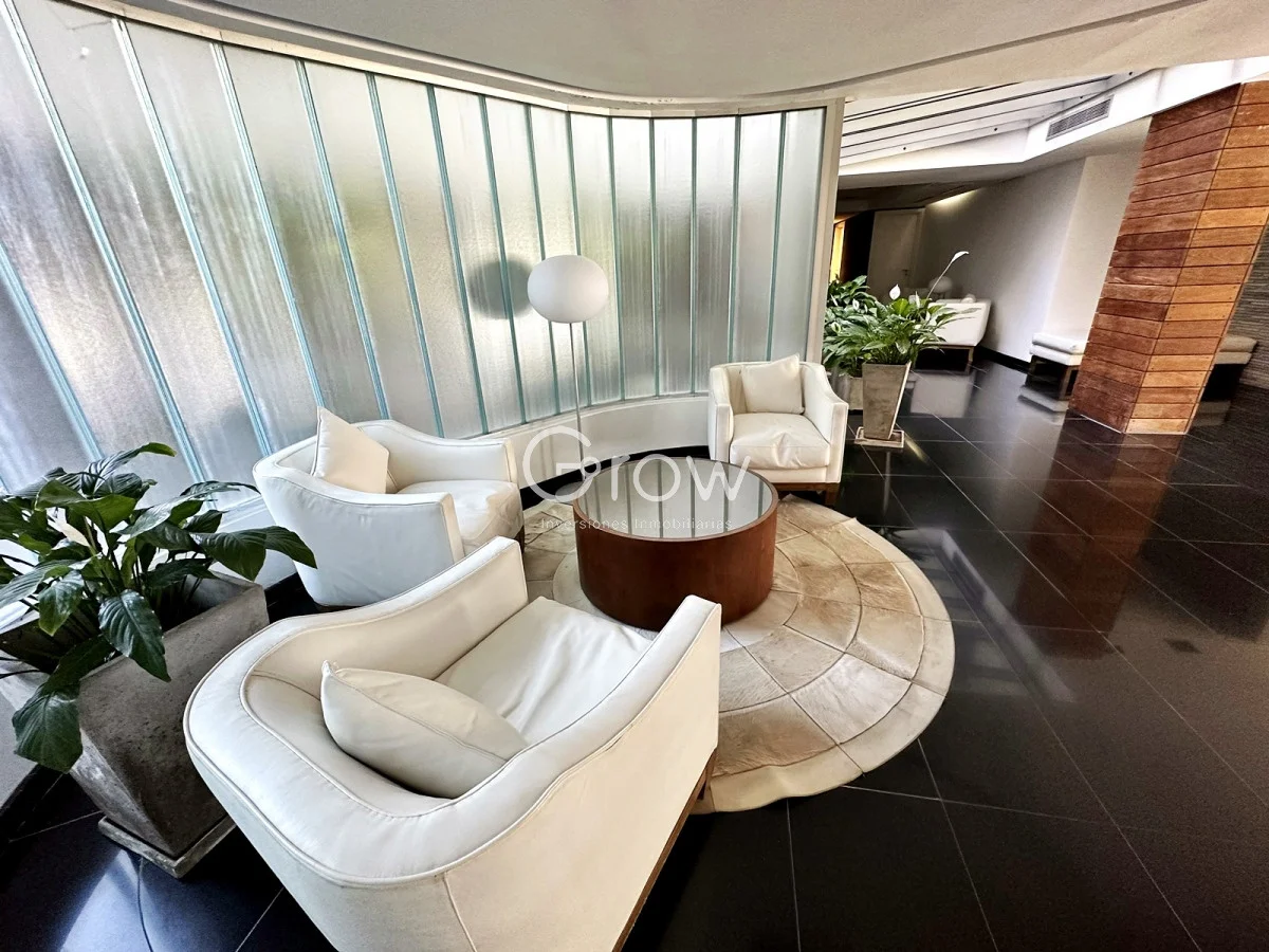 Amplios apartamentos con servicio de mucamas, recepción 24 hs, piscina climatizada, gimnasio, parrillero, sauna, sala de masajes.