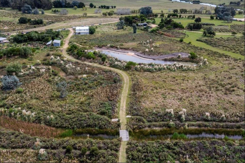 En la ribera más alta del humedal, el lote lindero cuenta con un bosque lineal en crecimiento con especies nativas como ombú, coronilla, canelón y ceibo, todas emblemáticas del paisaje uruguayo.