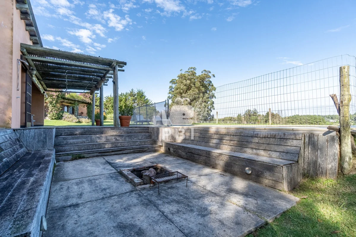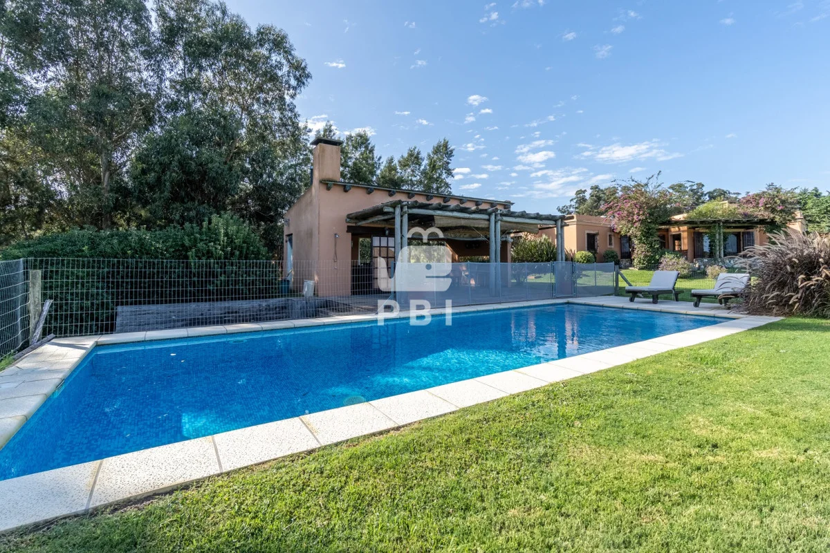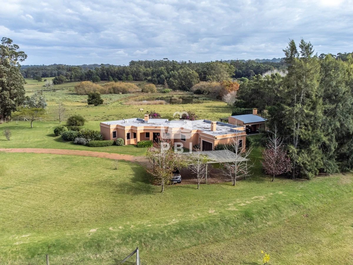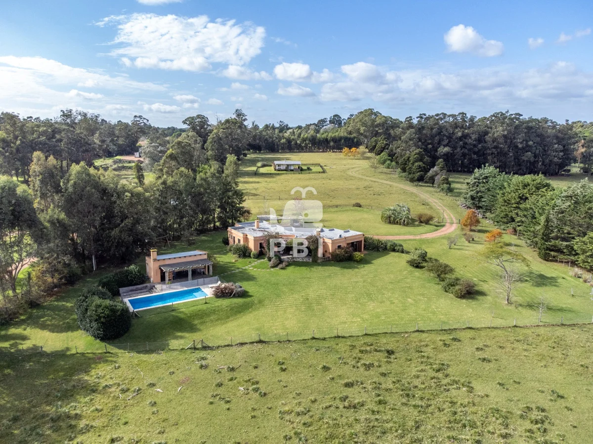 Chacra de 5 hectáreas con casa principal de 5 dormitorios, living comedor y cocina equipada. Cuenta con barbacoa, piscina y casa de huéspedes de 2 dormitorios, living comedor y cocina integrada. Entorno totalmente parquizado, tajamar y pozo de agua.