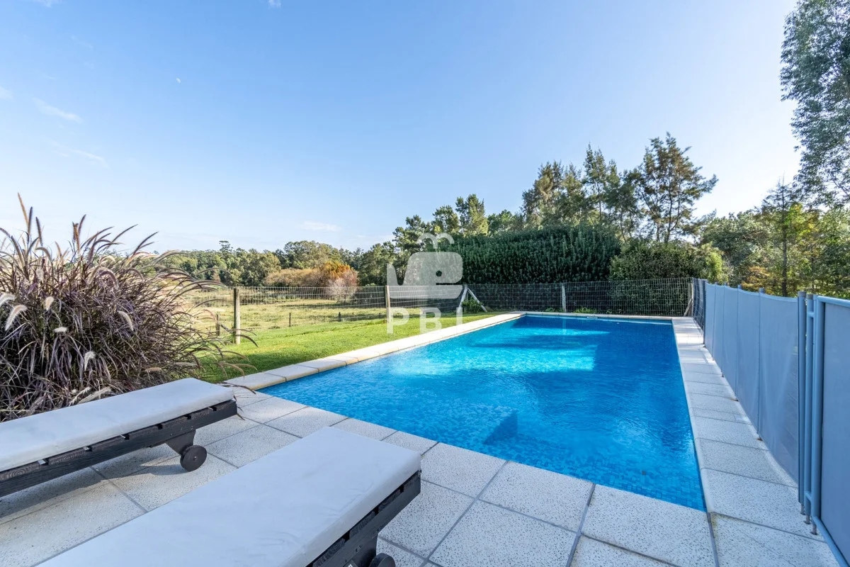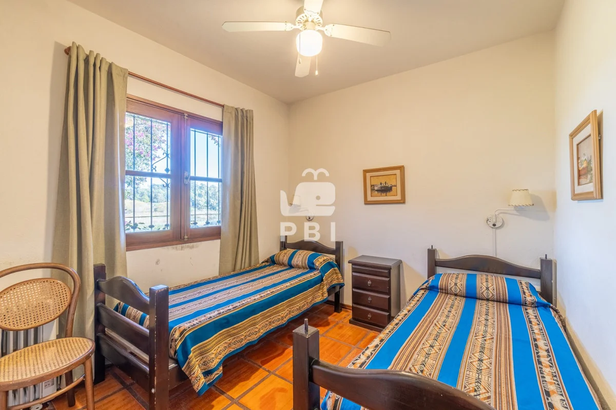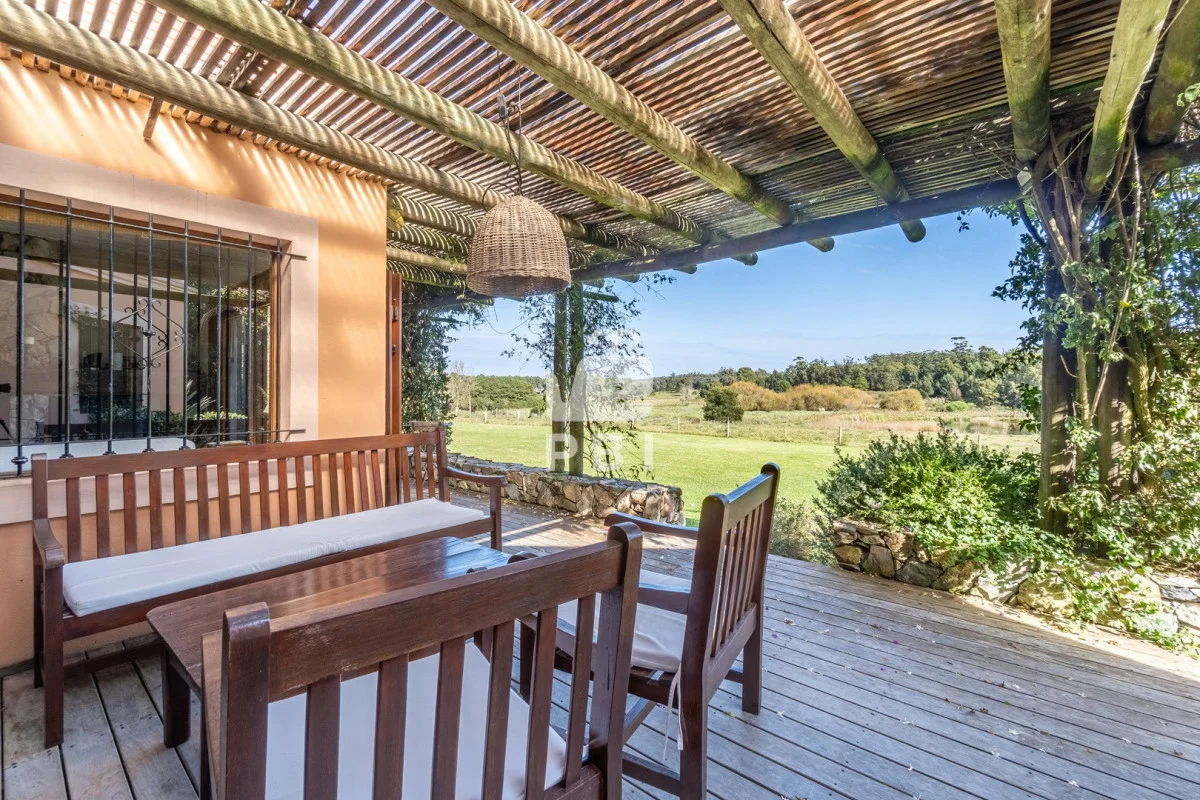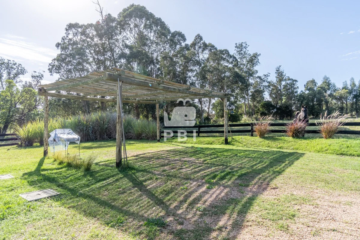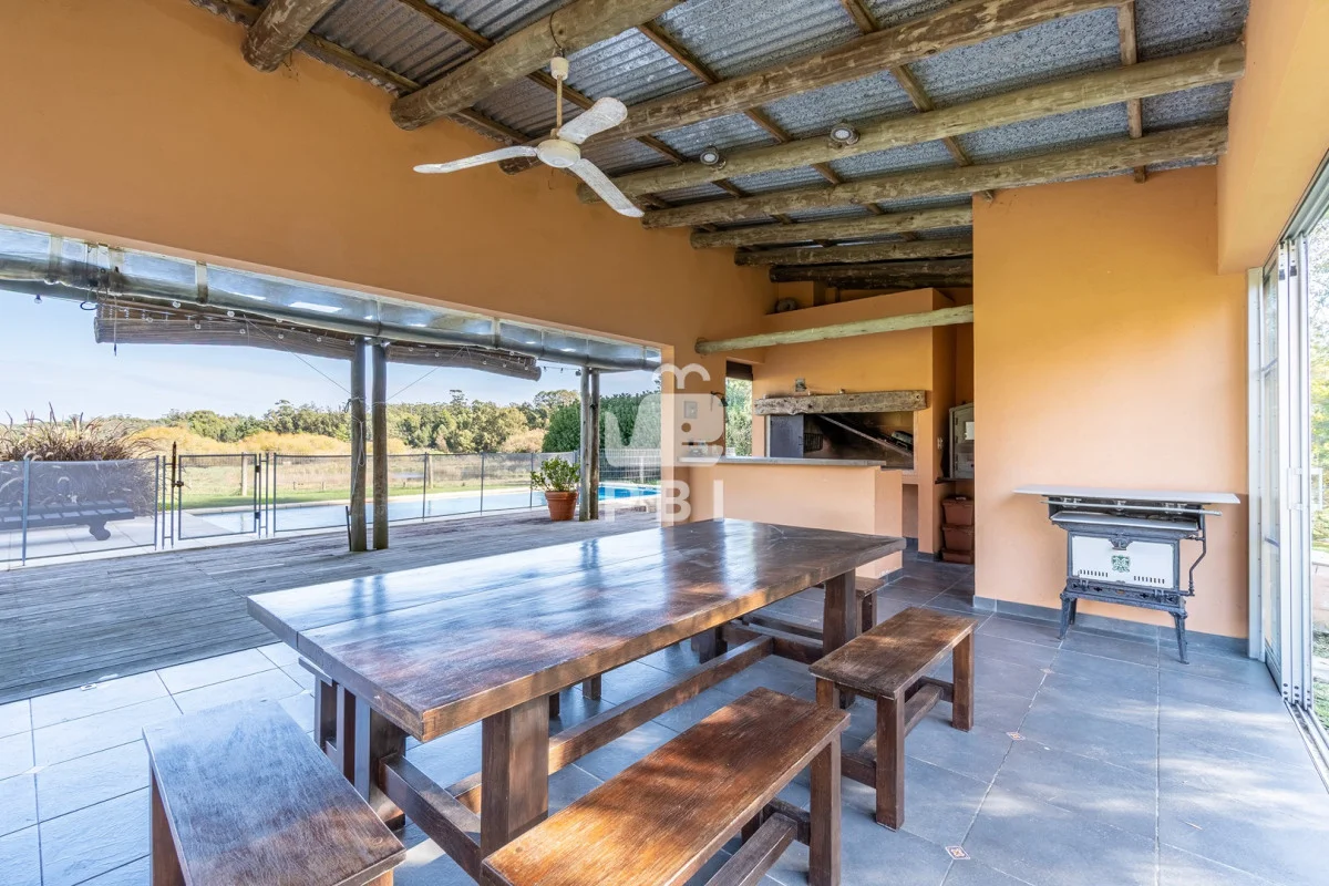Chacra de 5 hectáreas con casa principal de 5 dormitorios, living comedor y cocina equipada. Cuenta con barbacoa, piscina y casa de huéspedes de 2 dormitorios, living comedor y cocina integrada. Entorno totalmente parquizado, tajamar y pozo de agua.