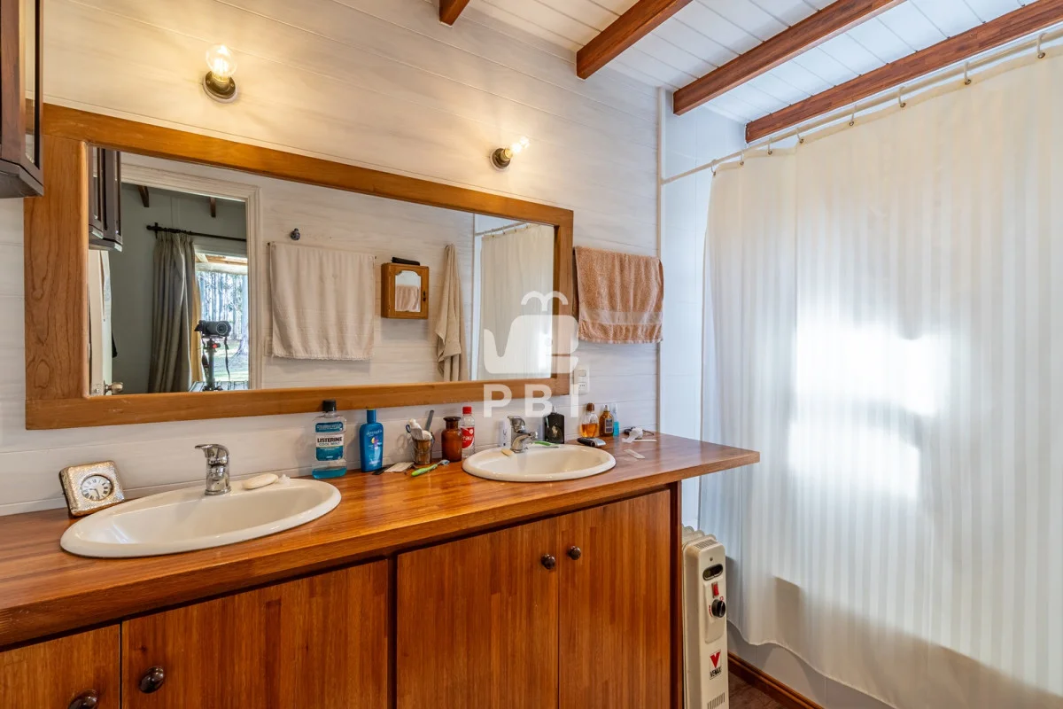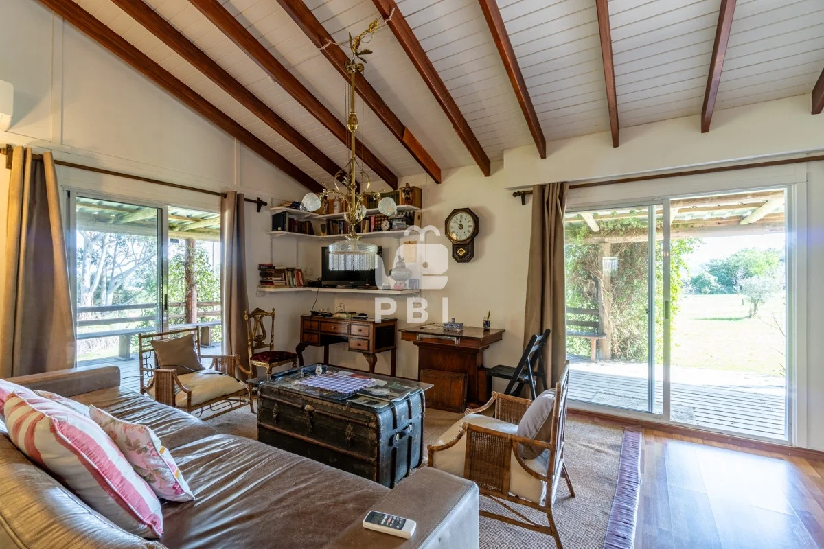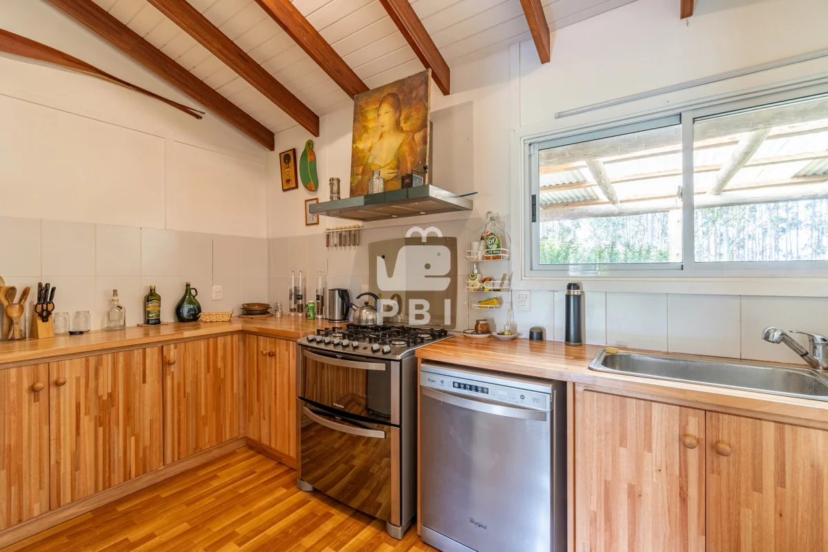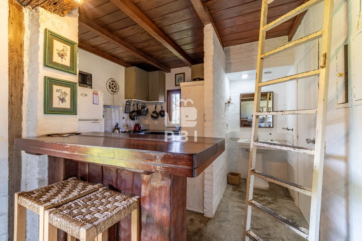 Enmarcada por la belleza natural, esta propiedad ofrece dos cómodas casas. La primera, con 2 dormitorios y 2 baños, presenta un acogedor living con estufa a leña, cocina definida y amplias galerías. La segunda casa, un espacio amplio con cocina integrada y baño, es perfecta para huéspedes o como estudio.