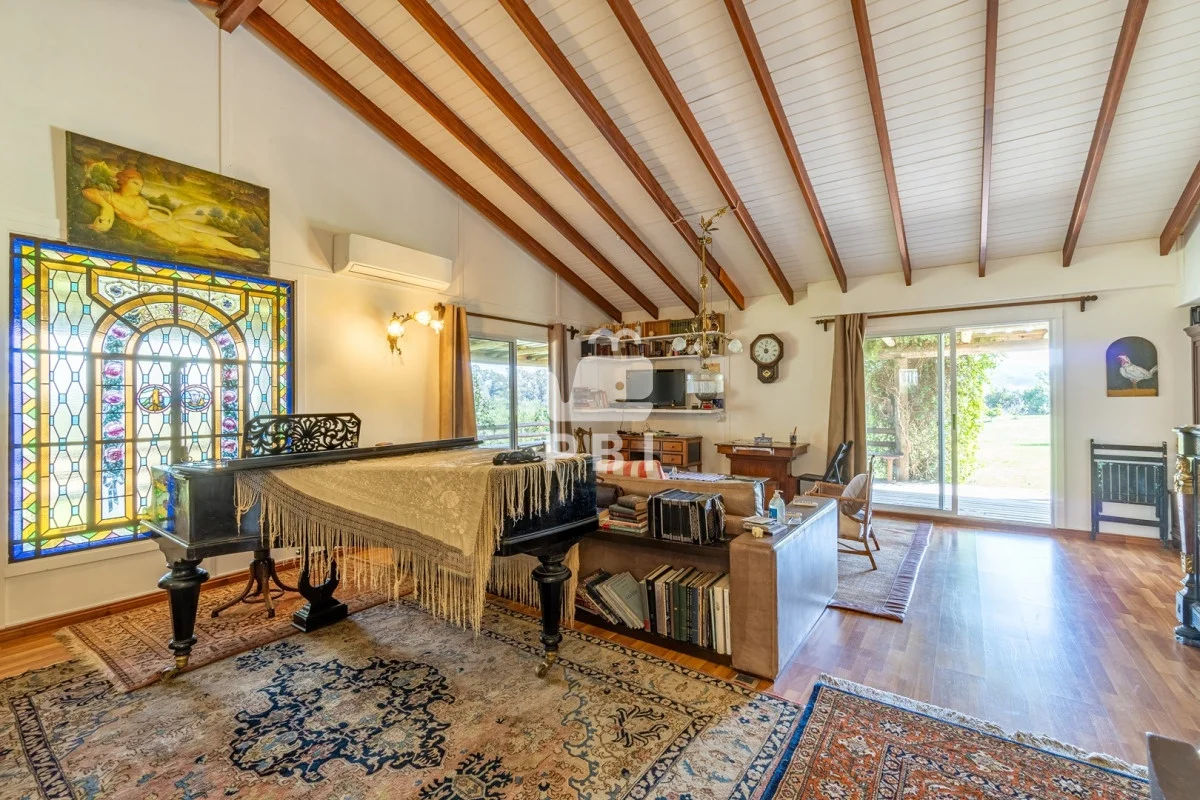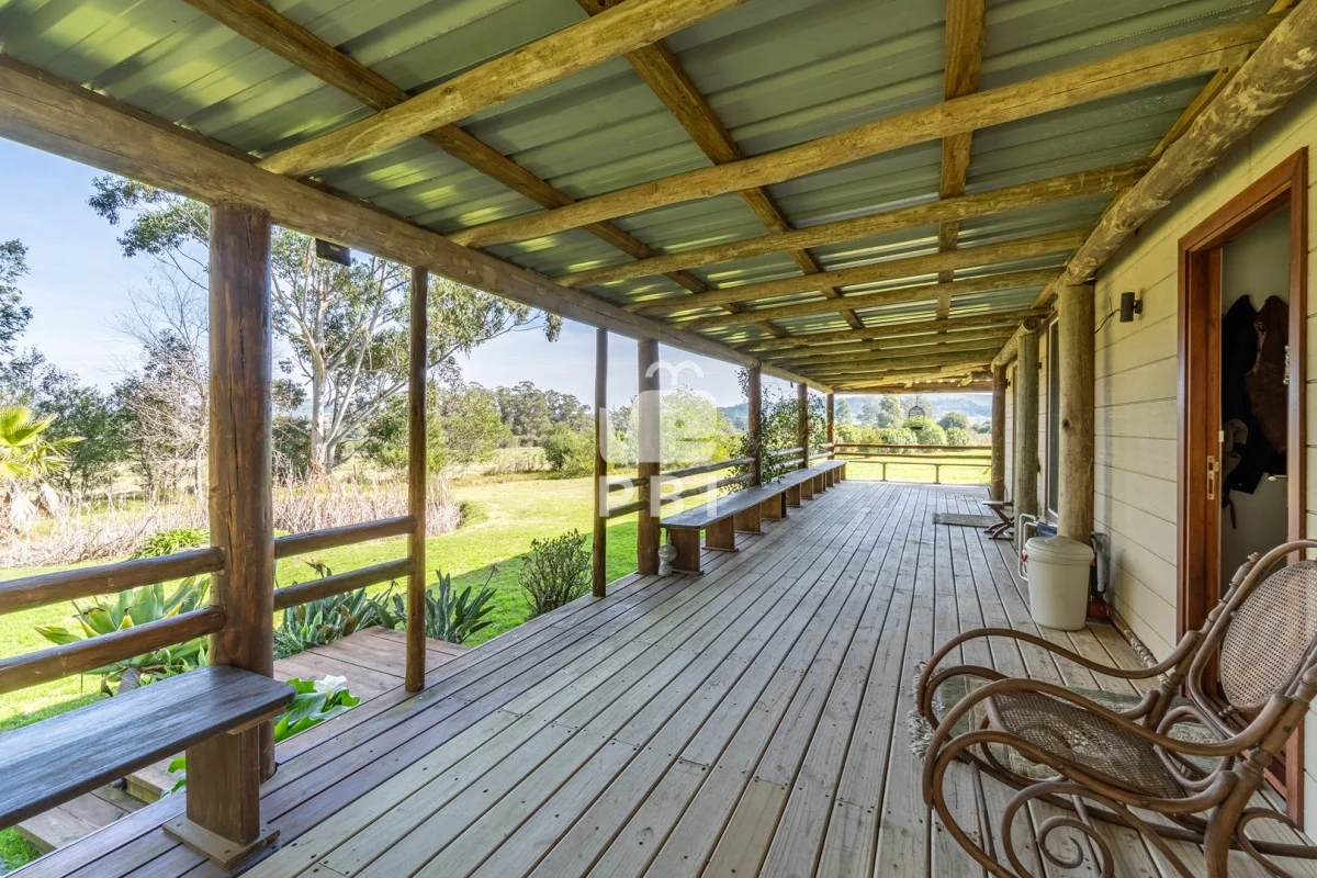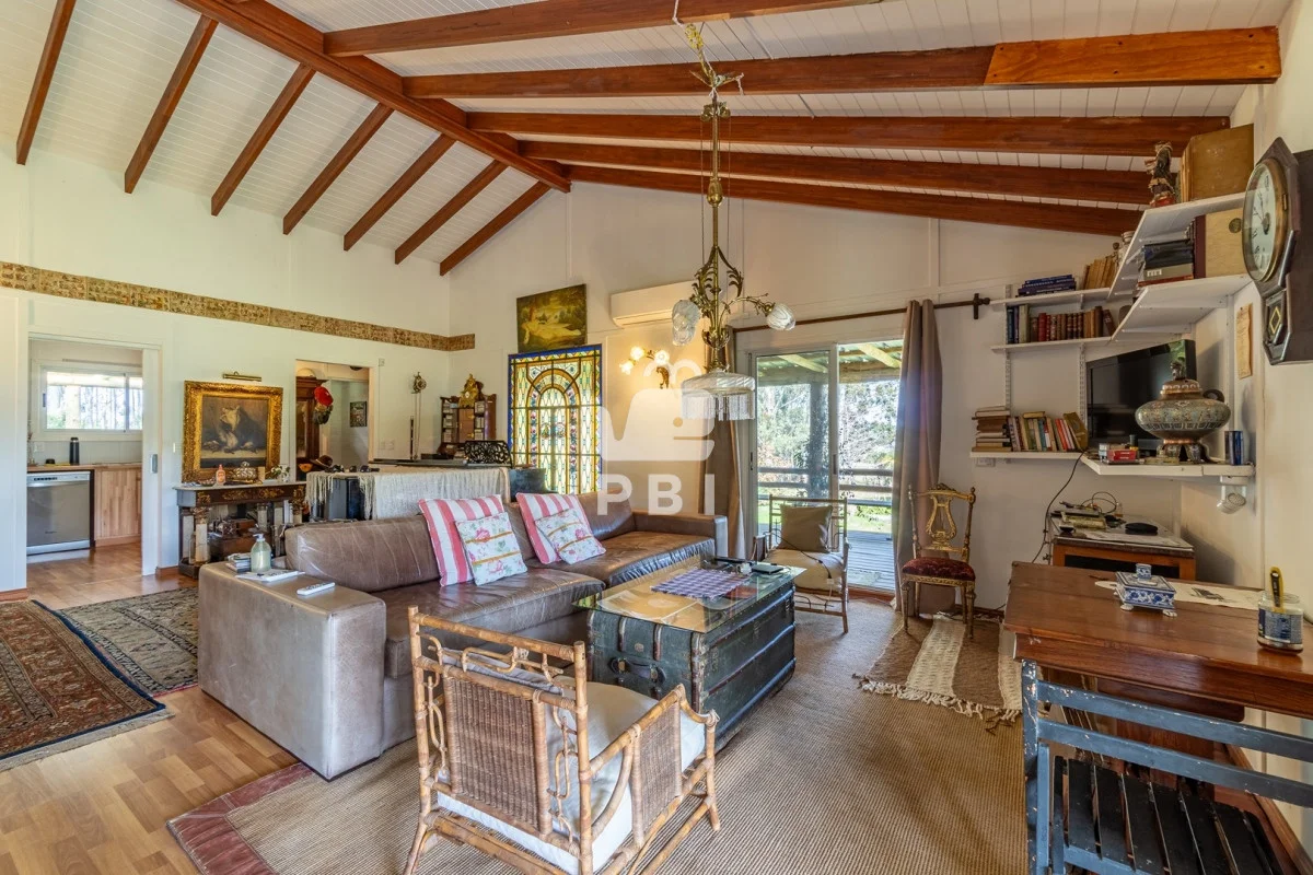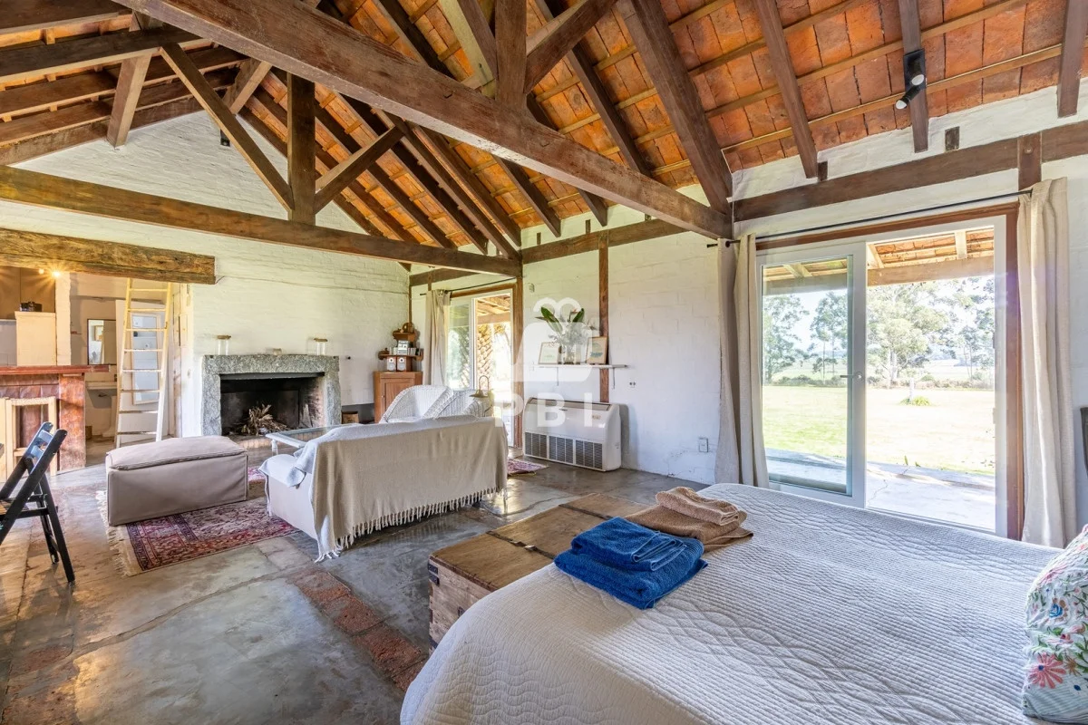 Enmarcada por la belleza natural, esta propiedad ofrece dos cómodas casas. La primera, con 2 dormitorios y 2 baños, presenta un acogedor living con estufa a leña, cocina definida y amplias galerías. La segunda casa, un espacio amplio con cocina integrada y baño, es perfecta para huéspedes o como estudio.