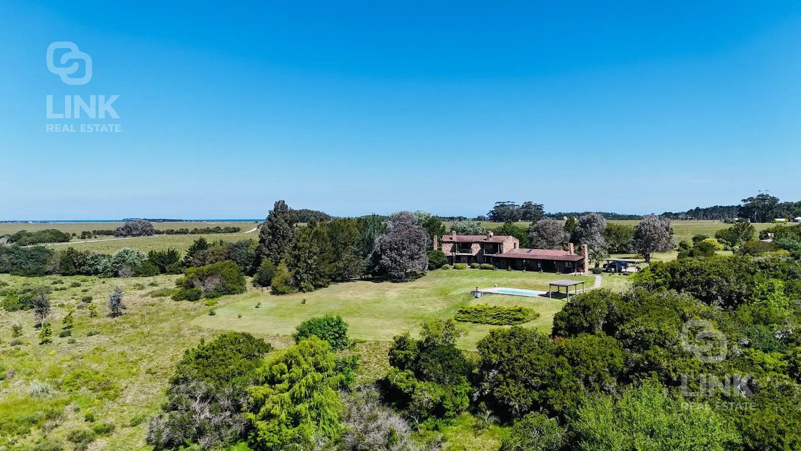 A solo 10 minutos de José Ignacio y a 3 del mar, esta extraordinaria chacra frente a la Laguna Garzon ofrece un refugio de paz en plena naturaleza rodeada de bosques nativos donde se destaca un majestuoso monte de coronillas de más de 150 años, y una rica fauna autóctona.