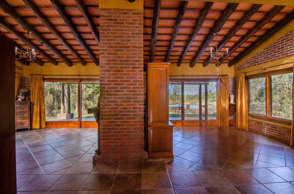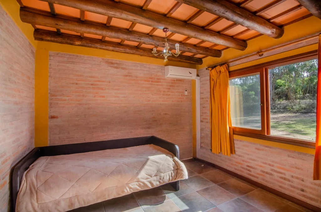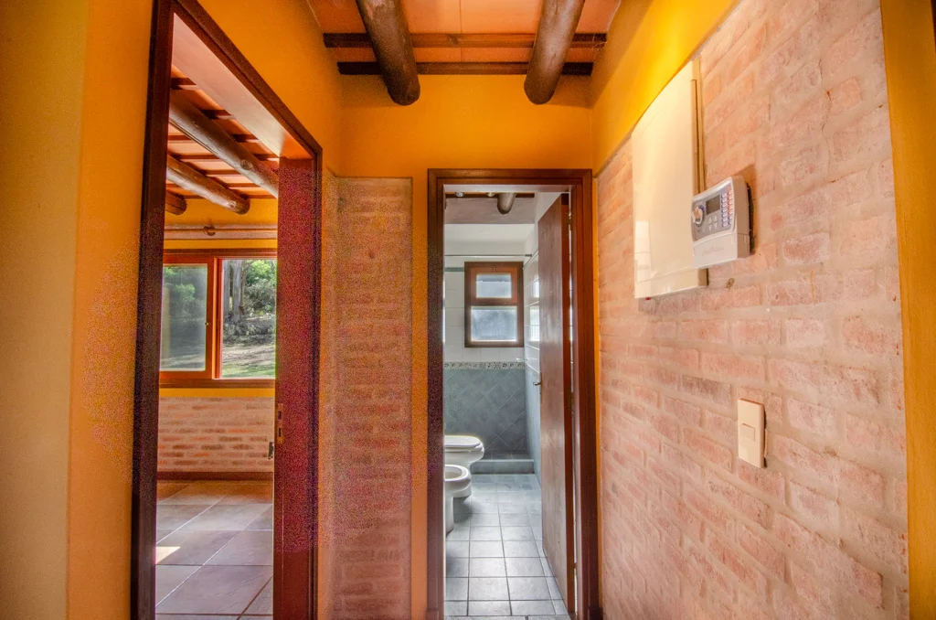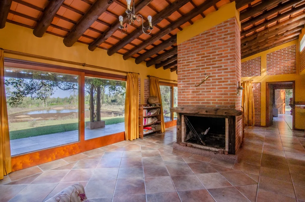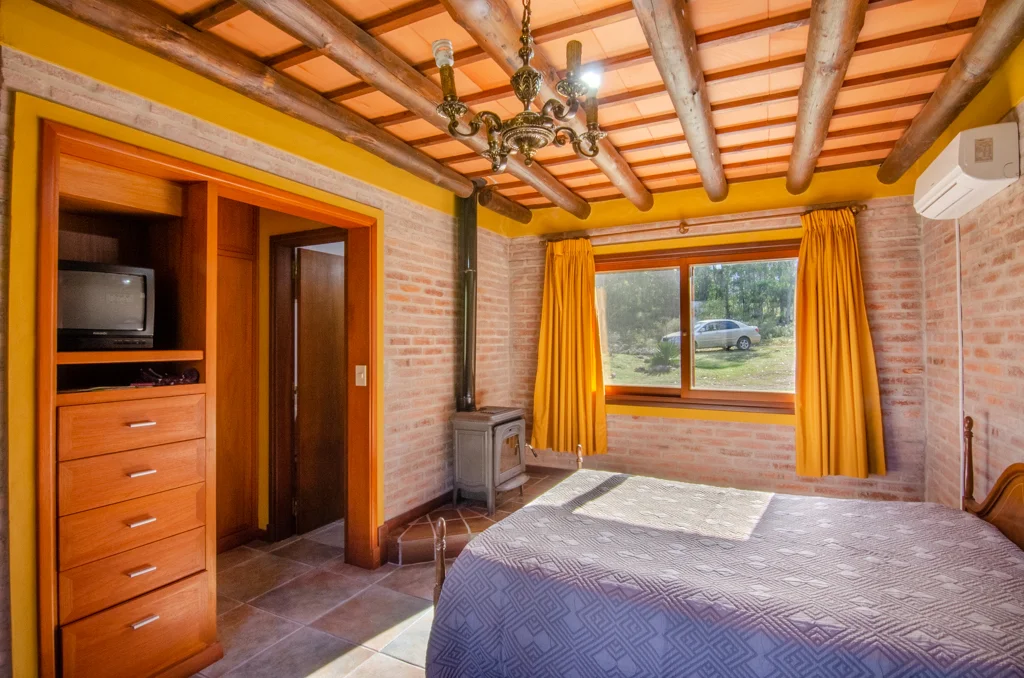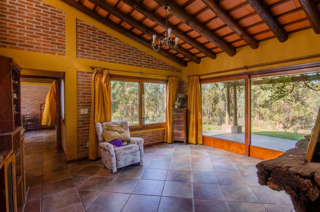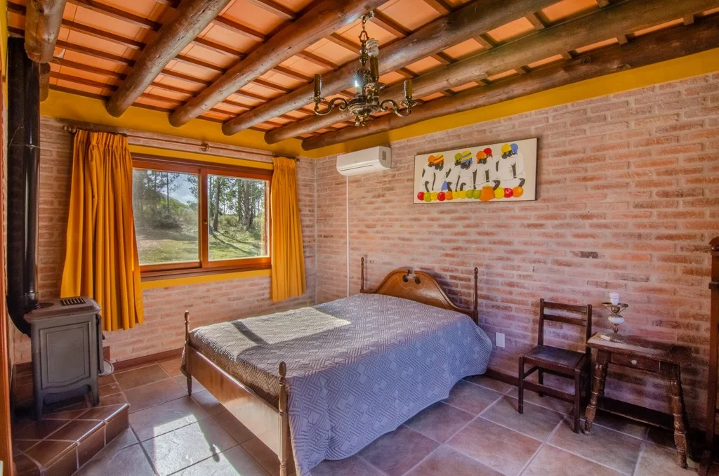 La propiedad de construcción tradicional con ladrillo a la vista con aberturas en madera se desarrolla en un terreno total de 5 HECTÁREAS y 526 m² dónde en su interior encontramos living comedor con estufa a leña y cocina definida con muebles en madera empotrados, dos dormitorios y dos baños completos uno de ellos en suite con bañera de hidromasaje. Desde el living podemos acceder a barbacoa con parrillero brindando también la posibilidad de utilizarla como garage. En el exterior se aprecia un tajamar rodeado de un entorno arbolado dónde se mezcla lo autóctono con lo exótico resguardado por el cerro Pan de Azúcar, que hacen de éste un lugar maravilloso para disfrutar de su tranquilidad y su naturaleza.