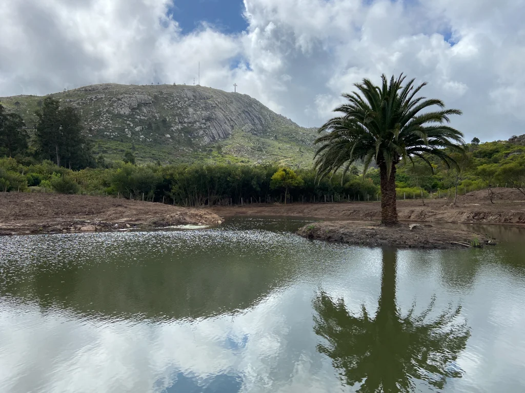 Por Ruta 73 se da ingreso al camino “Paraje Cerro Pan de Azúcar por el cuál accedemos y ubicamos ésta espectacular chacra que presenta un tajamar que nace desde la aguadas del Cerro y la vista privilegiada que nos regala su mirador.