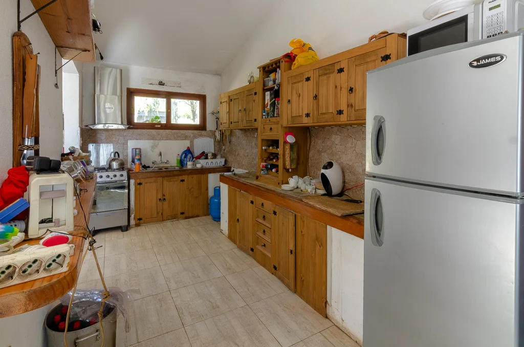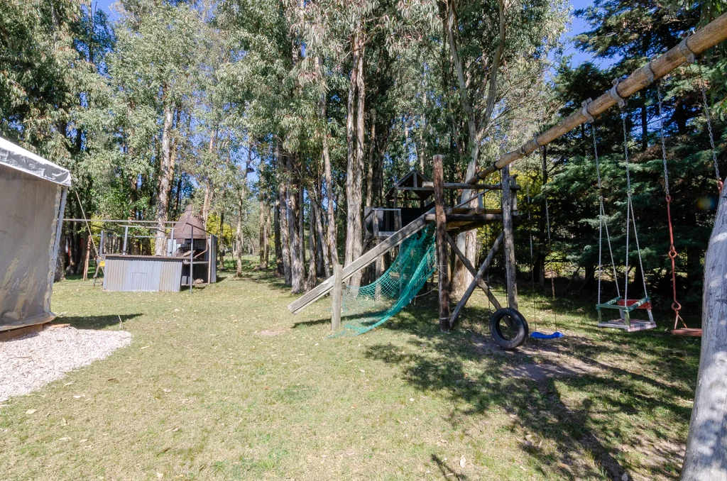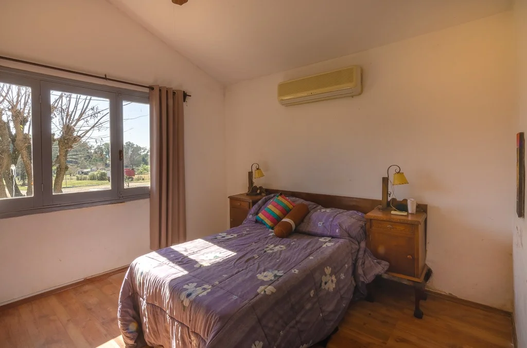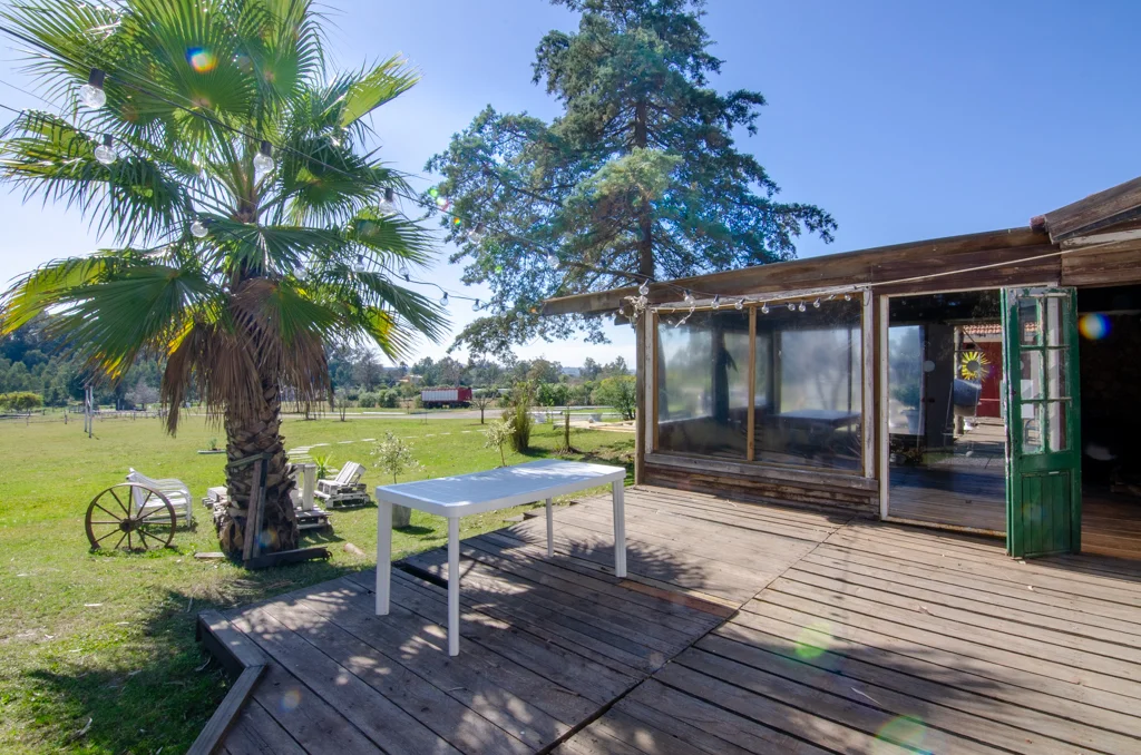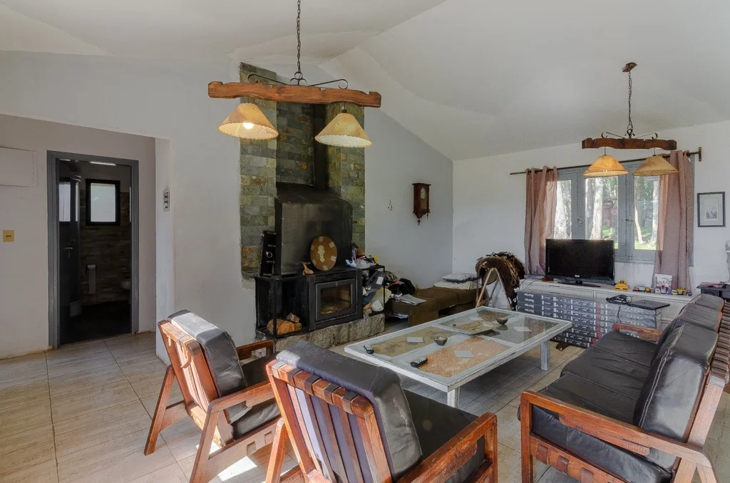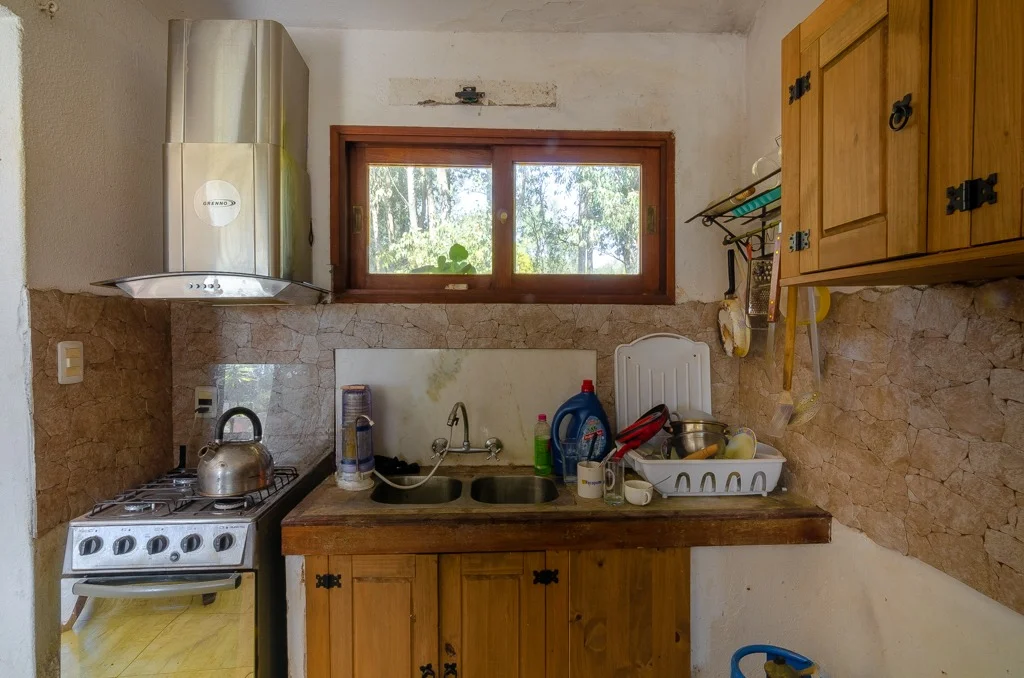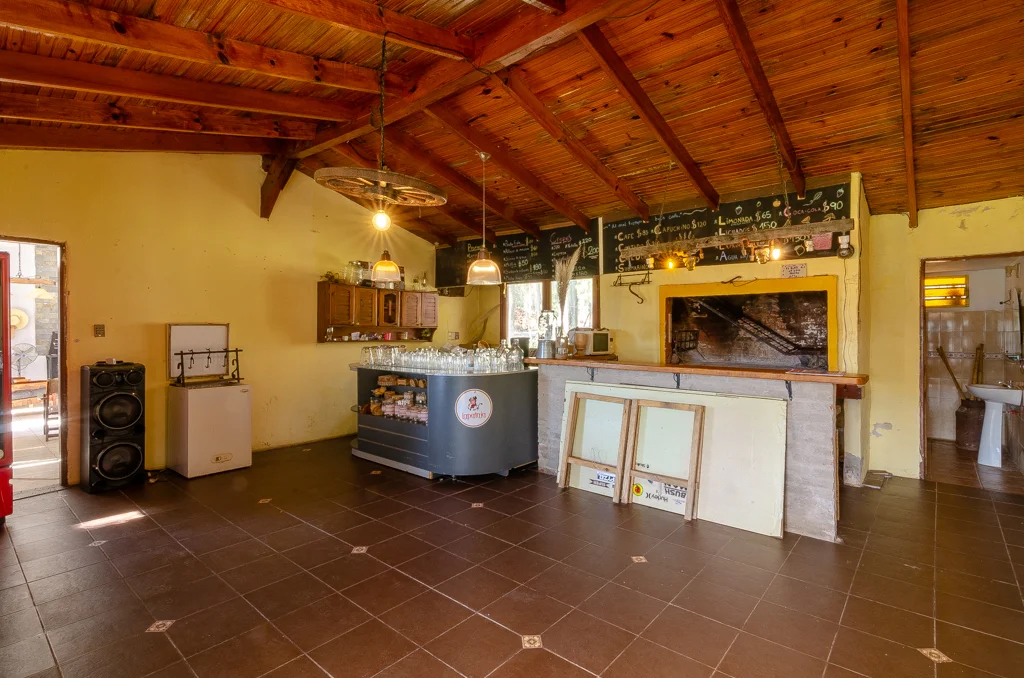 CHACRA SIERRAS DEL TIROL MALDONADO CHACRA CON SALON DE FIESTA CH101278 A pasos de ruta 37 en Sierras del Tirol ubicamos la siguiente chacra con más de 1Has y 8300mts² totalmente cercados, la misma cuanta con vivienda principal que se desarrolla en construcción tradicional con doble pared de ladrillo, techo de planchada con teja, aberturas de madera y aluminio. En su interior encontramos living comedor con estufa a leña de alto rendimiento, cocina defina con muebles en bajo mesada en madera, dos dormitorios y dos baños completos, uno de ellos con cabina, además cuenta con salón y carpa para eventos, parrillero techado con barra. Dentro de la propiedad ubicamos galpón para depósito y pintoresco tajamar.