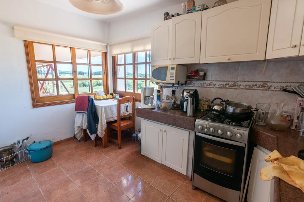CHACRA SAN CARLOS MALDONADO DOÑA LITA CH500898 A menos de 10 minutos del centro de San Carlos y 30 minutos de Punta del Este, se ubica esta pintoresca chacra con una superficie de 5 hectáreas y más de 400 metros edificados. Cuenta con casa principal de construcción tradicional, aberturas en madera, cubierta de teja con cielorraso en madera. Desarrollada en una sola planta, cuenta en su interior con amplio living-comedor con estufa a leña, cocina definida, pasillo de distribución conduce al primero dormitorio, baño completo y dormitorio principal con baño en suite con jacuzzi. En el exterior, cómoda galería con parrillero techado, además de un ambiente perfecto para sala de juegos con baño.