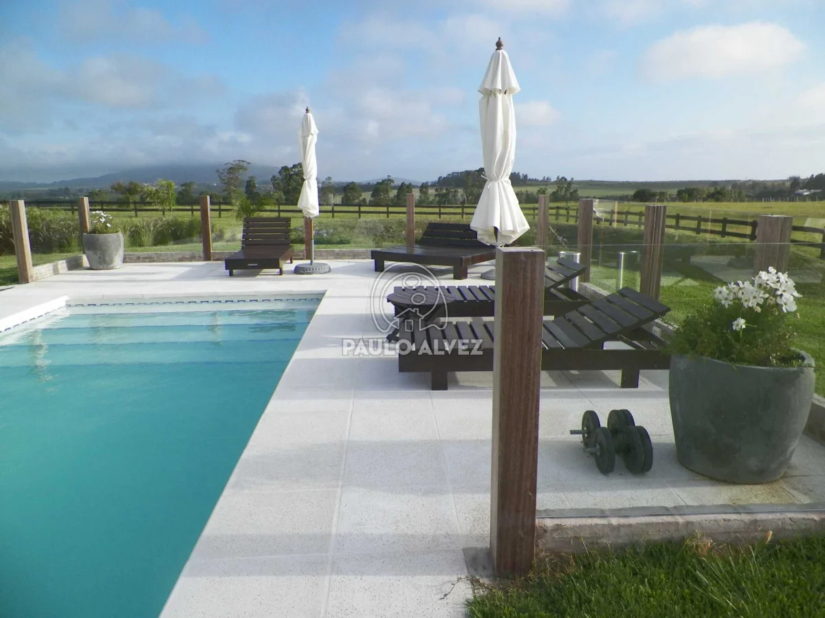 Chacra marítima elevada con vista panorámica de los cerros, consta de 6,189 hectáreas, con más de 250 m² construidos. Orientación dormitorios al noreste y living piscina al suroeste. Propiedad principal de amplios ambientes buena luminosidad con living comedor con hogar cocina integrada definida por pasaplato. 2 dormitorios en suite planta baja, principal en planta alta con vestidor y vista 360º. Cuenta con 2 parrilleros uno en Barbacoa, otro exterior. Piscina de concreto forrado de policloruro de vinilo. Casa casero de 1 dormitorio y baño. Galpón de acero galvanizado, caballerizas. Vea imágenes y contáctenos por más información.