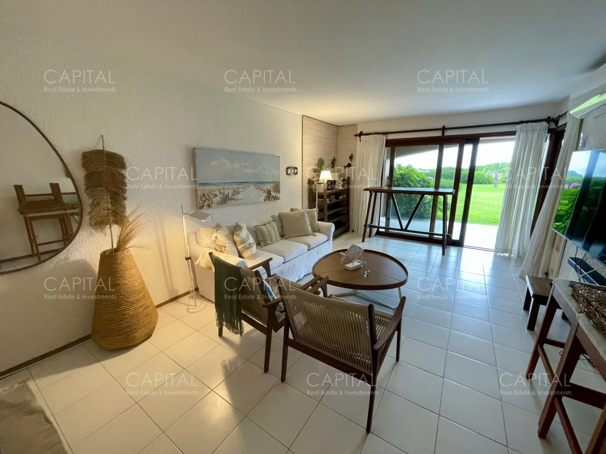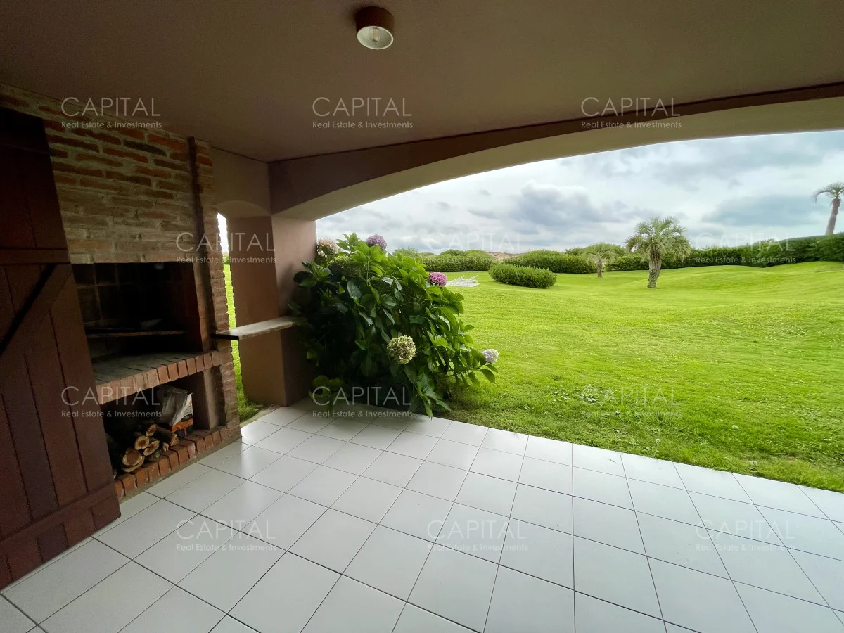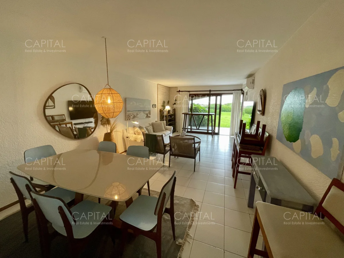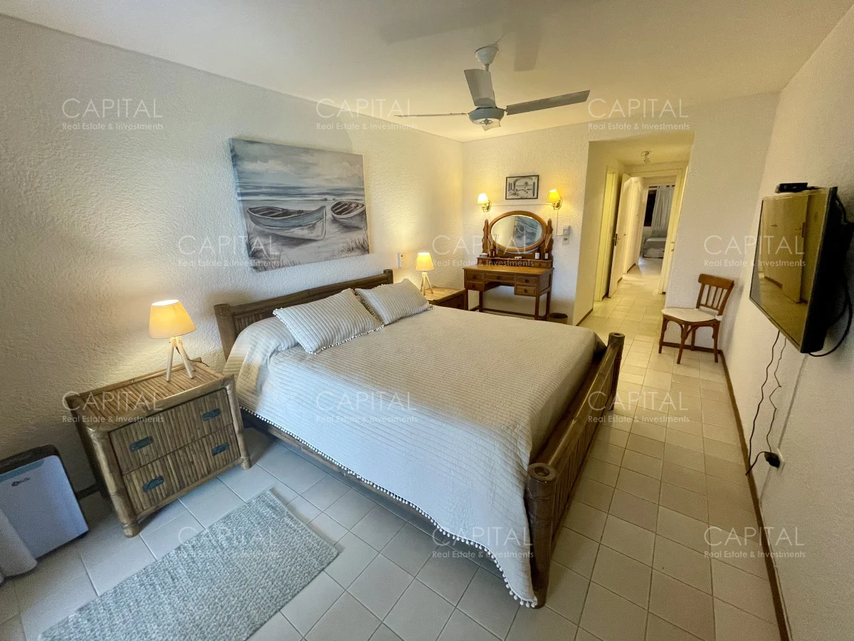 En edificio bajo, clásico y sólido con ubicación privilegiada frente al mar en la exclusiva zona de Manantiales. Departamento planta baja estilo casa de cómodas dimensiones, cuenta con living comedor con salida directa al jardín, terraza con parrillero techado, cocina definida con terraza lavadero, 2 dormitorios, 2 baños y dependencia de servicio con baño ( modificada para transformarse en 3er dormitorio). Cochera techada fija, edificio con servicio de mucamas y playa, seguridad 24 hs.