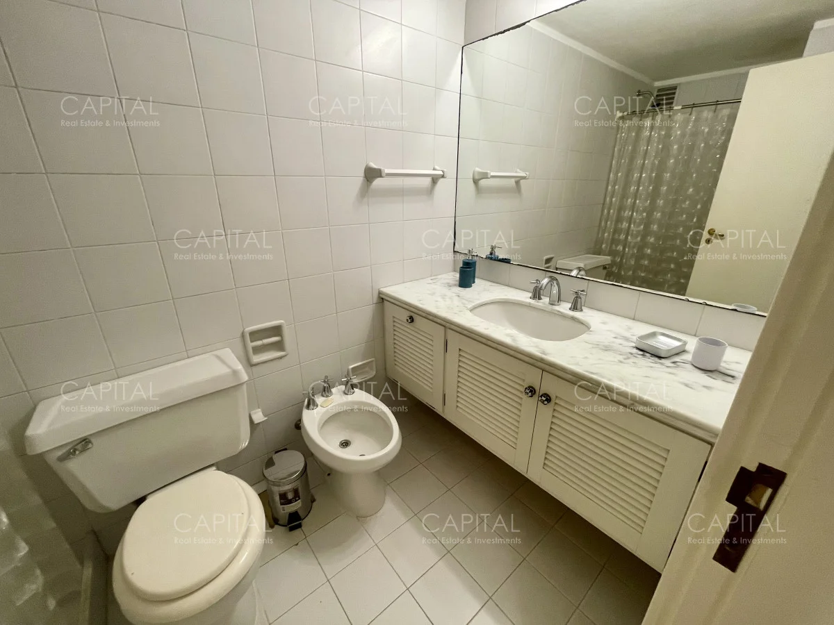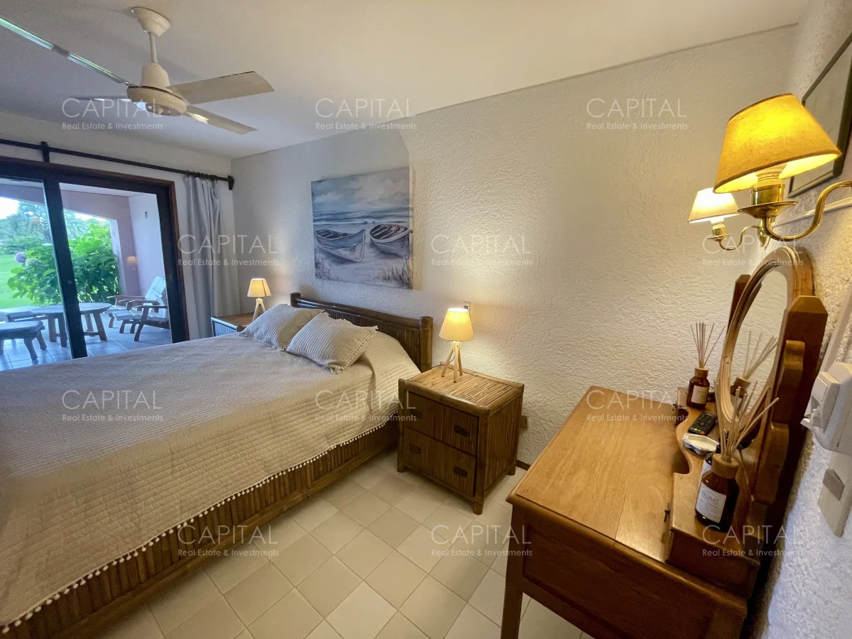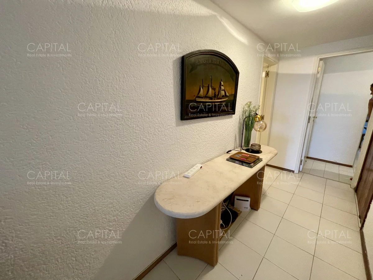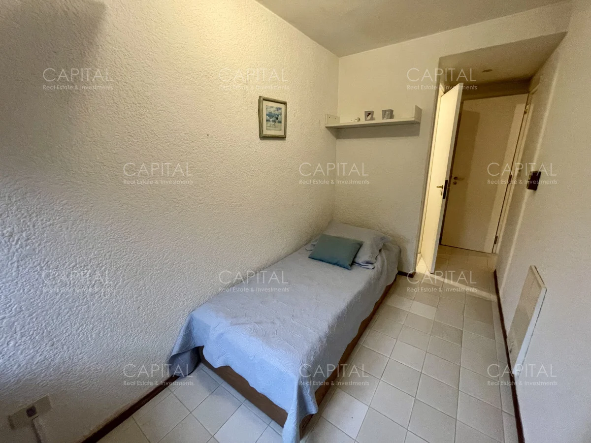 En edificio bajo, clásico y sólido con ubicación privilegiada frente al mar en la exclusiva zona de Manantiales. Departamento planta baja estilo casa de cómodas dimensiones, cuenta con living comedor con salida directa al jardín, terraza con parrillero techado, cocina definida con terraza lavadero, 2 dormitorios, 2 baños y dependencia de servicio con baño ( modificada para transformarse en 3er dormitorio). Cochera techada fija, edificio con servicio de mucamas y playa, seguridad 24 hs.