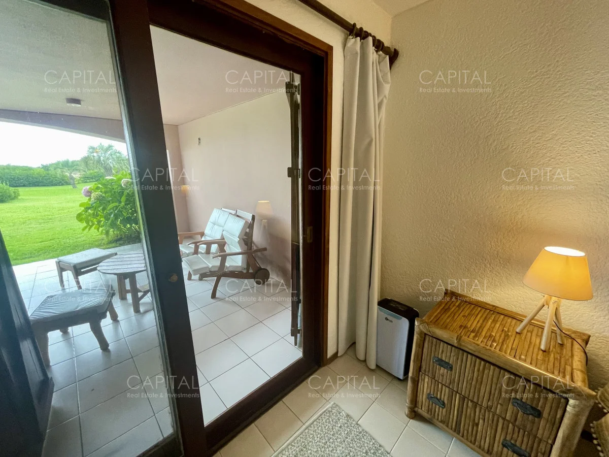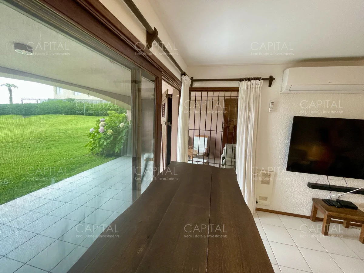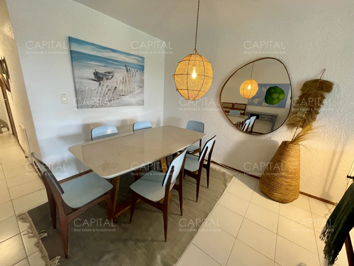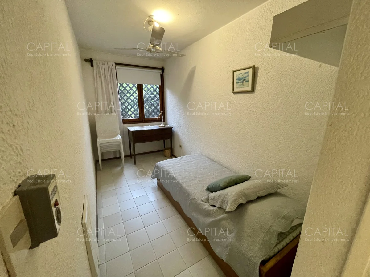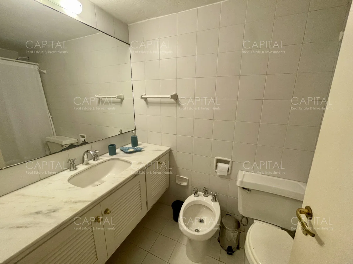En edificio bajo, clásico y sólido con ubicación privilegiada frente al mar en la exclusiva zona de Manantiales. Departamento planta baja estilo casa de cómodas dimensiones, cuenta con living comedor con salida directa al jardín, terraza con parrillero techado, cocina definida con terraza lavadero, 2 dormitorios, 2 baños y dependencia de servicio con baño ( modificada para transformarse en 3er dormitorio). Cochera techada fija, edificio con servicio de mucamas y playa, seguridad 24 hs.