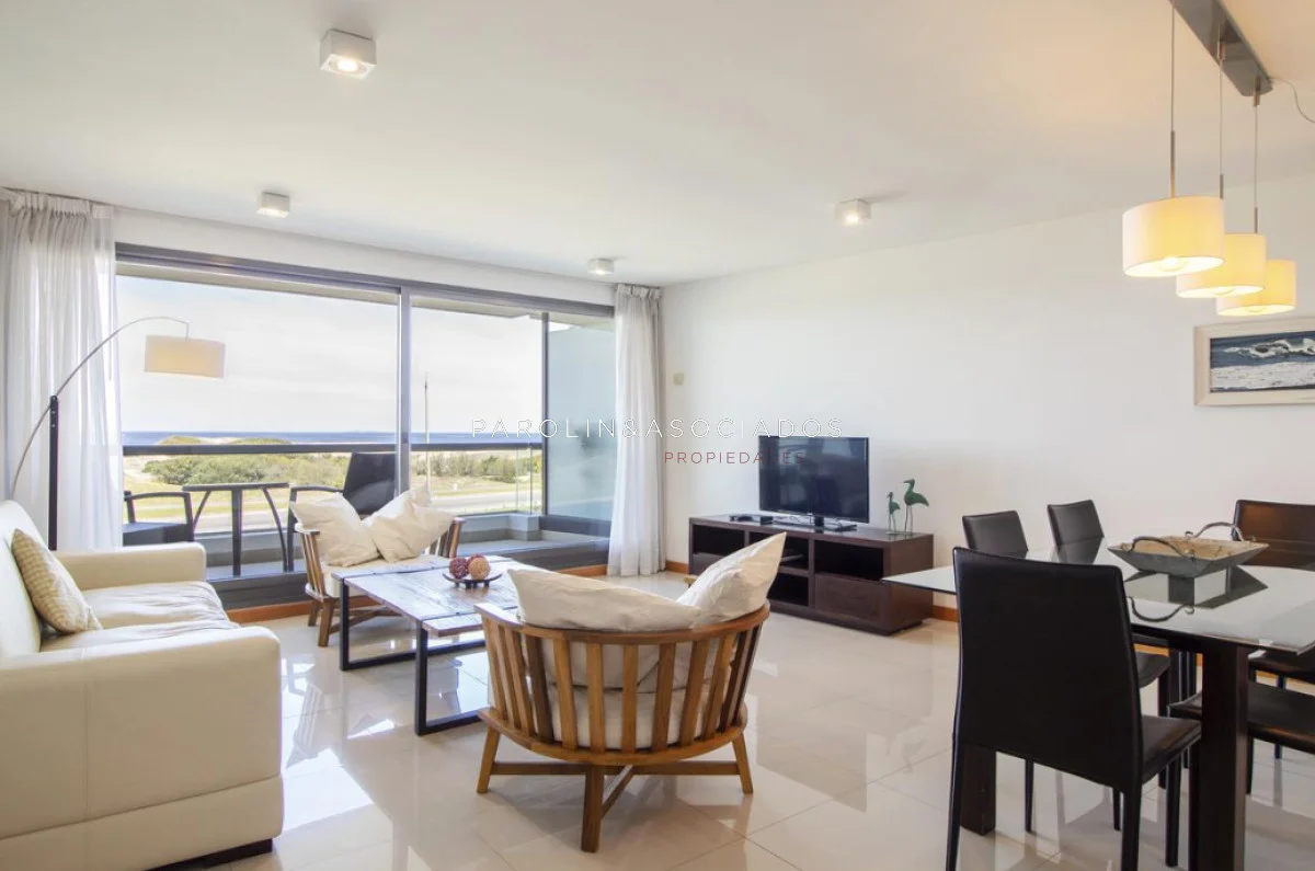 Muy buena unidad en edificio Blue Bird, ubicado en uno de los mejores puntos a minutos de Punta del este y a pasos de La Barra. Este apartamento, muy luminoso y con decoración de buen gusto, cuenta con 3 dormitorios de amplios espacios. Cocina muy bien equipada y cómoda por su amplitud. El living y comedor comparten el estar principal, teniendo ambos una espectacular vista al mar que se encuentra a metros. A todas las características mencionadas, se le suman los amenities del edificio como ser piscina exterior e interior parrillero, playroom gimnasio y servicio de mucama.