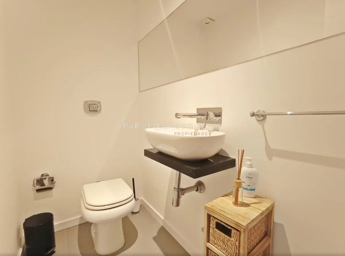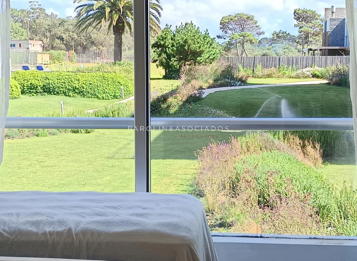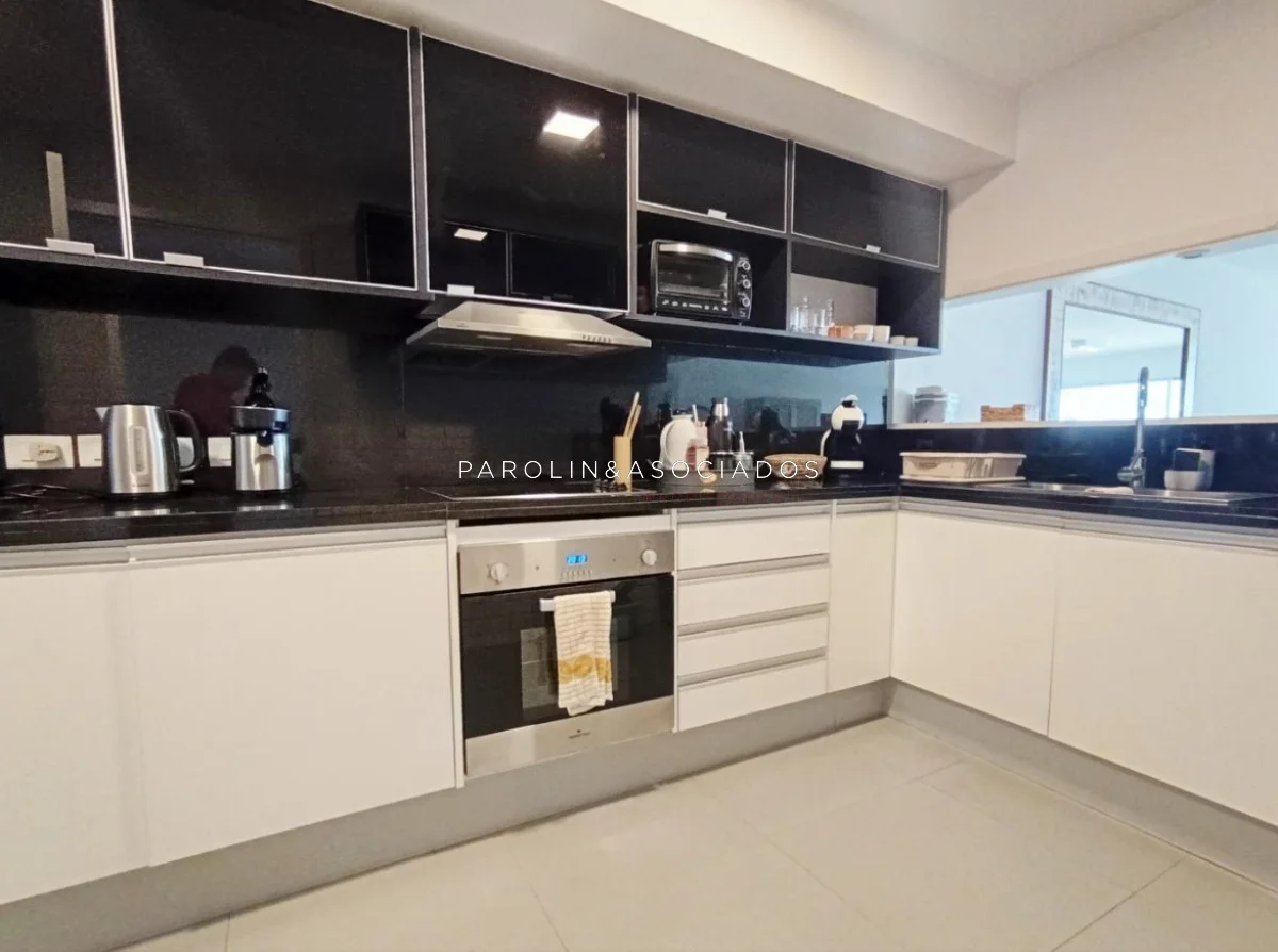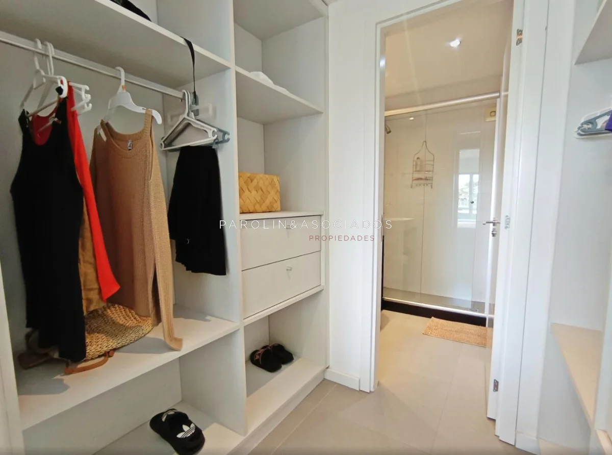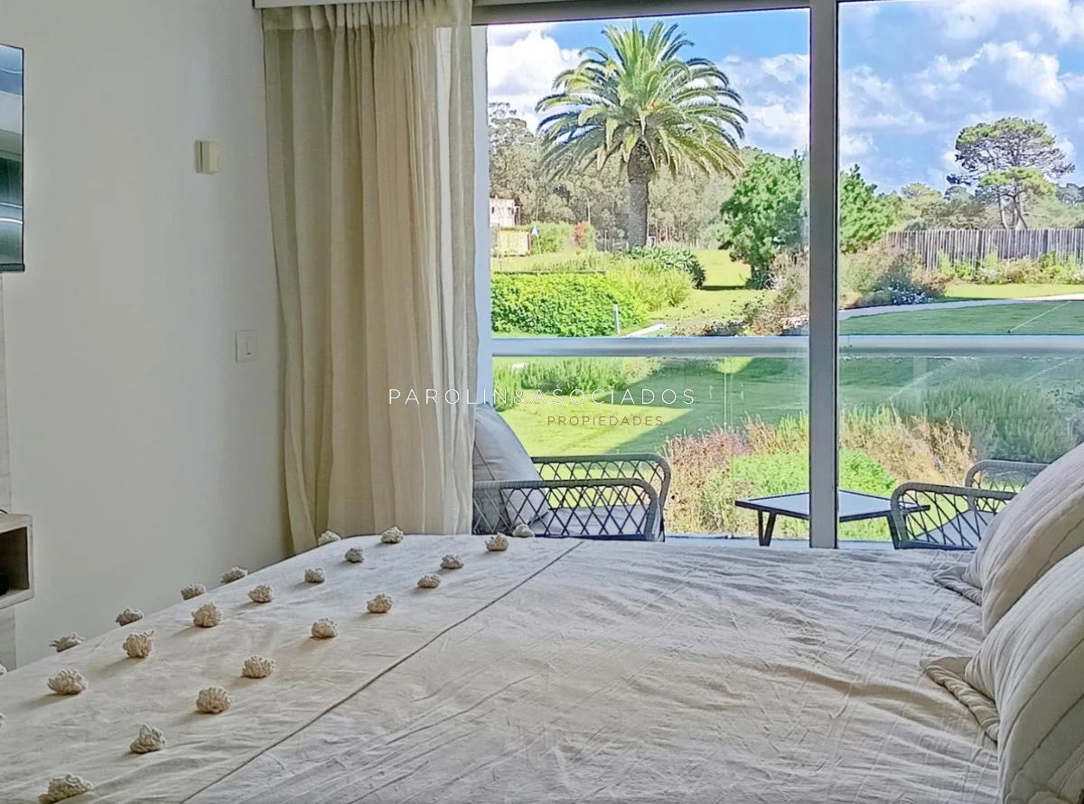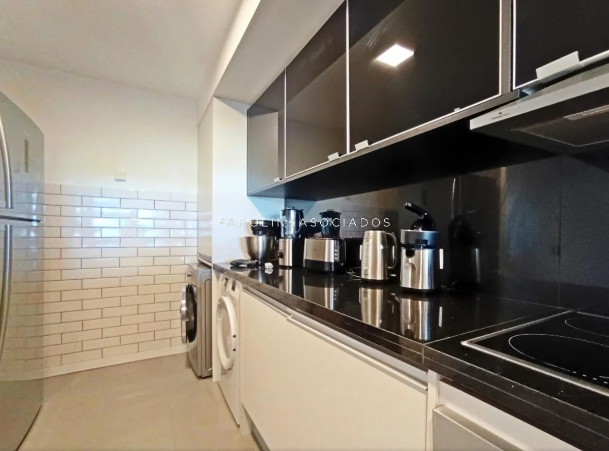 Amplio living-comedor con salida a la terraza, vista al mar, cocina con pasa platos, toilette, 2 cómodas suites con vestidor, dormitorio ppal con teraza vista al parque. Losa radiante sectorizada, aire acondicionado. Garaje doble. Complejo frente al mar con completos amenities de categoría.