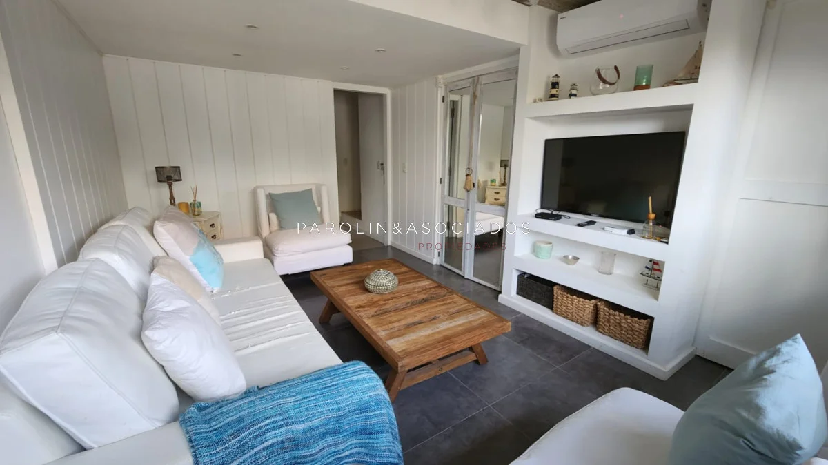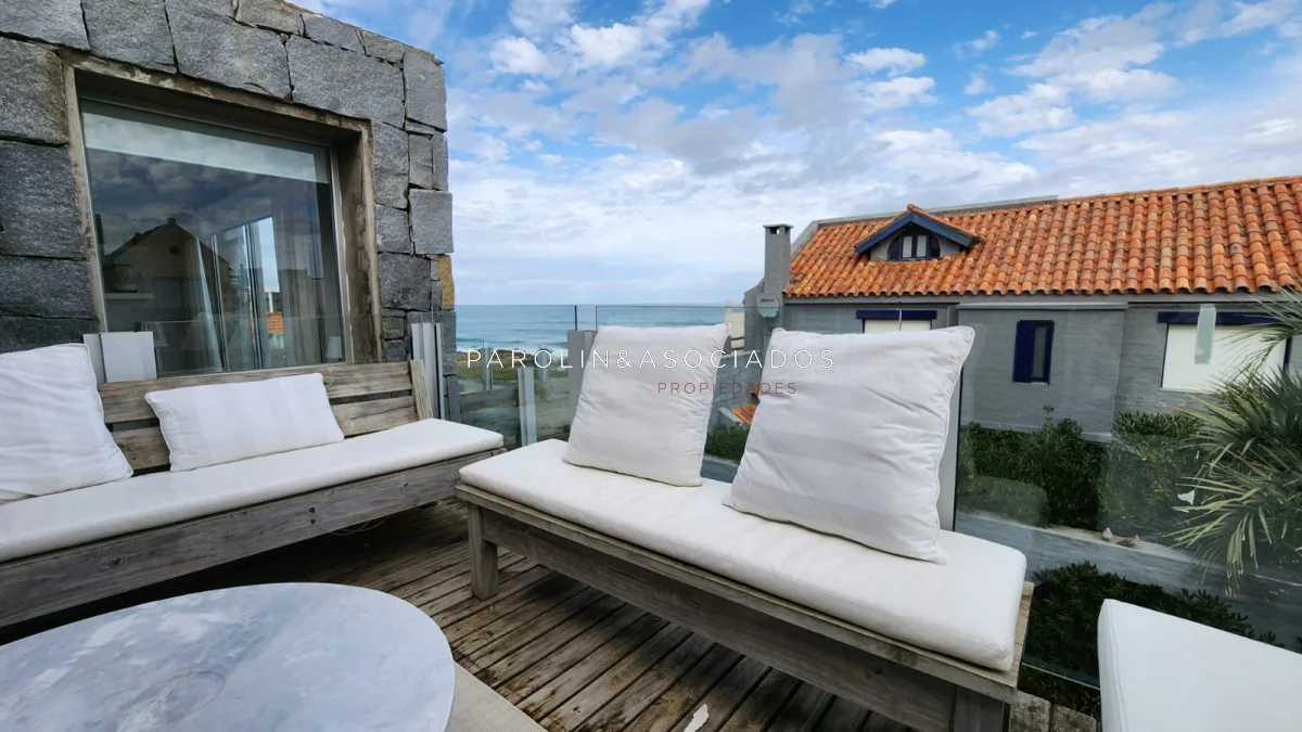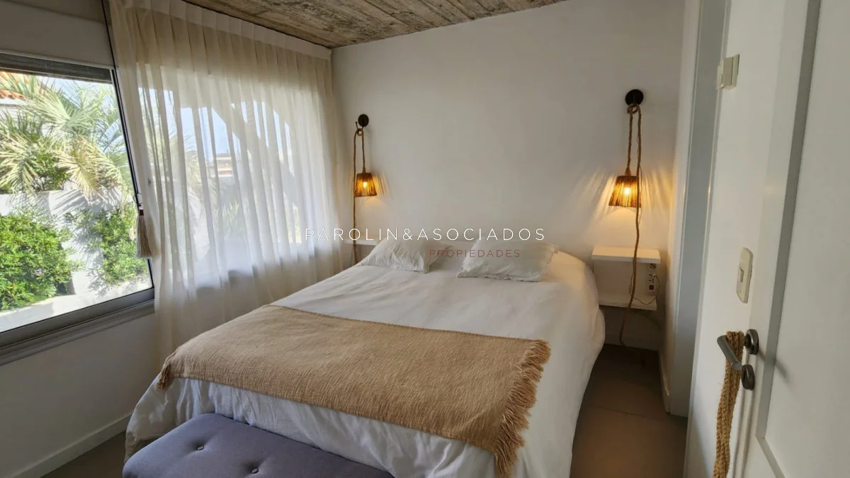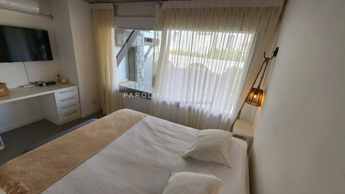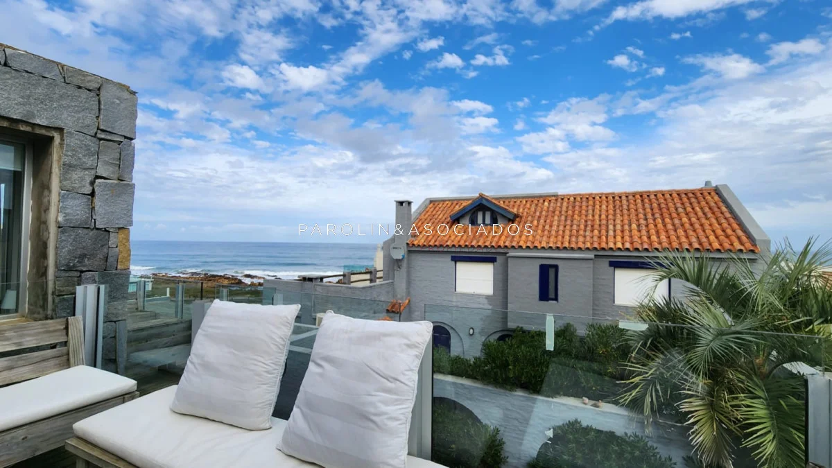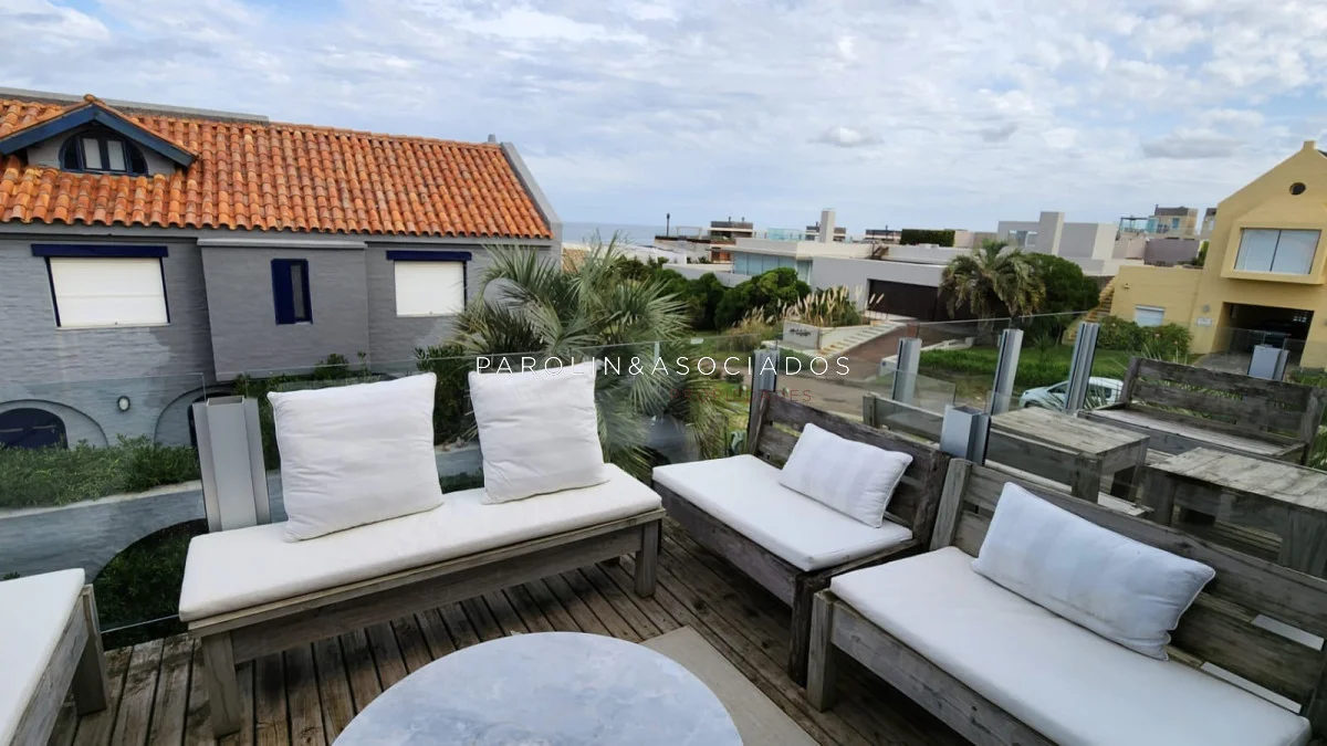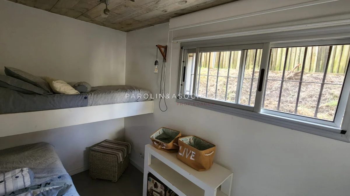 Segundo nivel: dormitorio de chicos con un baño en el pasillo y dormitorio principal en suite con vistas al mar.