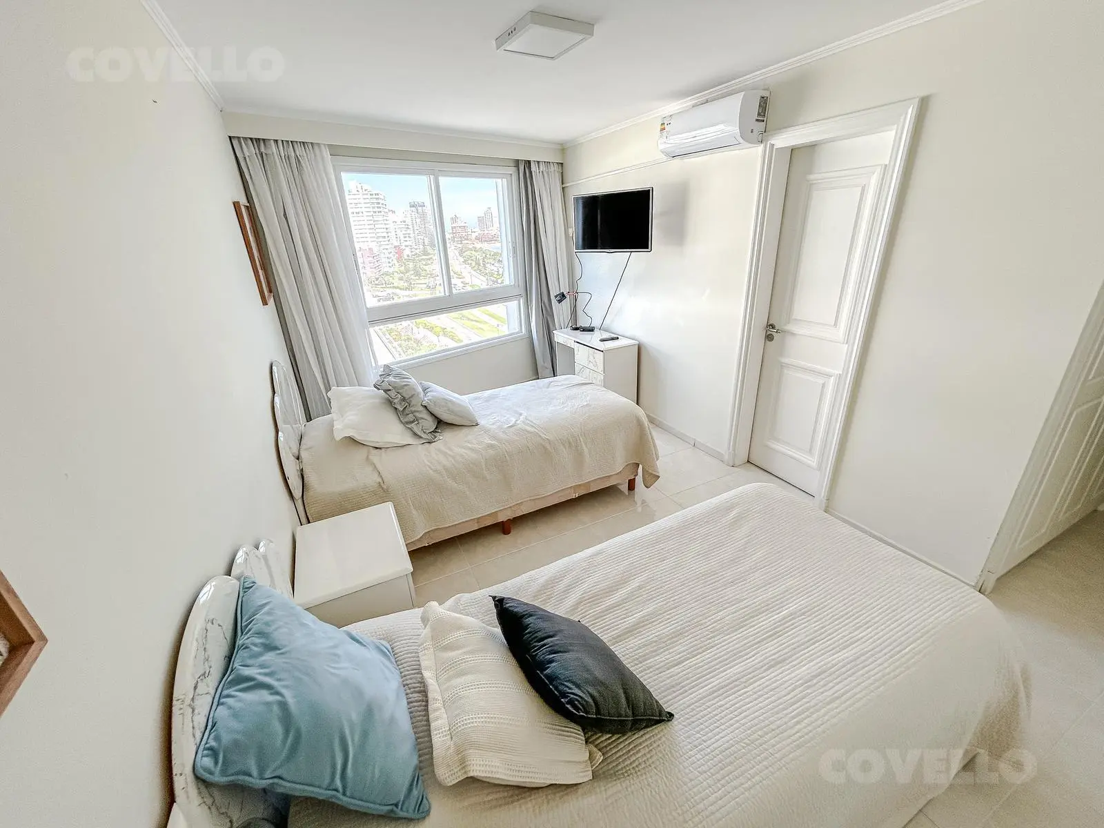El edificio cuenta con: recepción, piscina abierta y cerrada, servicio de playa y mucama, gimnasio, Playroom.