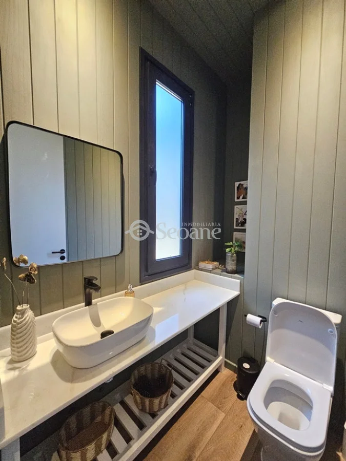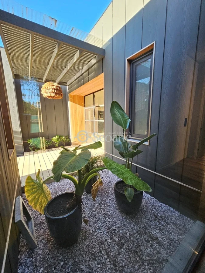 Moderna y elegante casa, gran living comedor con salida a deck con parrillero techado. Cocina estilo americana, area de servicio (que puede ser como un cuarto dormitorio o escritorio), lavadero. Tres cómodos dormitorios en suite.