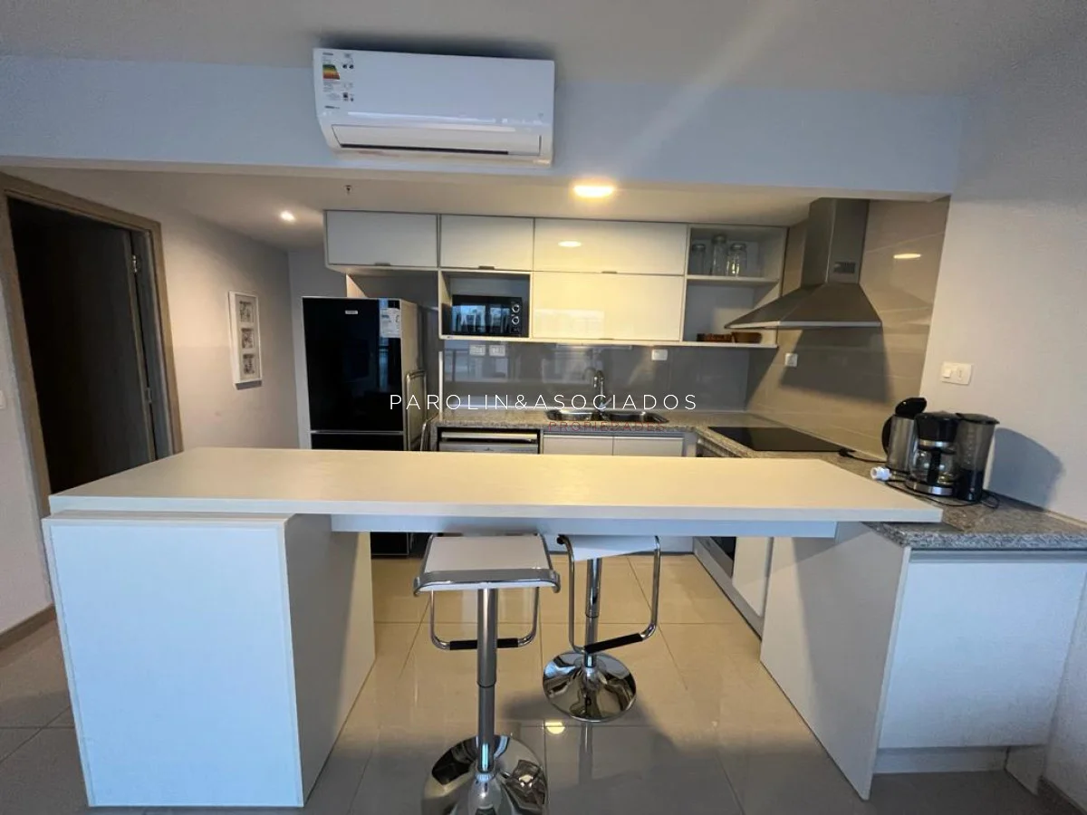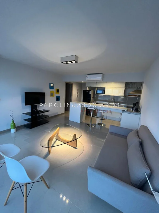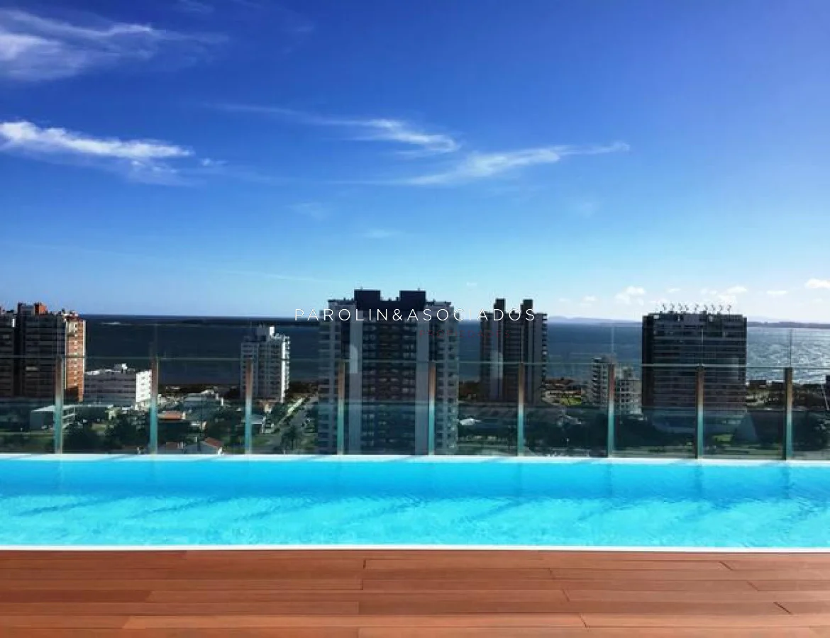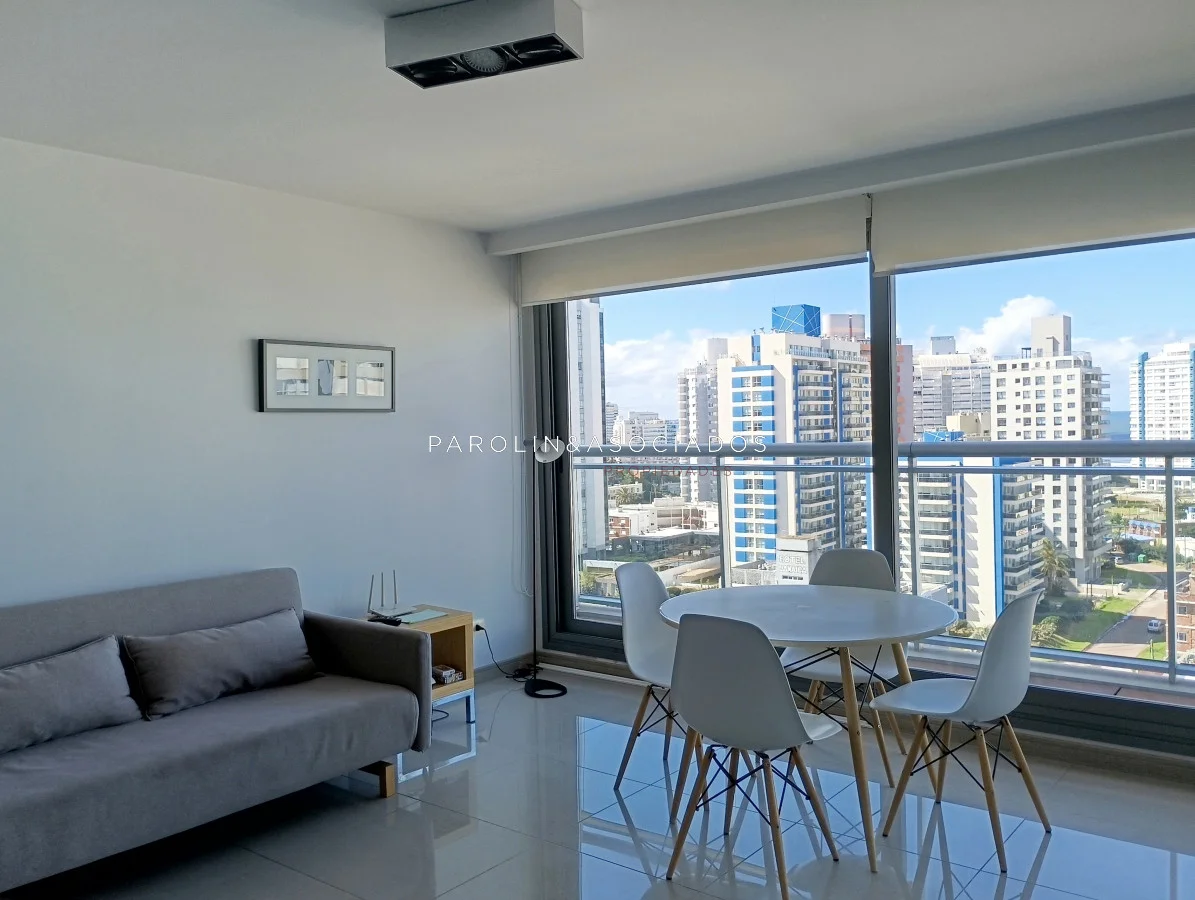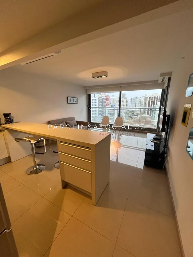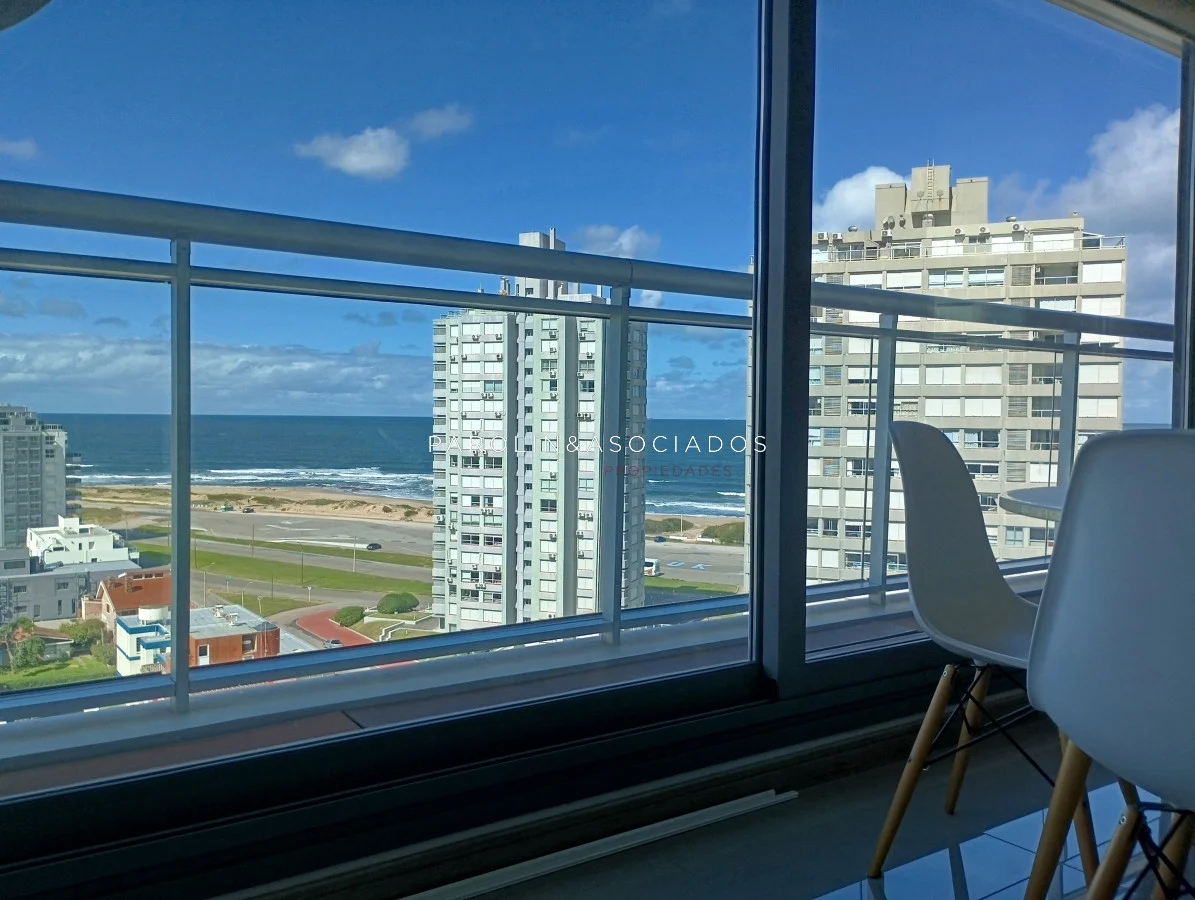 Piso alto en Torre de Alta Gama, apartamento de un dormitorio y medio. Vista a Playa Mansa. Cómodo apartamento para disfrutar sus vacaciones o para vivienda permanente. Consulte con nuestros asesores, Parolin and Asociados. Referencia Interna : Tera-9693