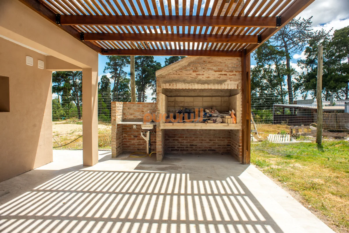 Casa en propiedad horizontal a estrenar, a pocas cuadras del mar y la laguna, cuenta con 2 dormitorios, 2 baños (principal en suite), living-comedor con cocina integrada, jardín con acceso al parrillero pergolado con conexión para lavarropas y gas.