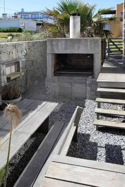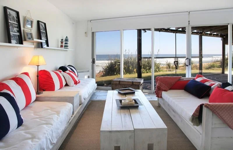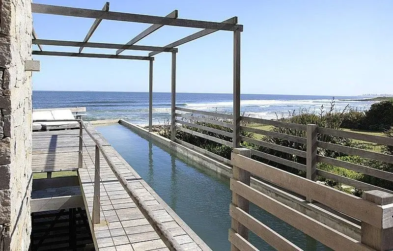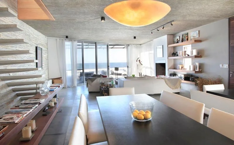Alquiler temporario de Casa 6 DORMITORIOS en LA BARRA. Espectacular casa sobre las rocas de La Posta del Cangrejo, orientada hacia Punta del Este con bajada directa a la playa. Se distribuye en 3 niveles: A nivel de jardín encontramos: suite grande tipo playroom, con salida a la terraza, lavaderos, garajes y área de servicio. En Planta Media: living-comedor con salida a terraza al mar, cocina muy bien equipada y toillete. En Planta Alta: 4 dormitorios y 3 baños (2 de ellos en suite). La suite principal da al frente Amplio deck con una singular piscina y parrillero protegido del viento, con extraordinaria vista . Calefacción central.