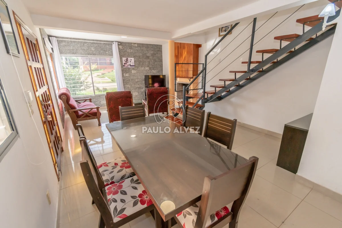 Ubicada a escasos 70 metros de la Playa San Francisco. Diseño minimalista, sólida construcción con doble pared, ladrillo en pared exterior y ticholo en paredes interiores generando una excelente aislación térmica, pisos en porcelanato, aberturas en madera y aluminio, cañería en termofusión, techos de ISO Panel (Bromiros). Cuenta con amplio living comedor al frente (estufa a leña), cocina con placares aéreos y bajo mesada con extractor, comedor diario integrado a cocina, baño social completo con mampara. Planta alta acceso por cómoda escalera en dos tramos con descanso, primer dormitorio al frente con balcón, segundo y tercer dormitorio al contra frente con vista directa al mar y puesta de sol, todos los ambientes cuentan con aire acondicionado, segundo baño social completo. En lateral acceso para varios vehículos, parrillero cubierto con pérgola de madera, piscina, fondo y cerco perimetral. Vea las fotos y consulte por más información.