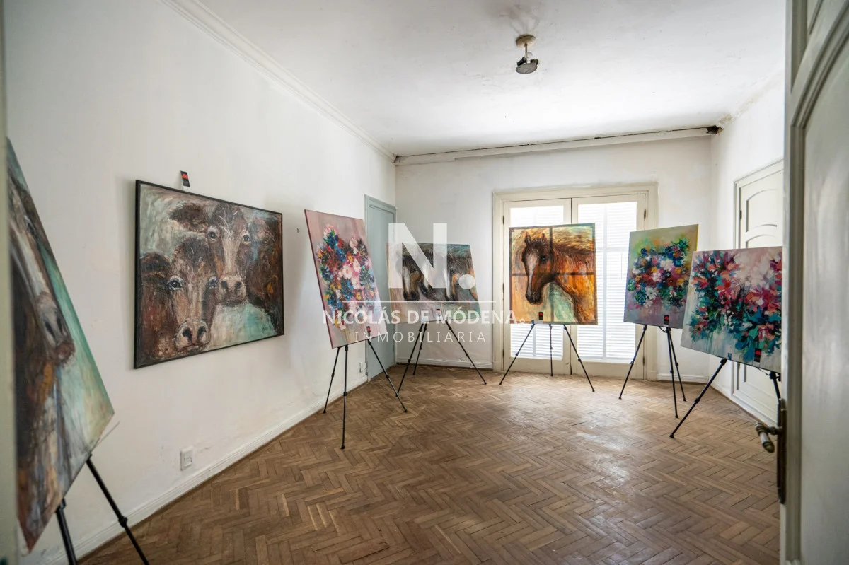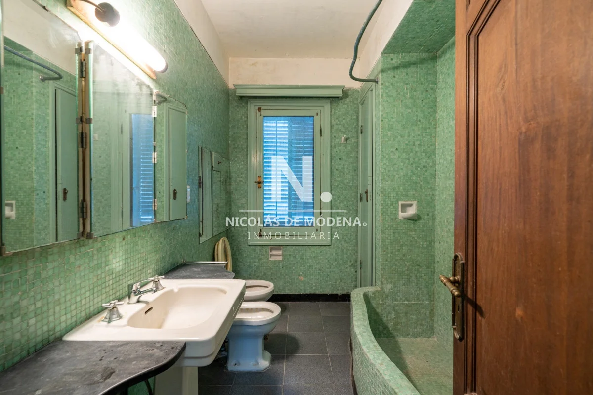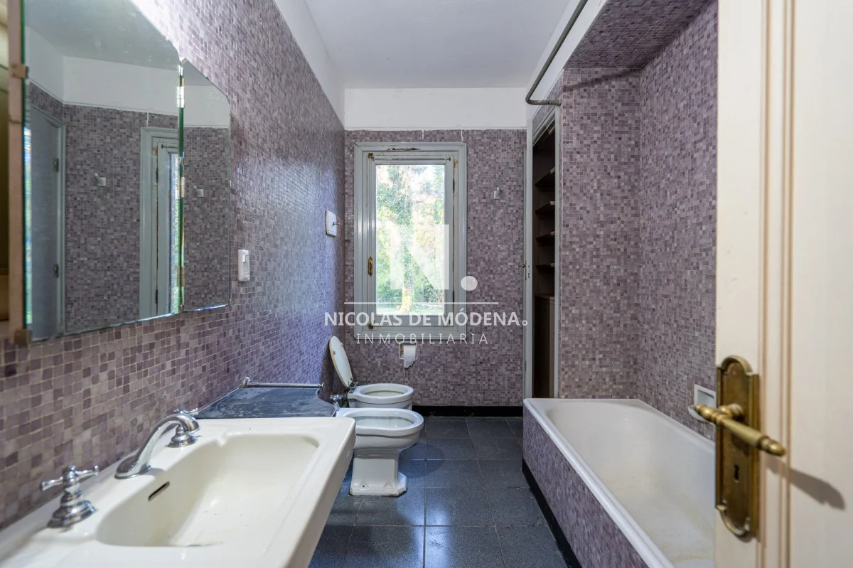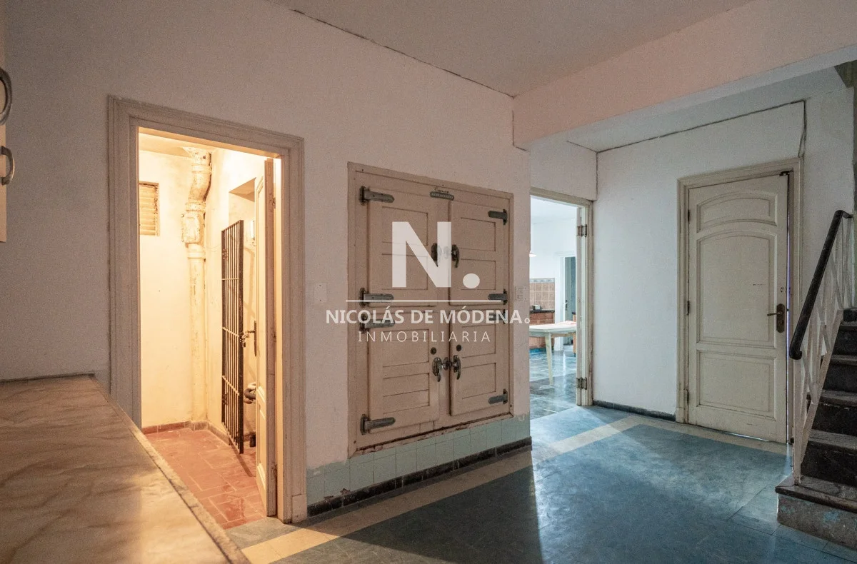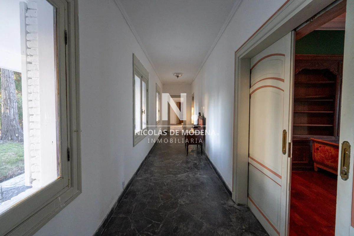 En la planta baja, la distribución incluye 5 dormitorios, 3 baños, 2 dependencias de servicio y un departamento de caseros, junto con una cocina pequeña, un toilette, un despojador y un comedor diario. El área de living destaca con una estufa a leña, equipado con una estufa noruega de cerámica, aportan un sentido de sofisticación y calidez. La cocina principal, espaciosa y funcional, se divide en tres áreas, incluyendo una alacena para almacenamiento adicional.