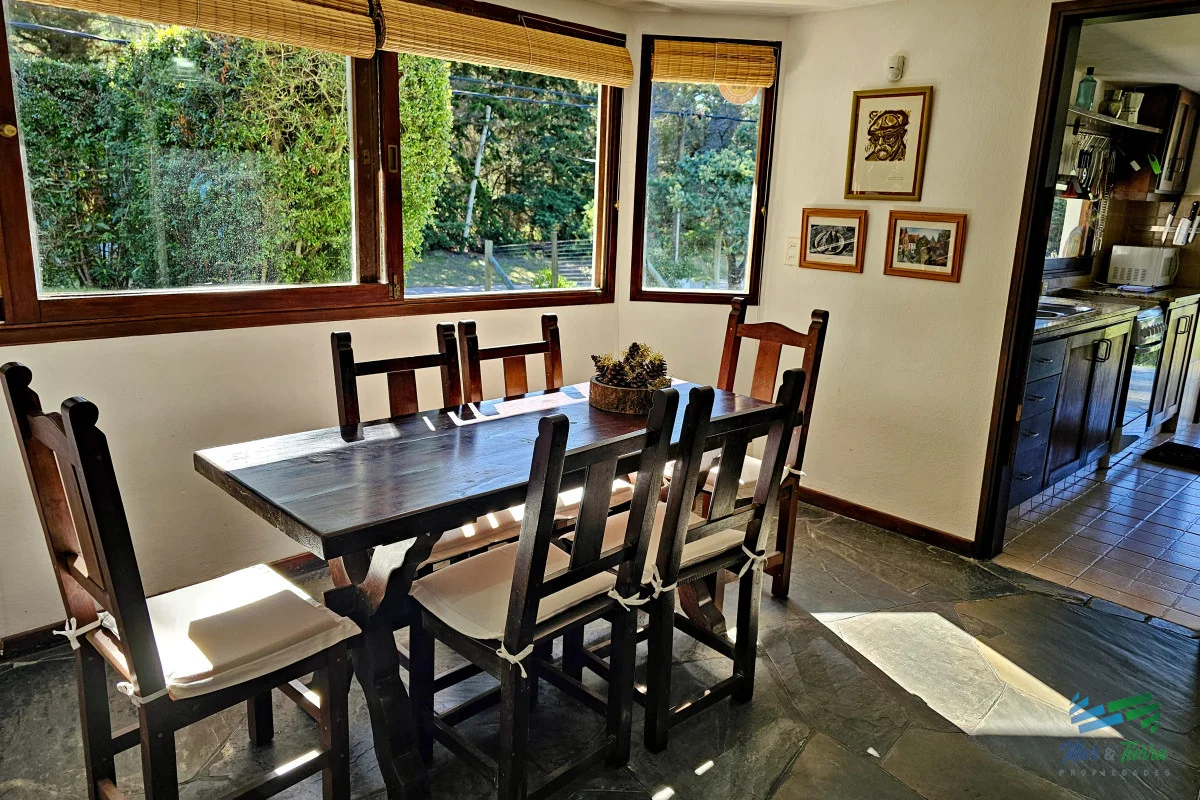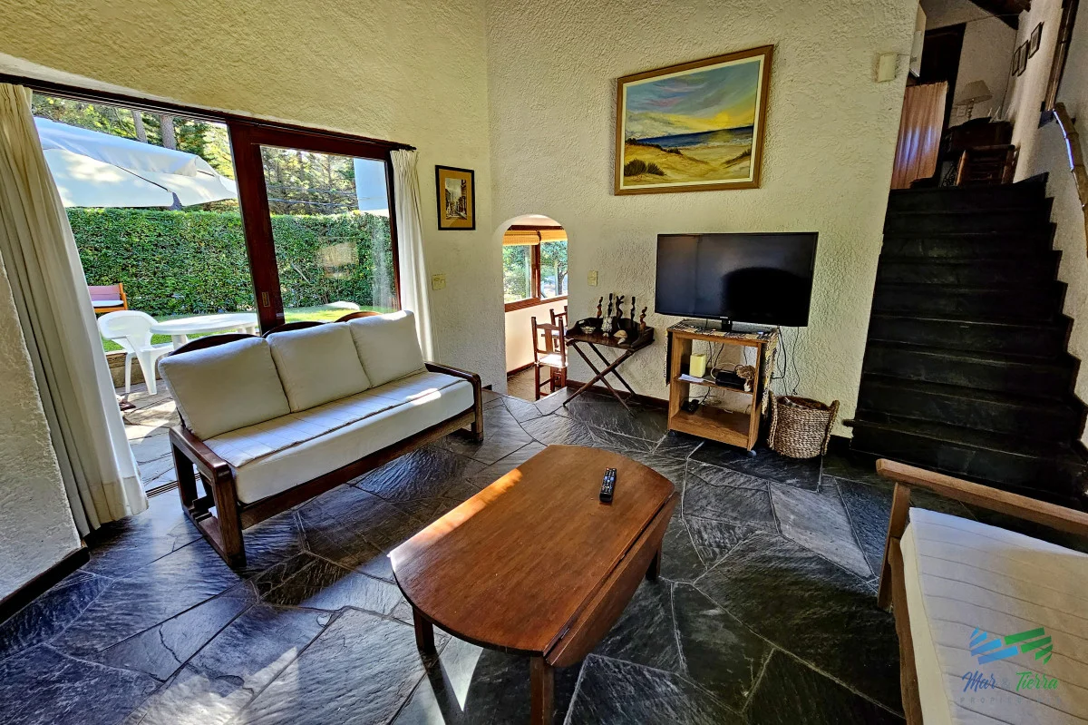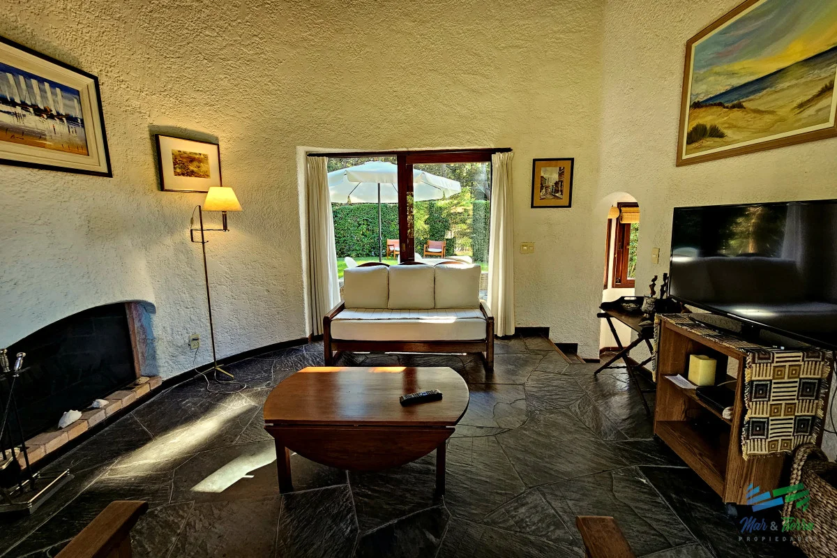 Venta de casa en Rincón del Indio Punta del Este 114 m2 edificados en un terreno alto de 617 m2 Comodidades: 3 dormitorios, 3 baños. Distribución: En planta baja; living con estufa hogar. Comedor definido, cocina definida, toilette, master suite. Planta alta: 2 dormitorios (uno con balcón y otro con amplia terraza), un baño. Cochera techada, parrillero, terreno cercado en entorno súper agradable, riego computarizado con pozo. Ubicada a 500 mts de la playa y 400 mts de avenida perimetral. La casa se vende con muebles. Equipada con aire acondicionado Aberturas de madera de excelente calidad Orientación noroeste Muy buen estado (electrica y sanitaria recicaldos) Referencia Interna : Tera-4429