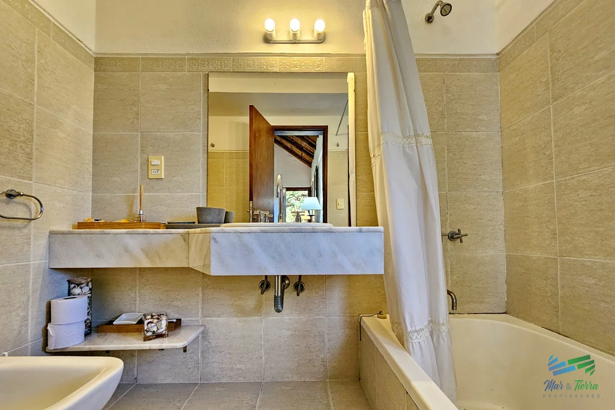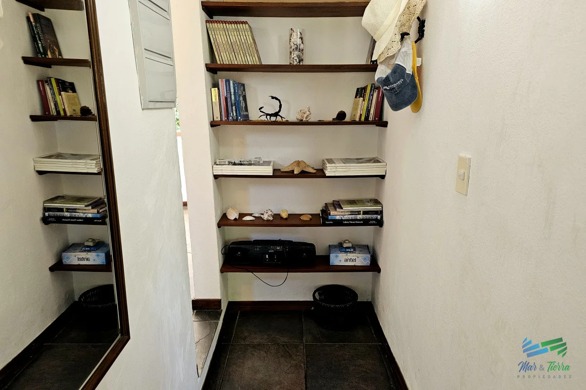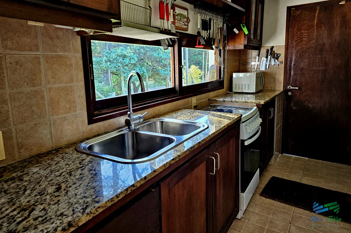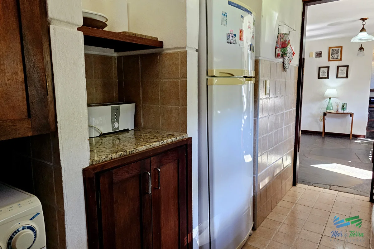 Venta de casa en Rincón del Indio Punta del Este 114 m2 edificados en un terreno alto de 617 m2 Comodidades: 3 dormitorios, 3 baños. Distribución: En planta baja; living con estufa hogar. Comedor definido, cocina definida, toilette, master suite. Planta alta: 2 dormitorios (uno con balcón y otro con amplia terraza), un baño. Cochera techada, parrillero, terreno cercado en entorno súper agradable, riego computarizado con pozo. Ubicada a 500 mts de la playa y 400 mts de avenida perimetral. La casa se vende con muebles. Equipada con aire acondicionado Aberturas de madera de excelente calidad Orientación noroeste Muy buen estado (electrica y sanitaria recicaldos) Referencia Interna : Tera-4429