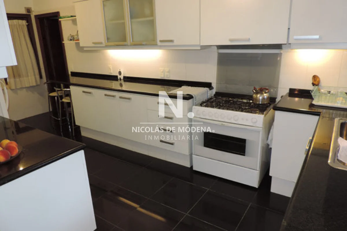 La cocina está bien equipada con anafe, microondas, heladera con freezer, horno, placard y campana extractora. Los espacios interiores incluyen un acogedor living, comedor perfectos para momentos de reunión y entretenimiento. Entre las comodidades adicionales se encuentran el aire acondicionado, placards en todos los dormitorios, así como bidet en los baños, garantizando el máximo confort y conveniencia en cada rincón de la casa.