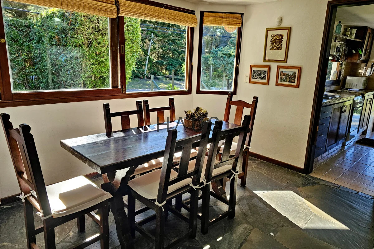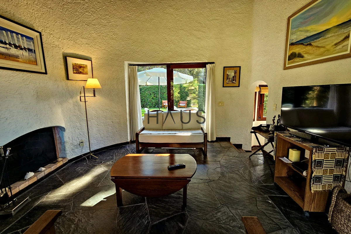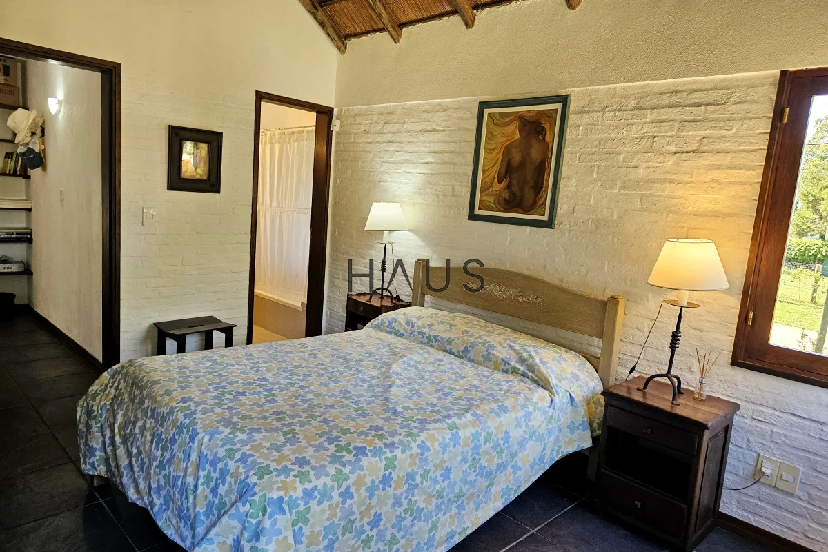 Venta de casa en Rincón del Indio Punta del Este 114 m2 edificados en un terreno alto de 617 m2 Comodidades: 3 dormitorios, 3 baños. Distribución: En planta baja; living con estufa hogar. Comedor definido, cocina definida, toilette, master suite. Planta alta: 2 dormitorios (uno con balcón y otro con amplia terraza), un baño. Cochera techada, parrillero, terreno cercado en entorno súper agradable, riego computarizado con pozo. Ubicada a 500 mts de la playa y 400 mts de avenida perimetral. La casa se vende con muebles. Equipada con aire acondicionado Aberturas de madera de excelente calidad Orientación noroeste Muy buen estado (electrica y sanitaria recicaldos) Referencia Interna : Tera-75