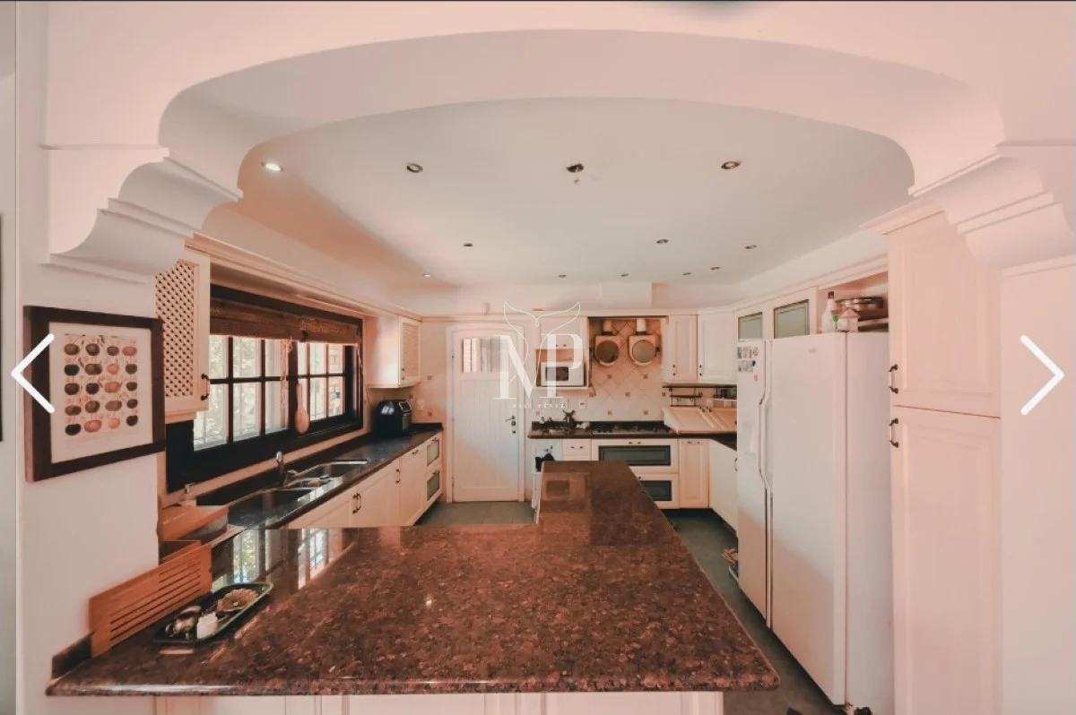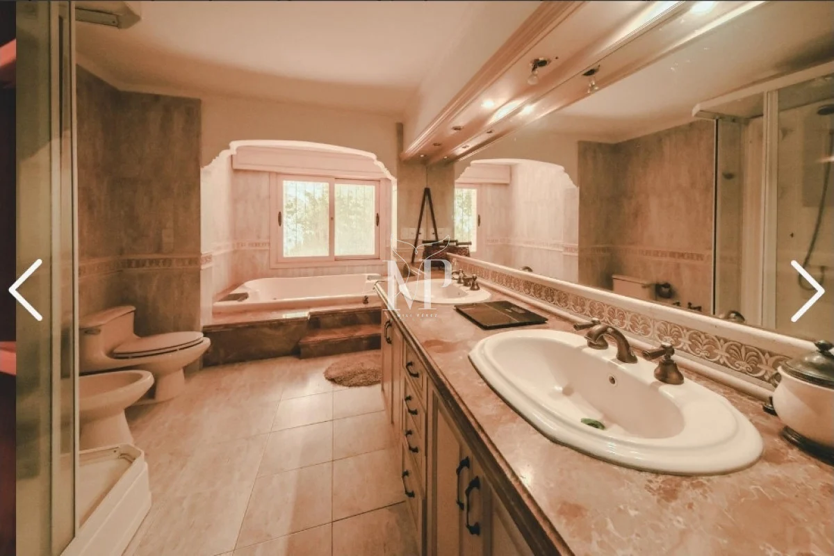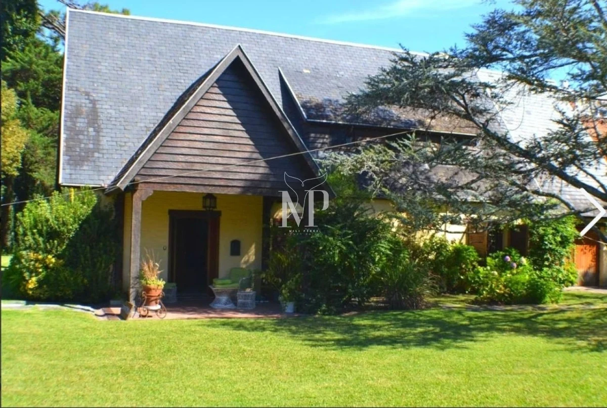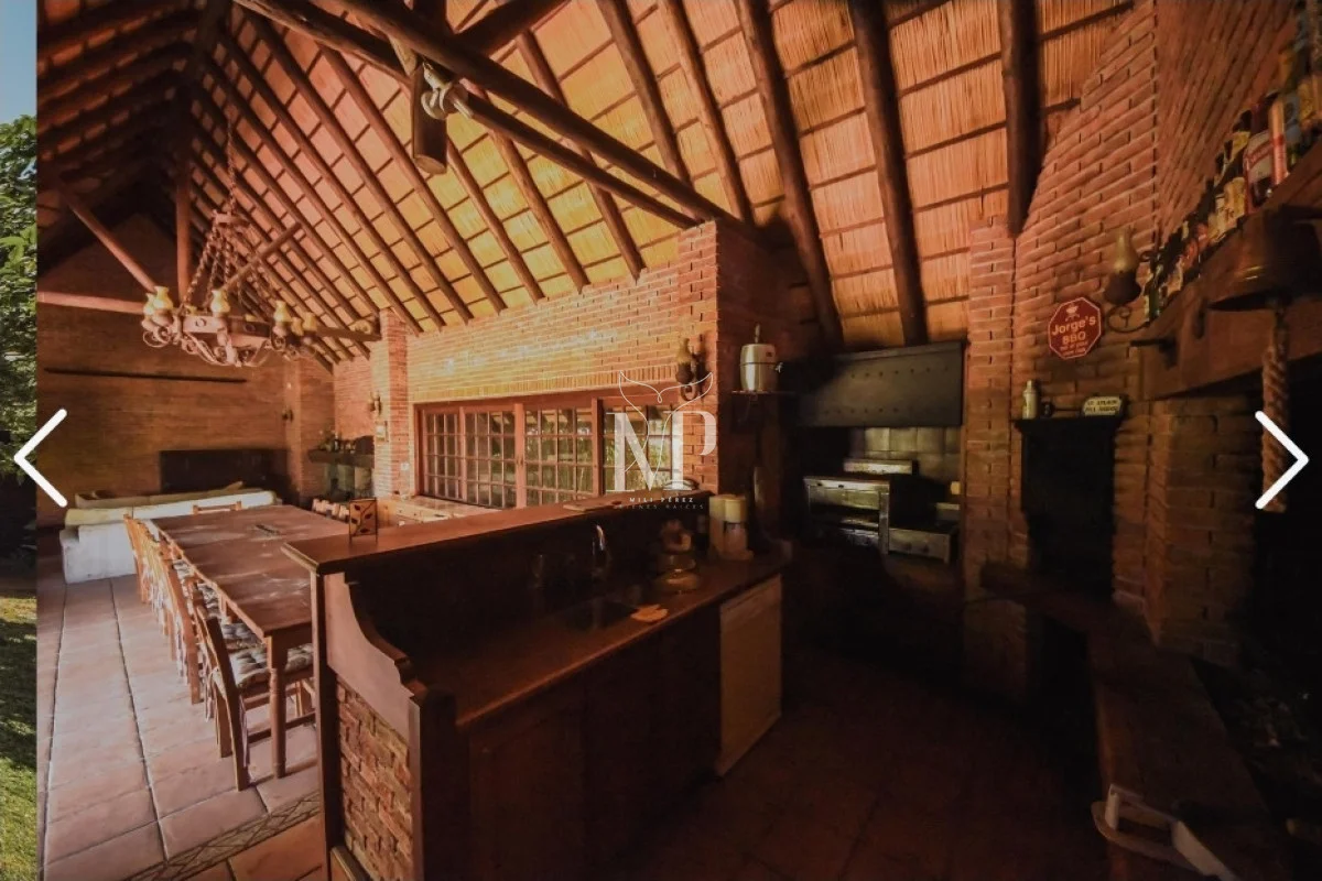 La casa principal dispone de 5 dormitorios, todos amplios y luminosos, y 5 baños, además de un toilette para mayor comodidad. La cocina independiente, con salida directa al jardín, brinda funcionalidad y privacidad, mientras que el living y el comedor diario permiten disfrutar de momentos en familia con vistas al entorno natural.