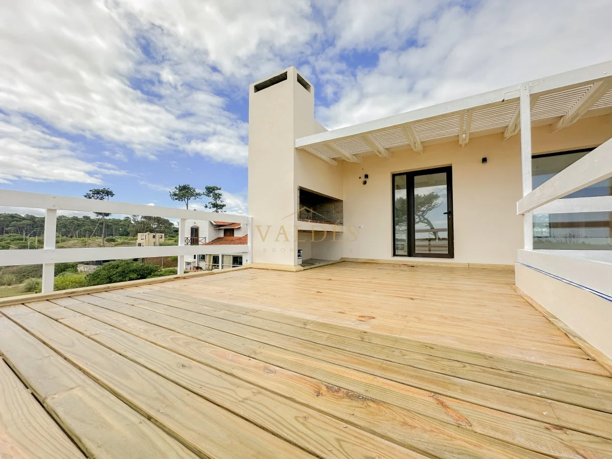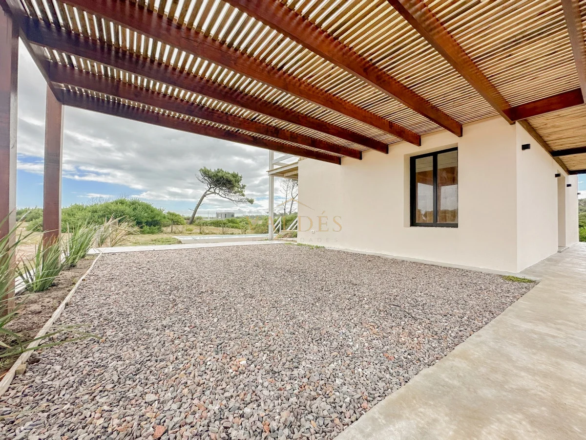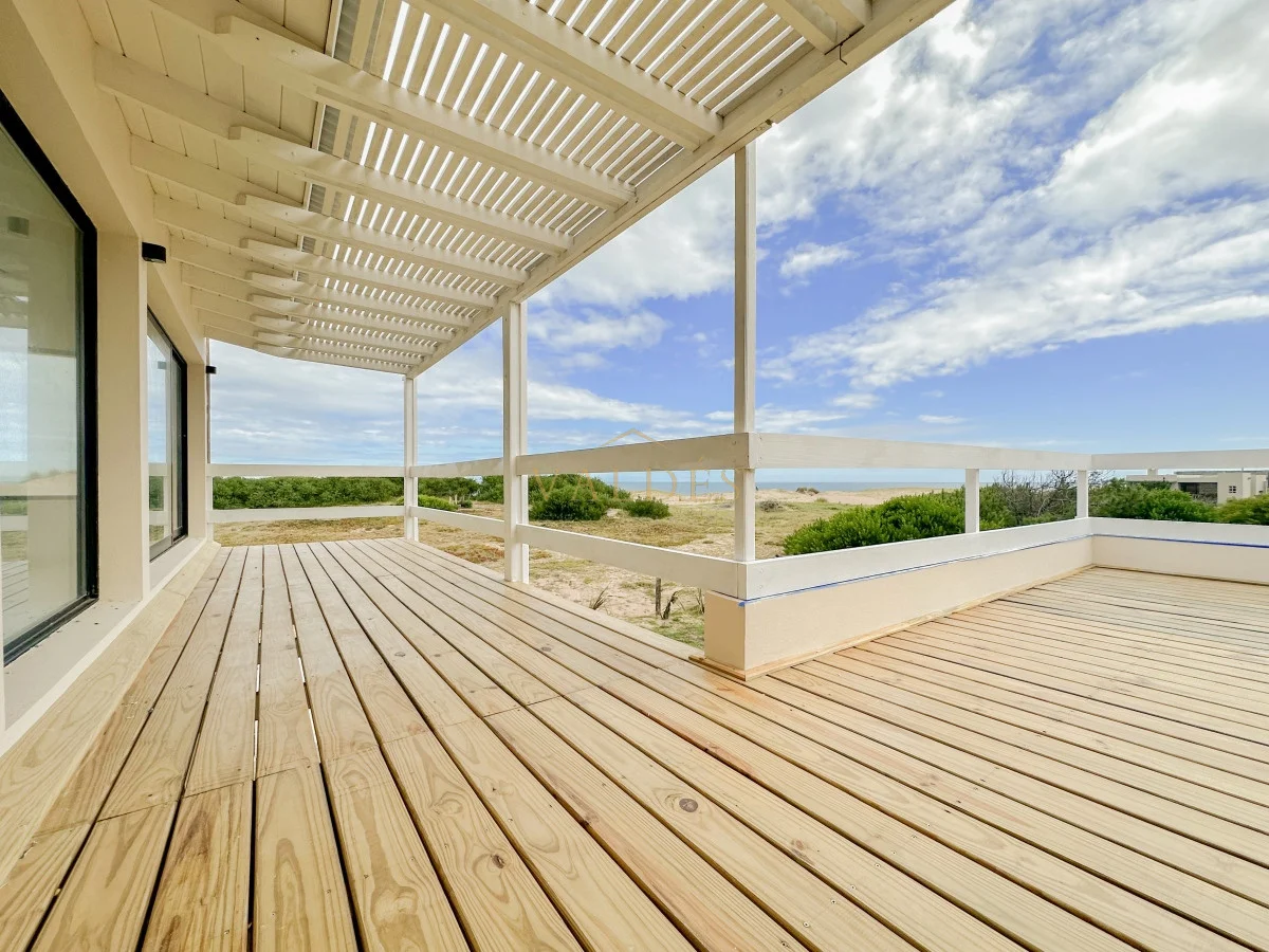 Se accede desde ahí a la terraza apergolada con parrillero ofreciendo una vista panorámica a las dunas y al mar.