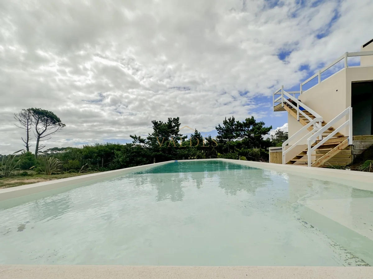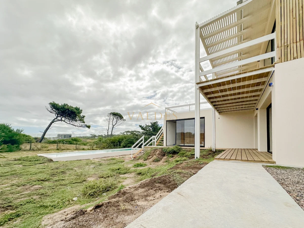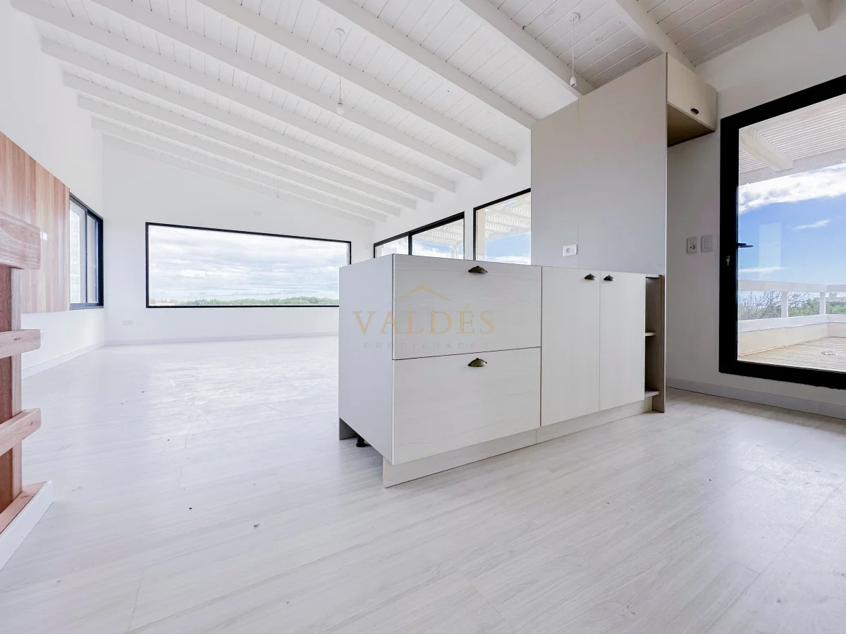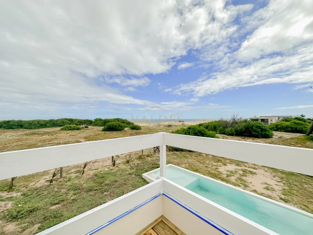 Se accede desde ahí a la terraza apergolada con parrillero ofreciendo una vista panorámica a las dunas y al mar.