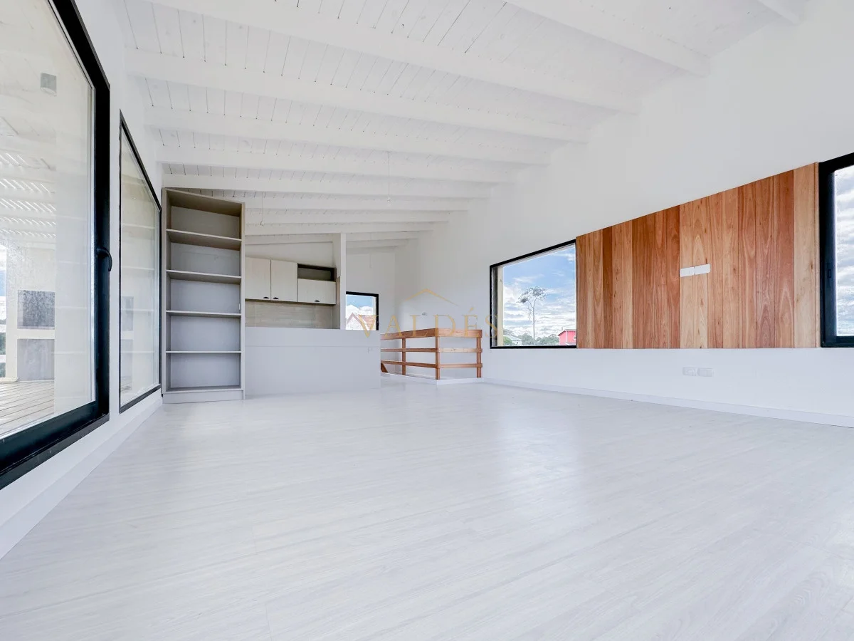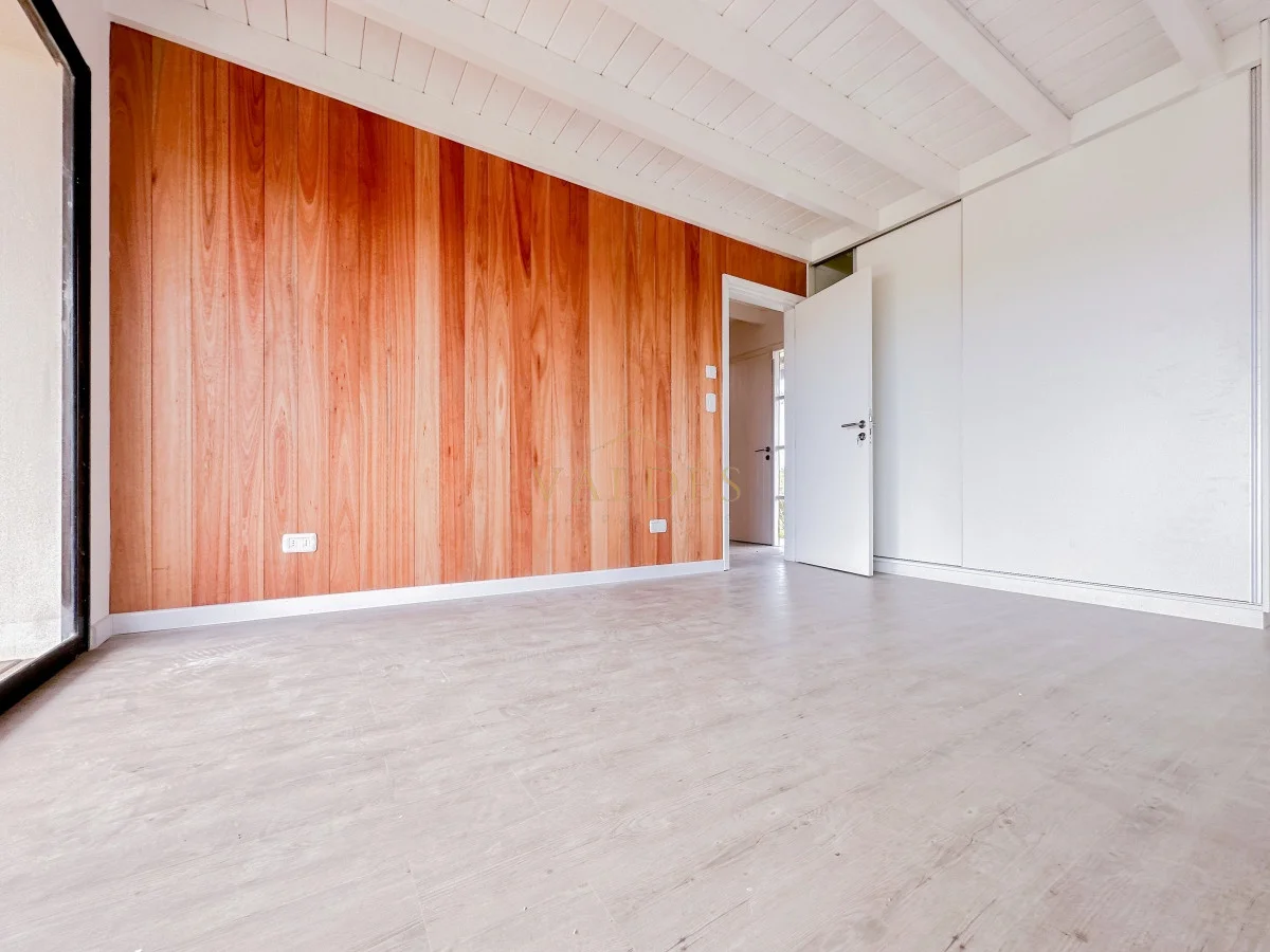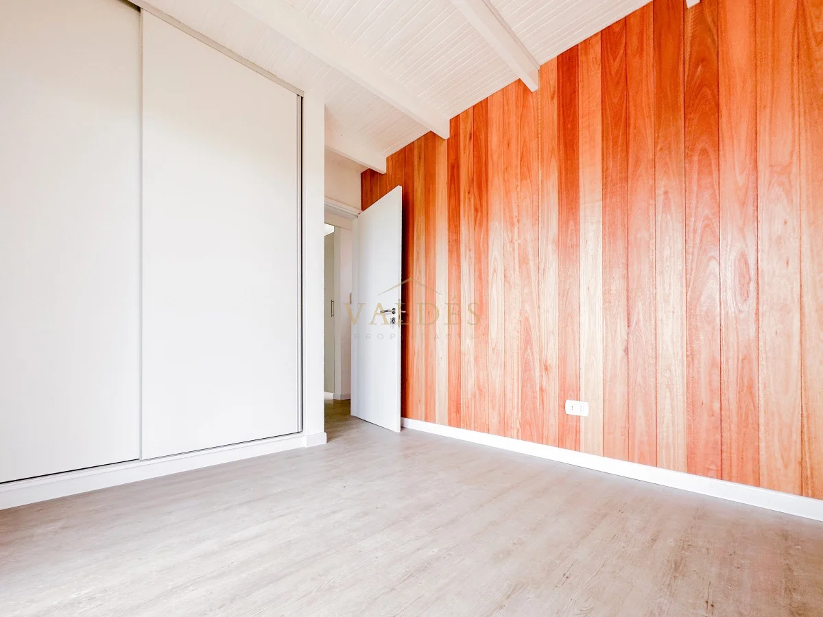 Piscina de 11x5 estilo Polinesia. Posee también una cochera y porche de entrada de 40 metros cuadrados. En la planta baja se encuentran 3 dormitorios: uno de ellos en suite y con su propio vestidor. Las otras dos habitaciones comparten un baño completo. Abajo también encontramos un coqueto lavadero. En la planta alta, la cocina con una barra central se fusiona con la zona de estar y comedor, complementado con otro baño. Las aberturas son doble vidrio, la planta baja cuenta con losa radiante y también tiene pozo semisurgente.