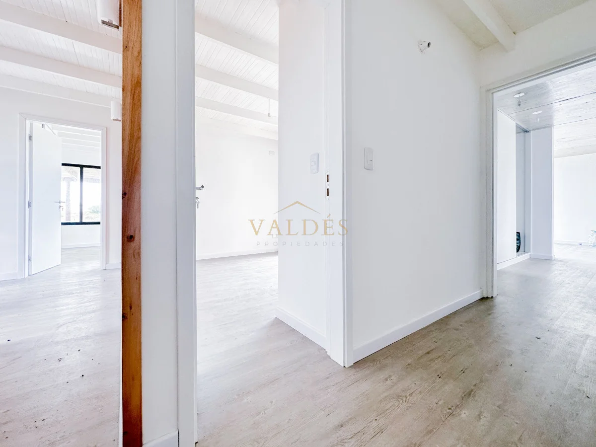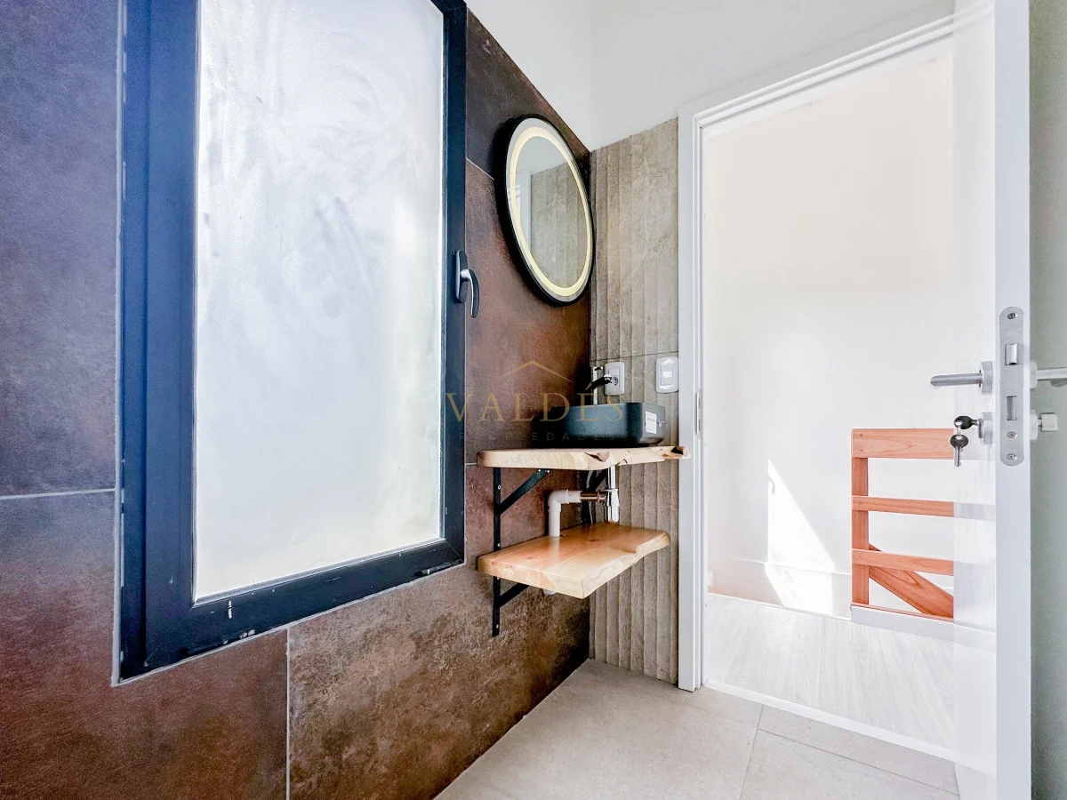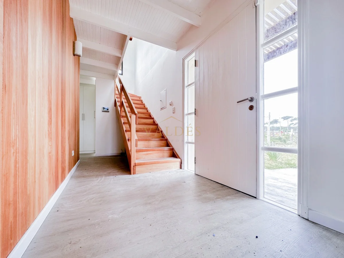 Piscina de 11x5 estilo Polinesia. Posee también una cochera y porche de entrada de 40 metros cuadrados. En la planta baja se encuentran 3 dormitorios: uno de ellos en suite y con su propio vestidor. Las otras dos habitaciones comparten un baño completo. Abajo también encontramos un coqueto lavadero. En la planta alta, la cocina con una barra central se fusiona con la zona de estar y comedor, complementado con otro baño. Las aberturas son doble vidrio, la planta baja cuenta con losa radiante y también tiene pozo semisurgente.
