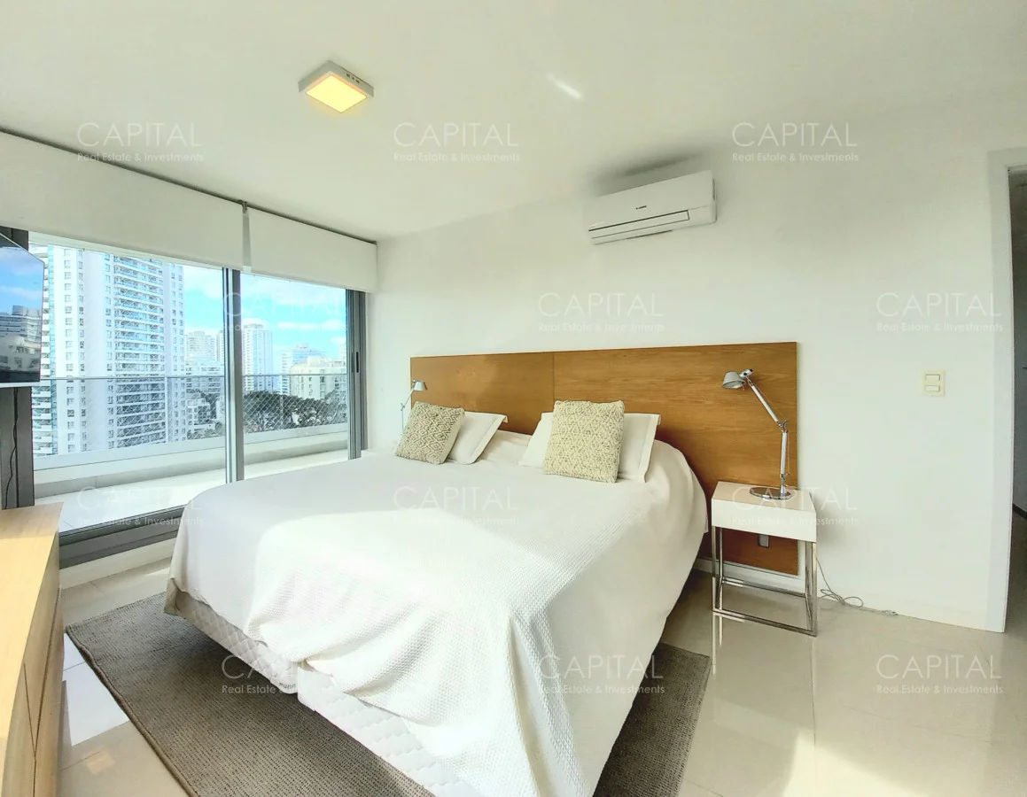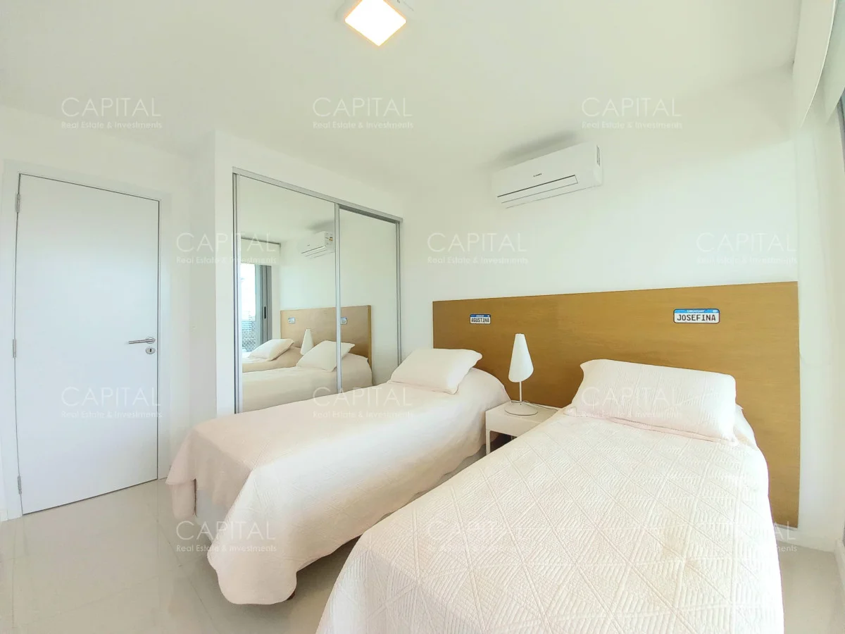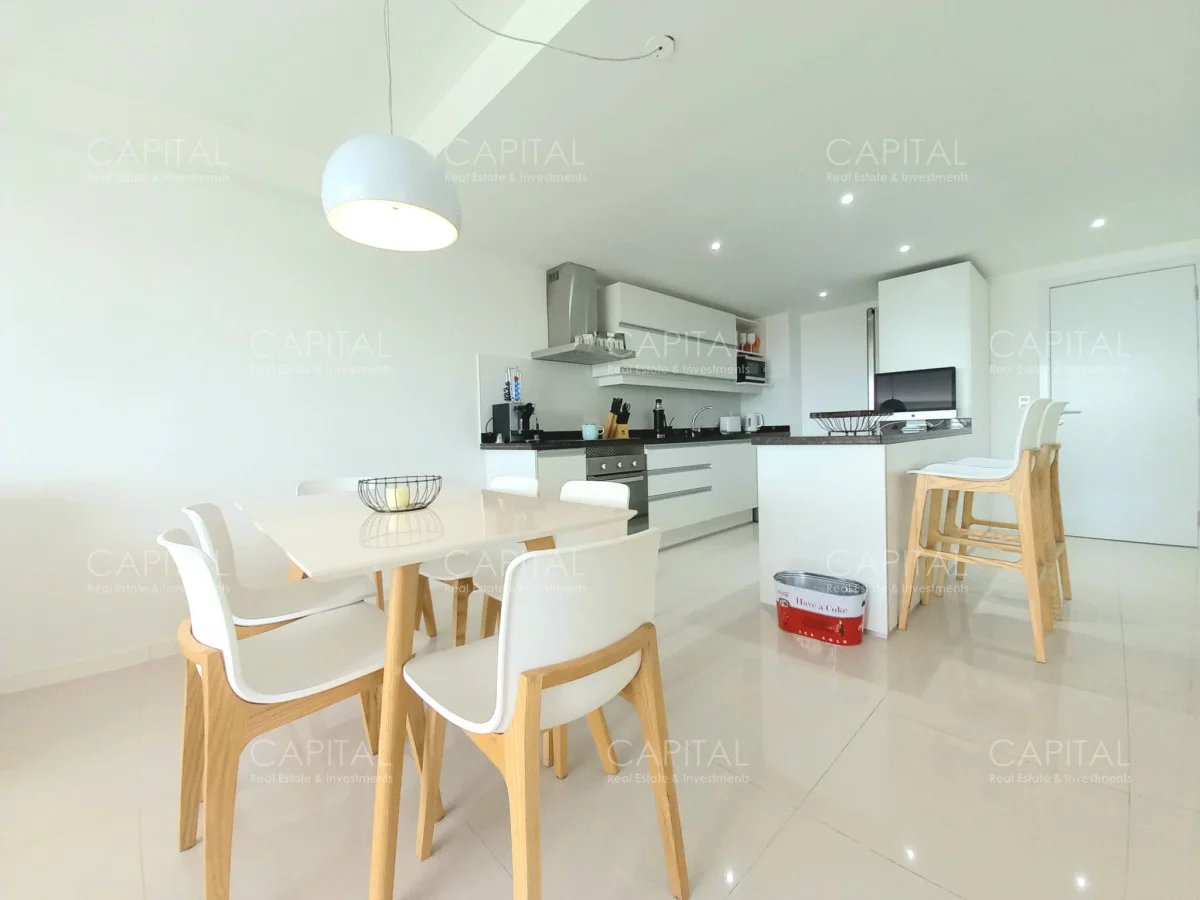 Espectacular departamento a metros del mar en muy buen edificio con vista. Se encuentra en excelente estado y muy bien equipado. Amplio y luminoso living-comedor con amplia cocina integrada. Dos dormitorios, uno en suite, mas dependencia de servicio con baño. Edificio con amenities y gastos comunes bajos. No dude en consultarnos. Referencia Interna : Tera-32749