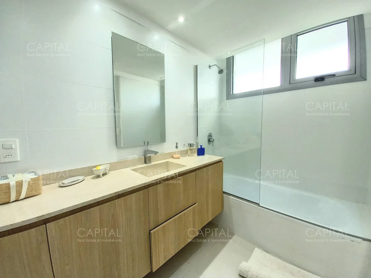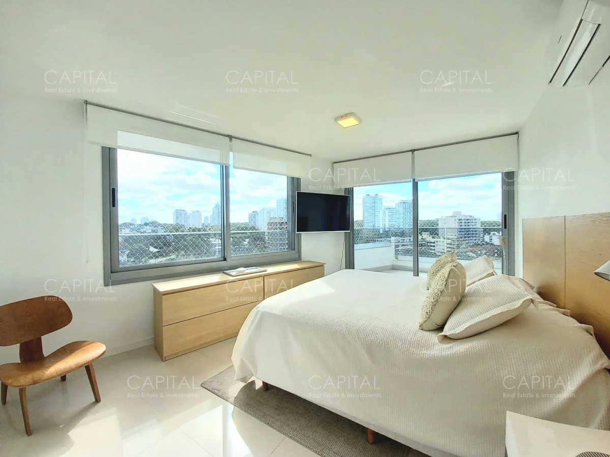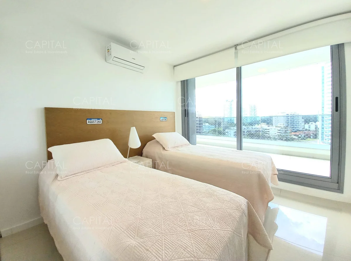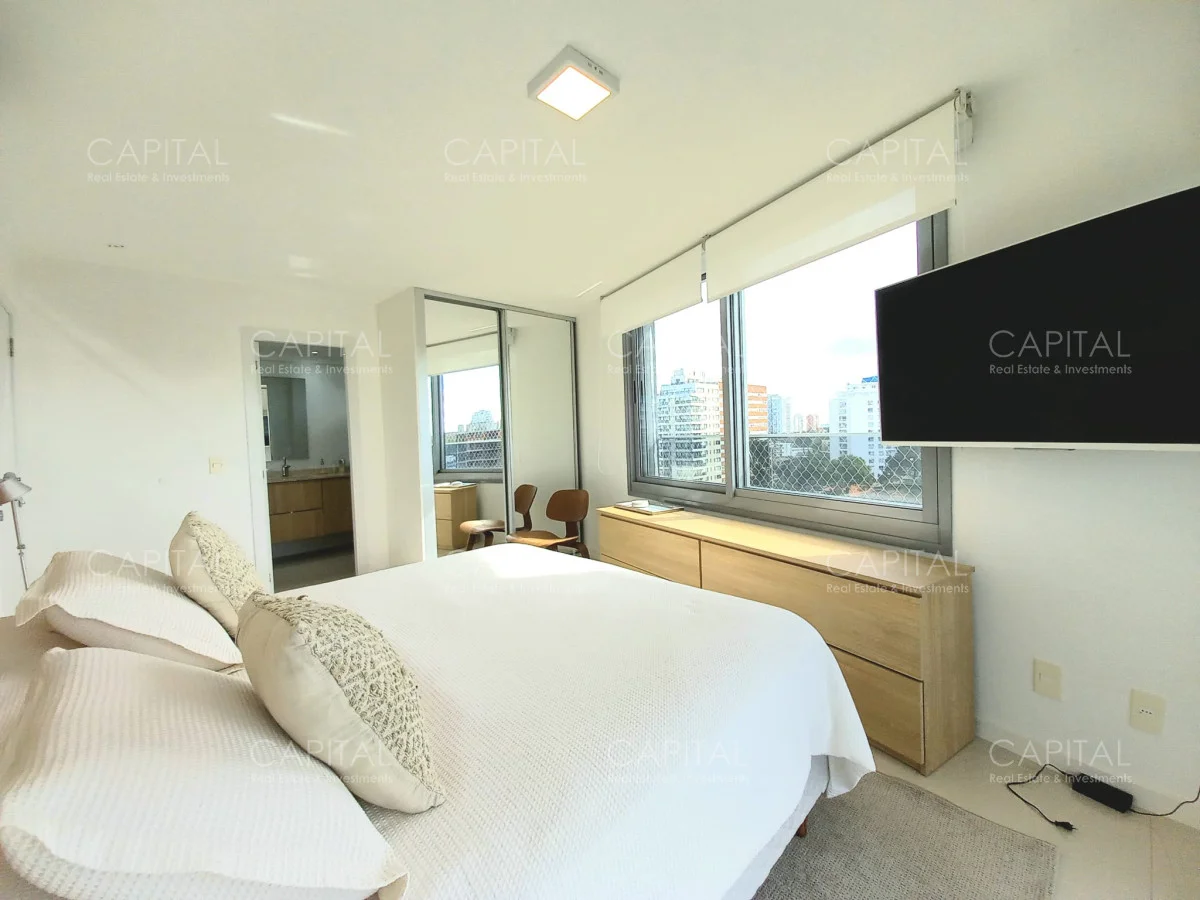 Espectacular departamento a metros del mar en muy buen edificio con vista. Se encuentra en excelente estado y muy bien equipado. Amplio y luminoso living-comedor con amplia cocina integrada. Dos dormitorios, uno en suite, mas dependencia de servicio con baño. Edificio con amenities y gastos comunes bajos. No dude en consultarnos. Referencia Interna : Tera-32749