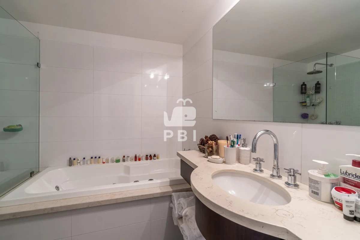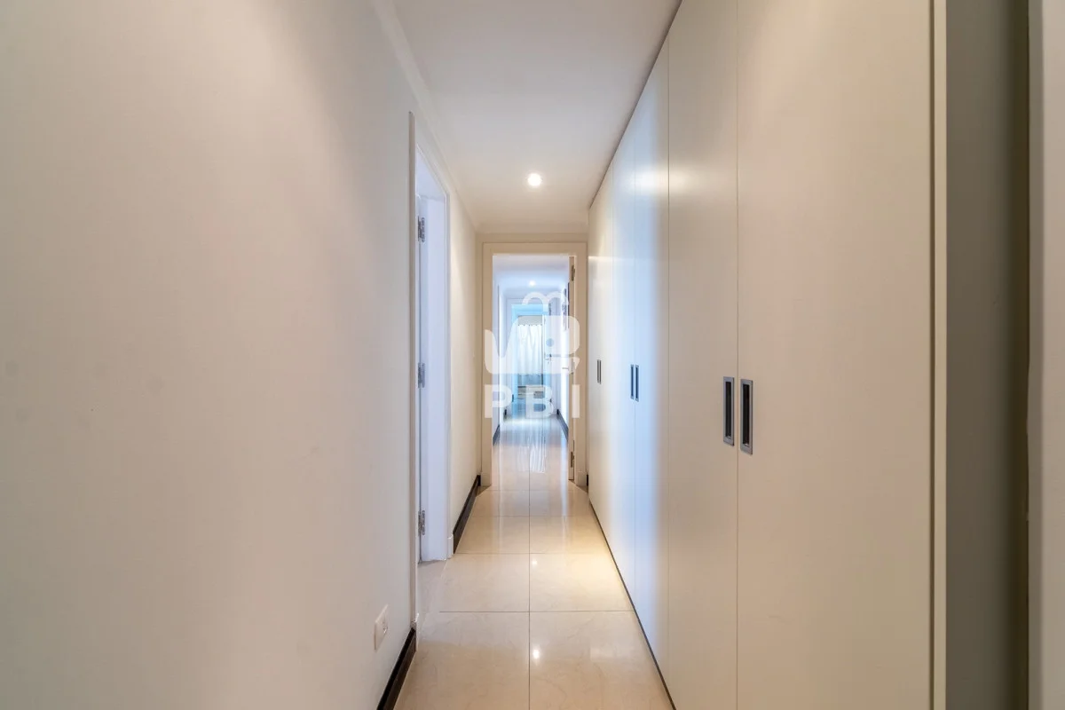 El apartamento ofrece 3 dormitorios en suite, incluyendo una suite principal con vistas al mar. También dispone de un elegante toilette que proporciona privacidad adicional y confort.