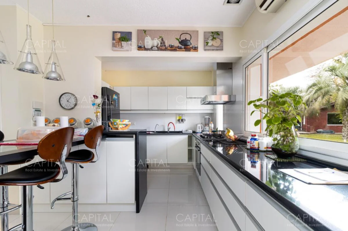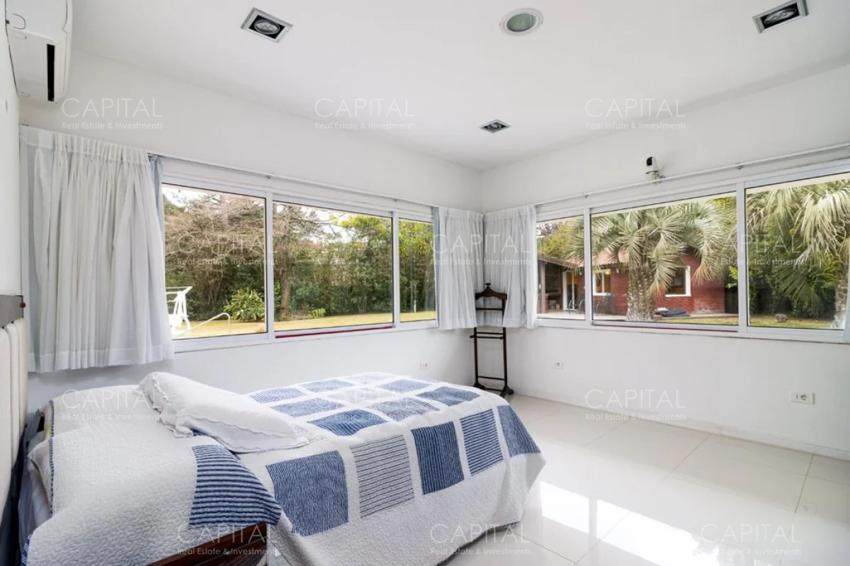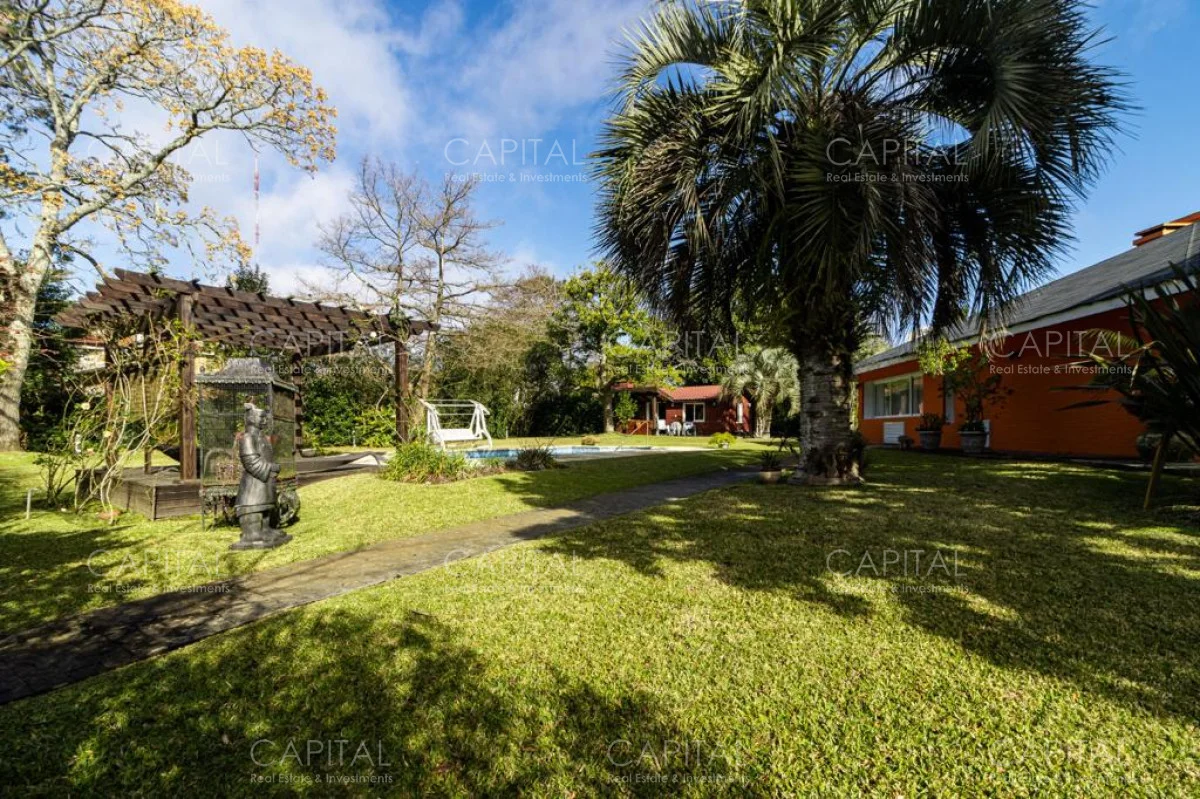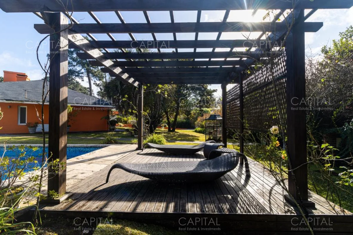 Excelente casa, de solida construccion en Barrio Cantegril, distribuida en una planta en un lote de 2547m2. Amplio living comedor pasante, donde se segmentan bien el área de estar con hogar a leña y área de comedor, terraza al jardin muy agradable. Cuenta con 5 dormitorios, 3 de ellos en suite, el principal grande con buen vestidor y baño con jacuzzi. Excelente jardín, todo cercado y con un parque espectacular, piscina muy linda. Dentro de la casa 4 baños y Toilette. La cocina esta reciclada y muy bien equipada. Barbacoa bien equipada con baño. Dependencia de Ss con Baño. Ac en todos los ambientes Garaje para 2 autos cerrados y Estacionamiento para 3 autos mas. Referencia Interna : Tera-33247