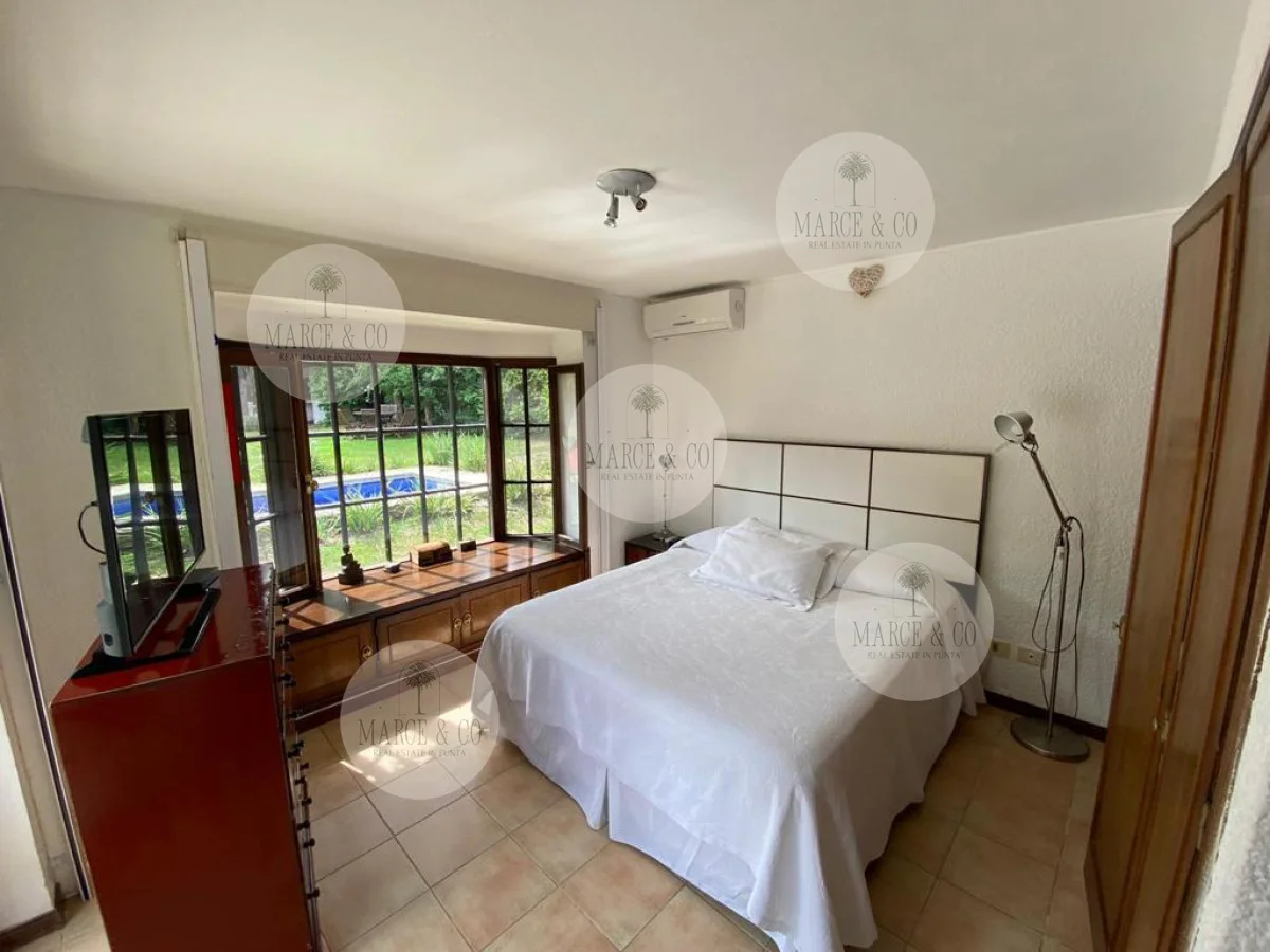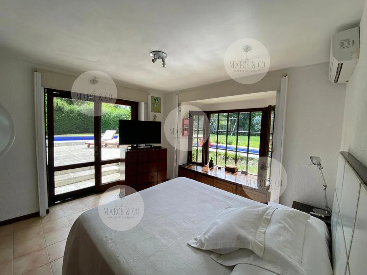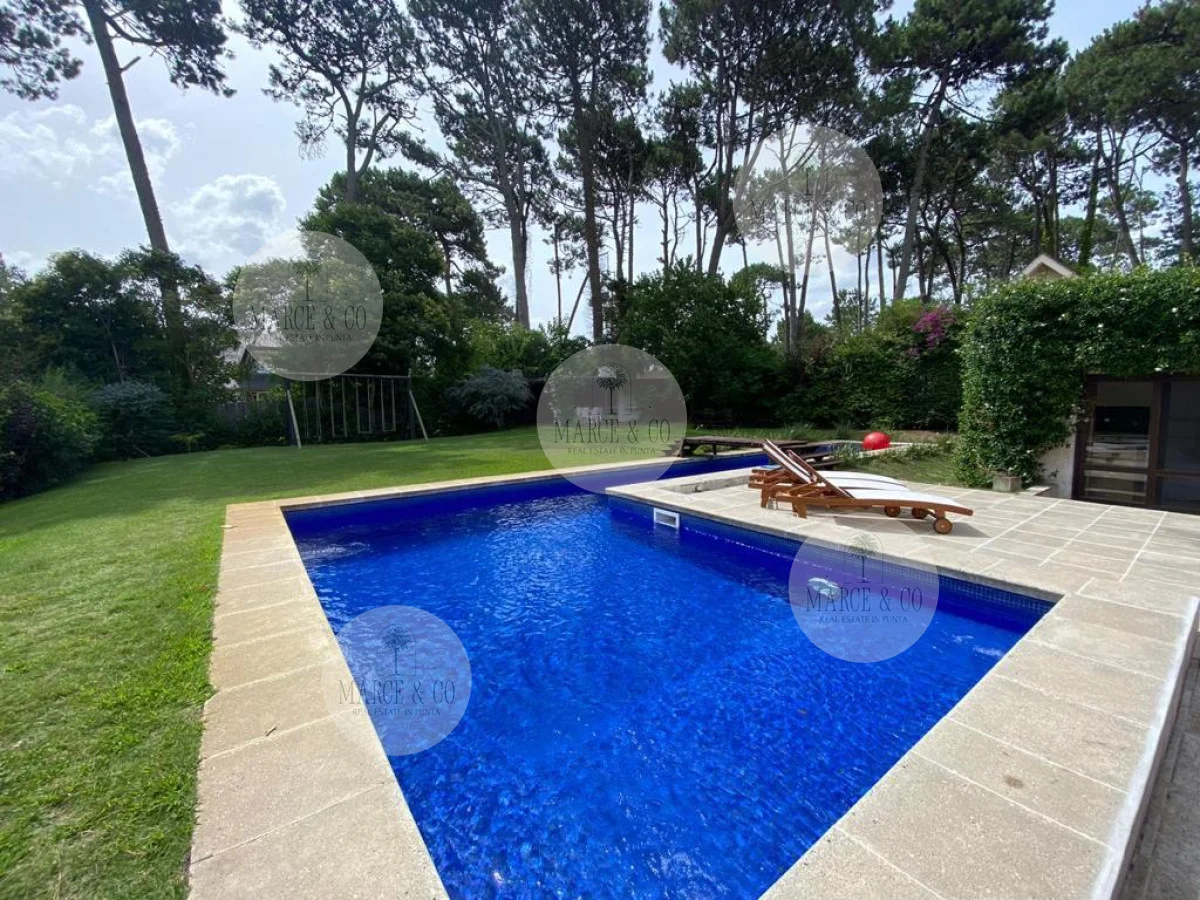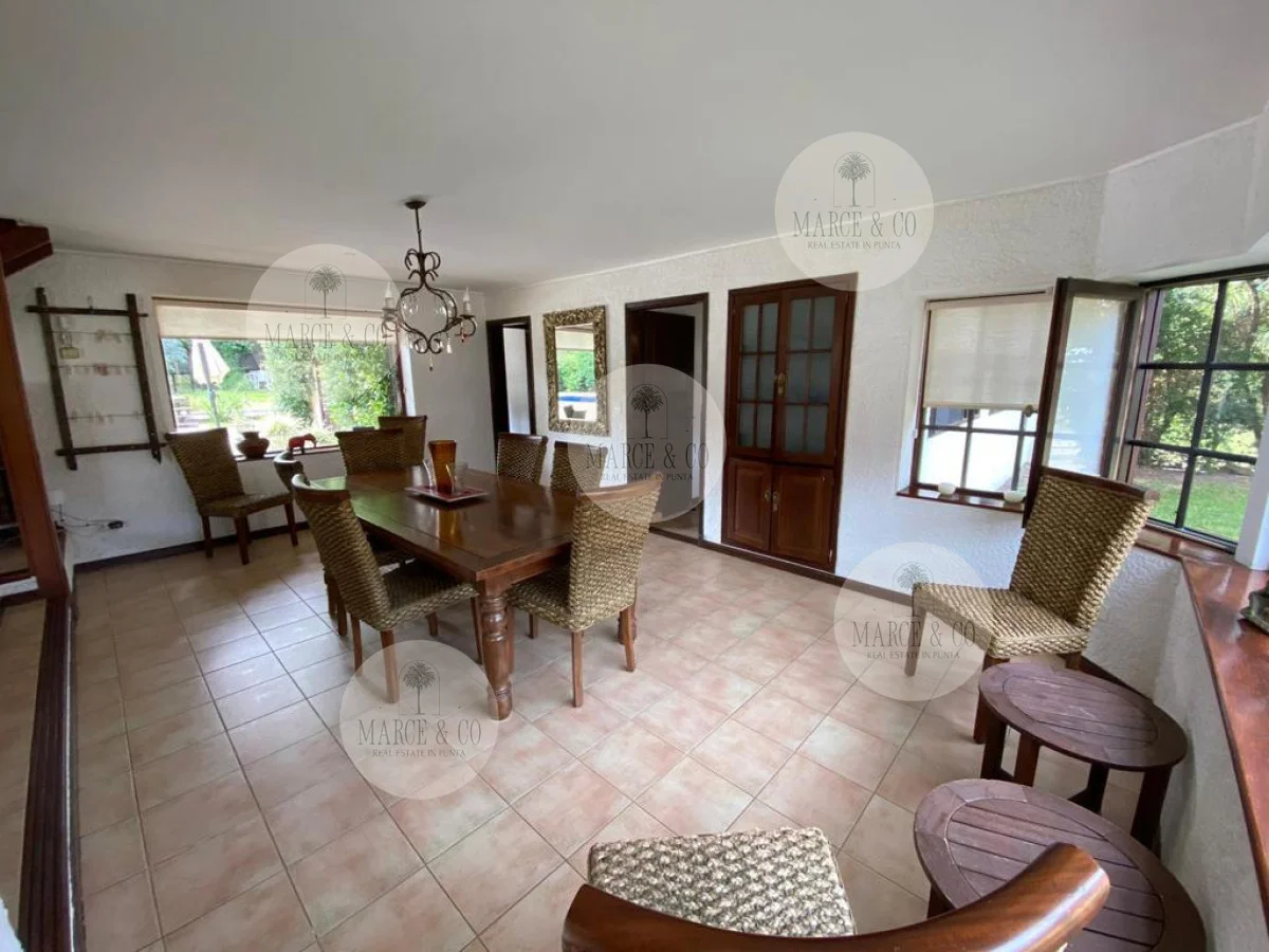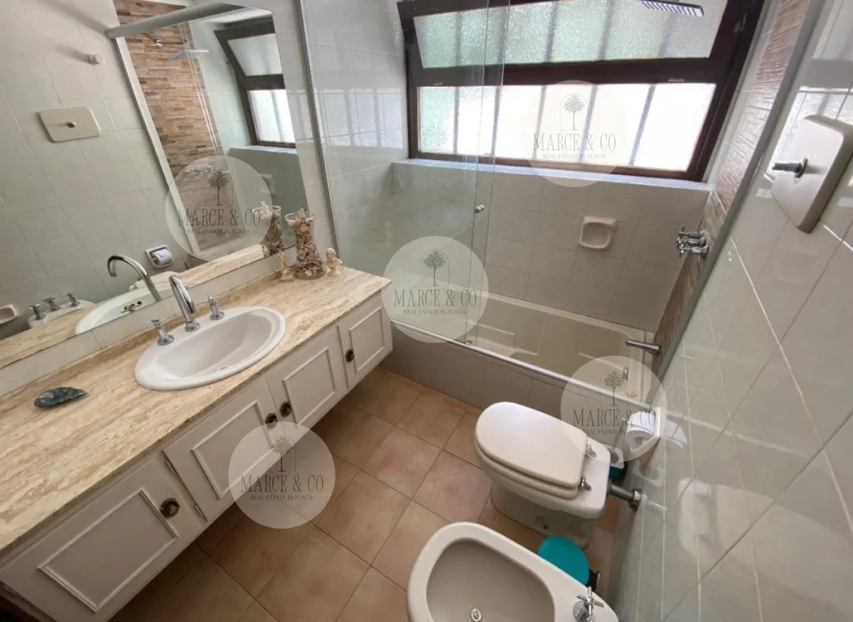 Excelente casa, muy cómoda, living comedor amplio, a pocas cuadras de Punta Shopping. Rampa de acceso a la casa, aire acondicionado en sus ambientes. Cuenta con 4 dormitorios (2 en suite) y servicio con baño. Amplia cocina bien equipada, jardín con piscina climatizada , parrillero.