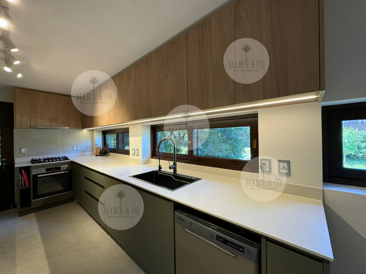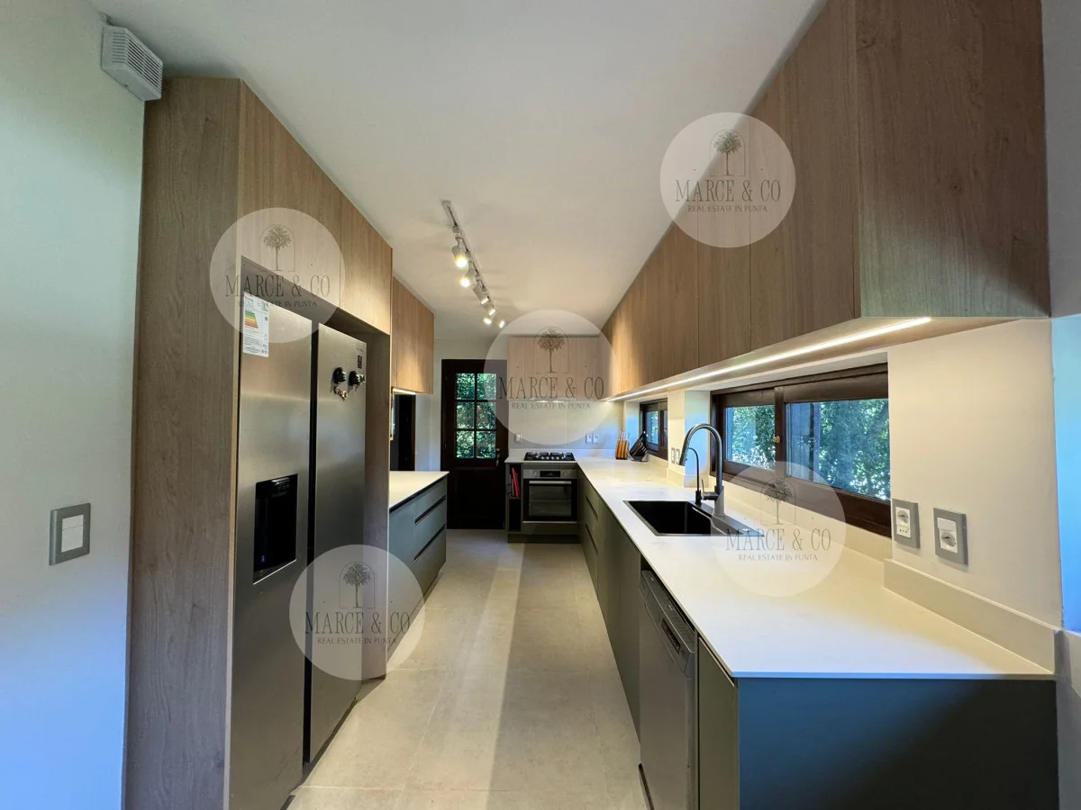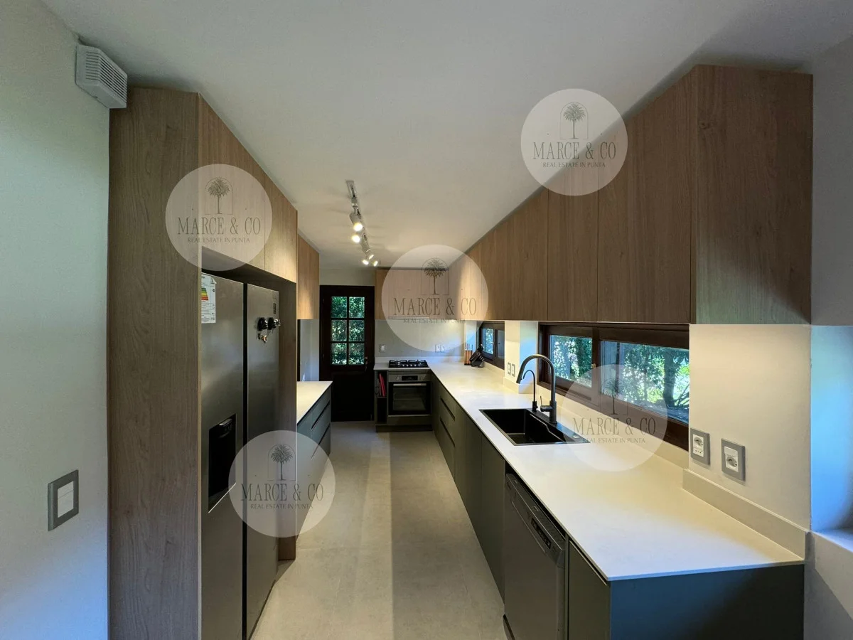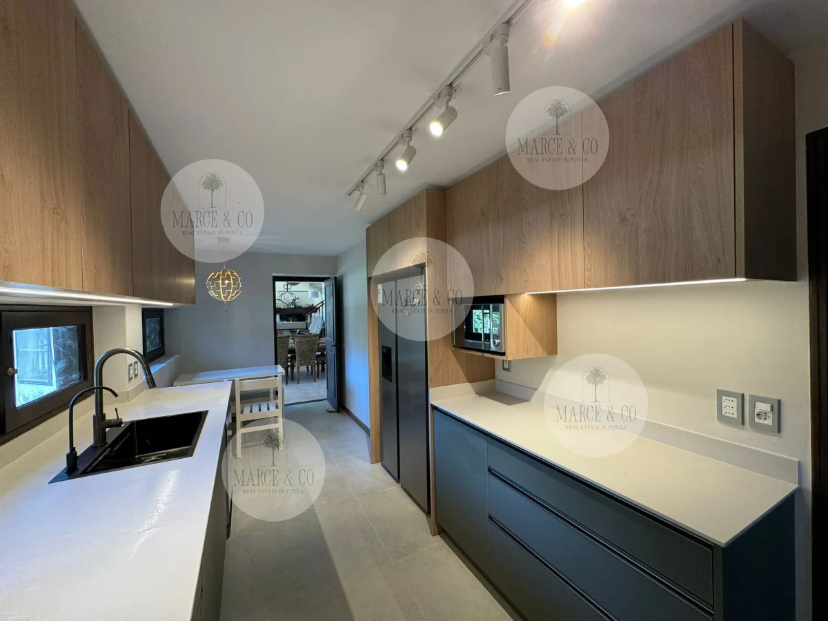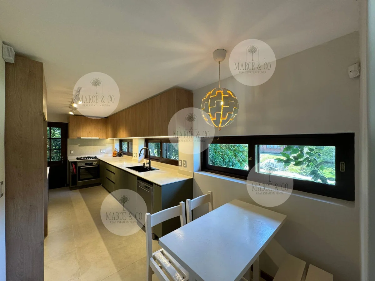 Excelente casa, muy cómoda, living comedor amplio, a pocas cuadras de Punta Shopping. Rampa de acceso a la casa, aire acondicionado en sus ambientes. Cuenta con 4 dormitorios (2 en suite) y servicio con baño. Amplia cocina bien equipada, jardín con piscina climatizada , parrillero.