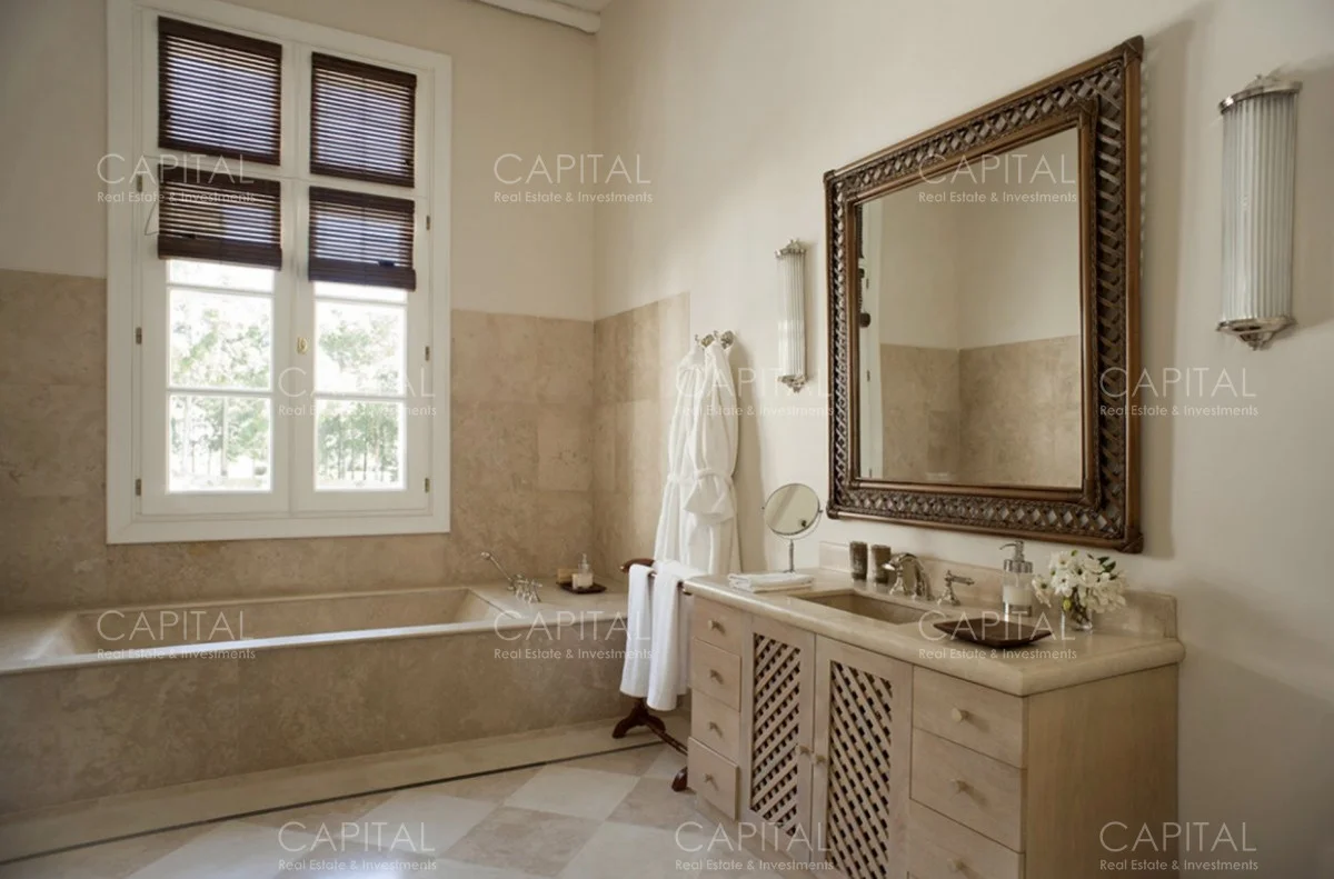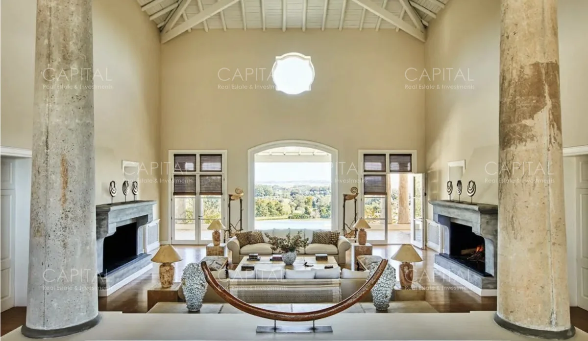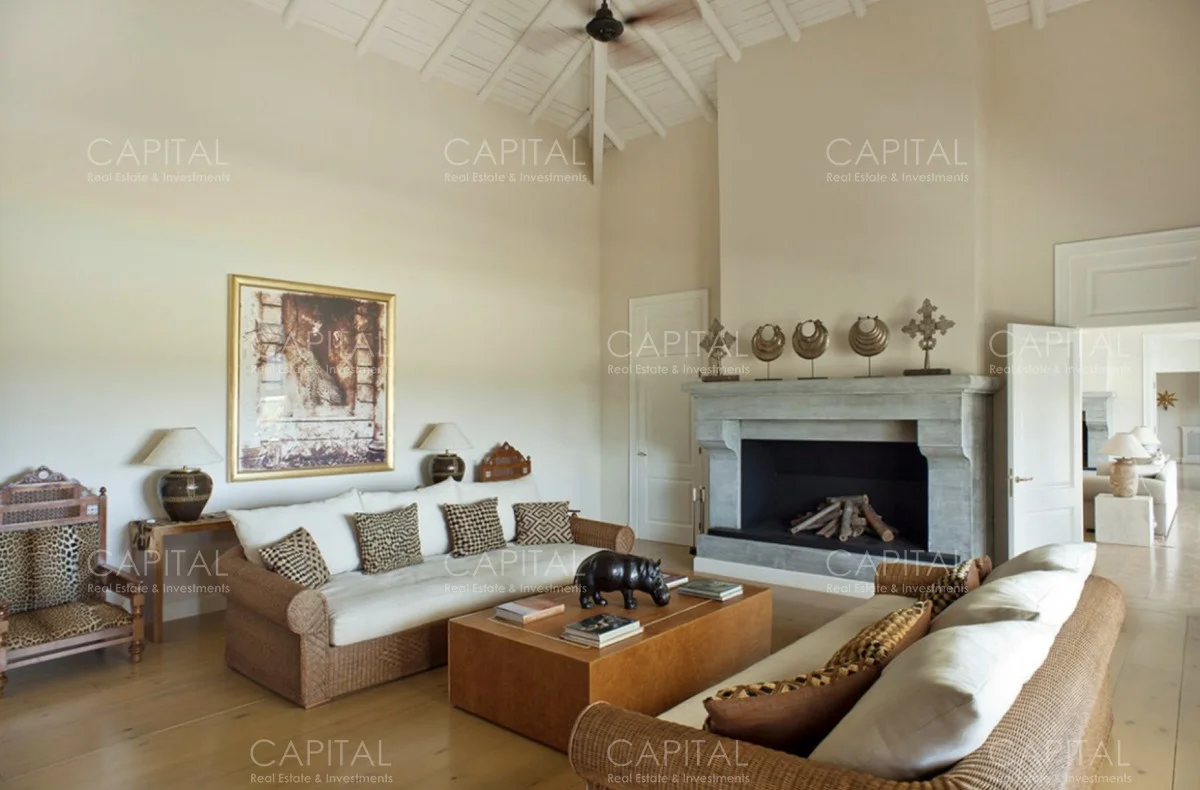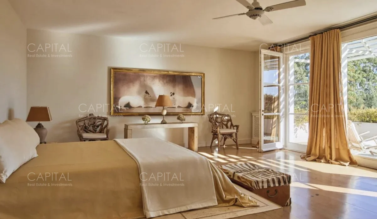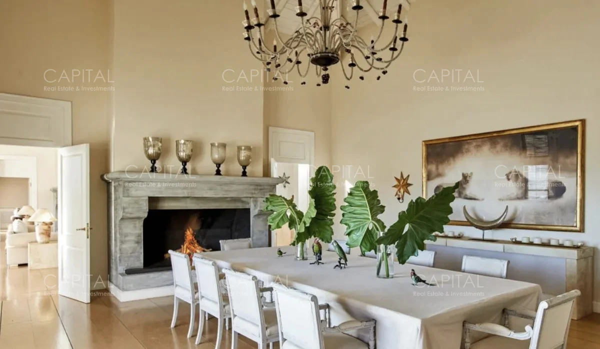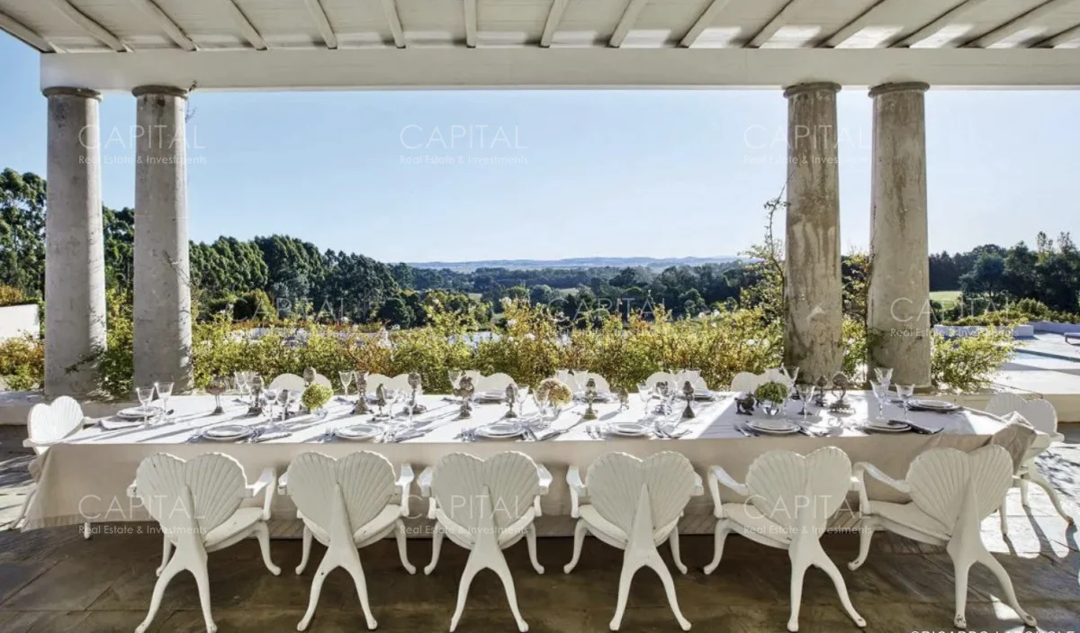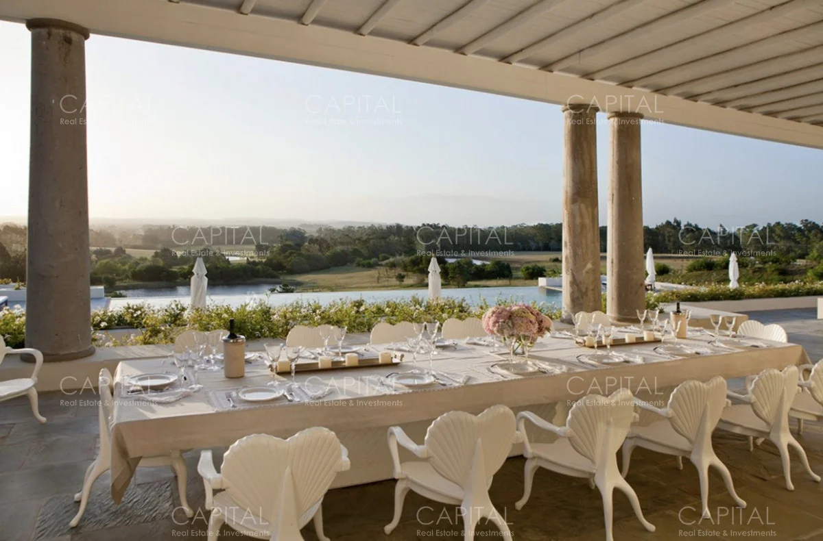 La casa cuenta con siete suites con sus terrazas privadas, un gran living con dos enormes estufas a leña, un comedor amplio y espectacular, espaciosa cocina con desayunador, sala de máquinas, gimnasio y spa con sauna. Afuera, en el nivel principal se encuentra una zona de living y comedor con capacidad para varias personas. Bajando una escalera al segundo nivel está la piscina de dimensiones olímpicas, con su solarium y vistas infinitas. La casa tiene dos dormitories de servicio en suite y una gran casa de caseros independiente. El paisajismo original fue obra del italiano Stefano Baccari. En el interior de Dama de la Noche, los ambientes de carácter palaciego están decorados con una combinación de estilos colonial y gaucho, y sus paredes se visten con una impactante colección de arte contemporáneo de origen italiano. El lujo distendido de Dama de la Noche resume el estilo informal que es la impronta de la vida social y las recepciones y fiestas de este rincón cosmopolita de Uruguay, donde en un cocktail a la puesta del sol se pueden reunir a 100 personas con comodidad en sus diversas terrazas.