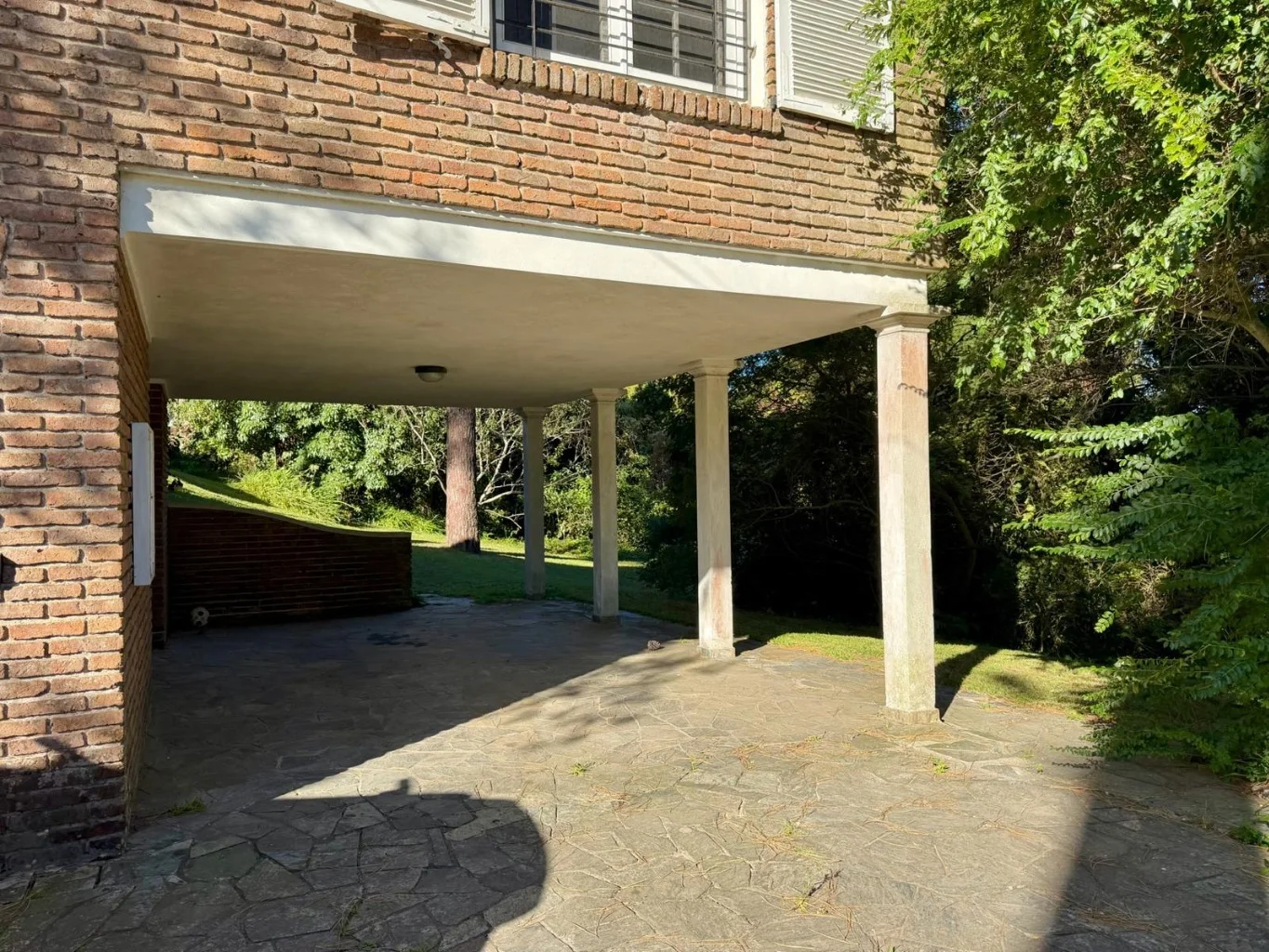 Garage techado y espacio semi-techado para varios vehículos.