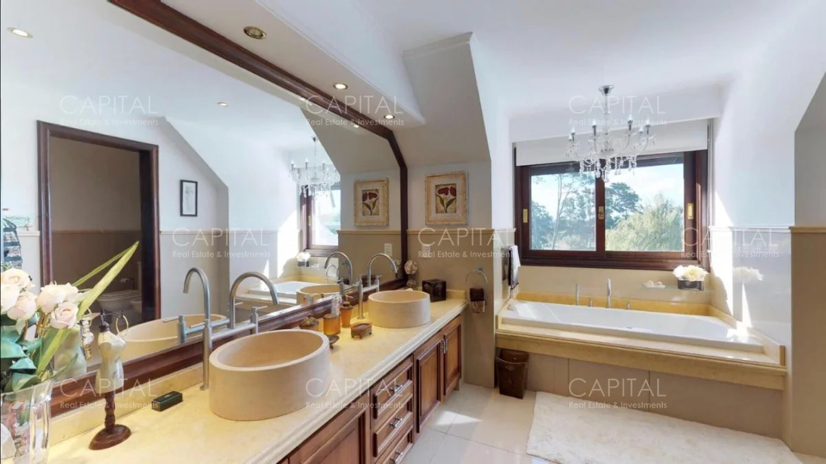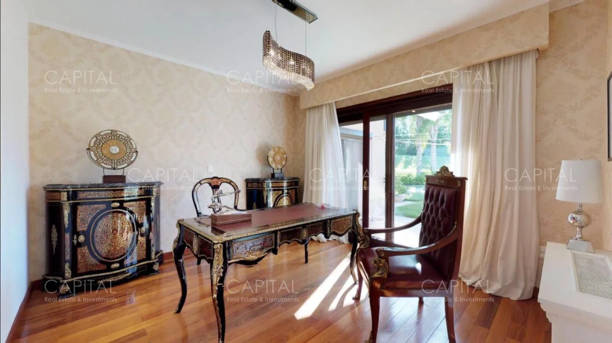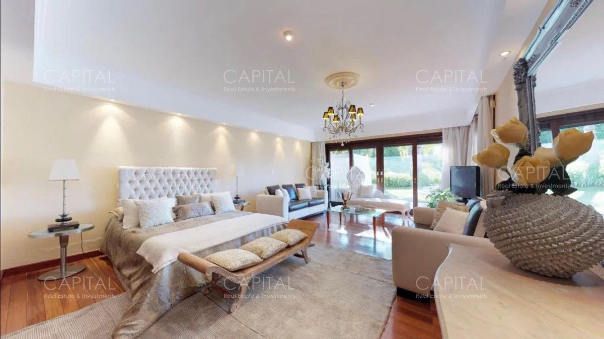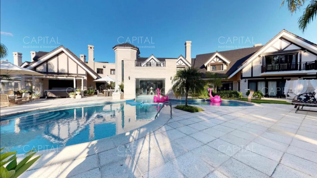 Cuenta con siete amplias suites, todas con vestidor e hidromasaje. Living, comedor, estar, escritorio, playroom, gimnasio, cocina con comedor diario, barbacoa cerrada con piscina exterior-interior con bomba de calor, sauna húmedo y jardín de invierno.
