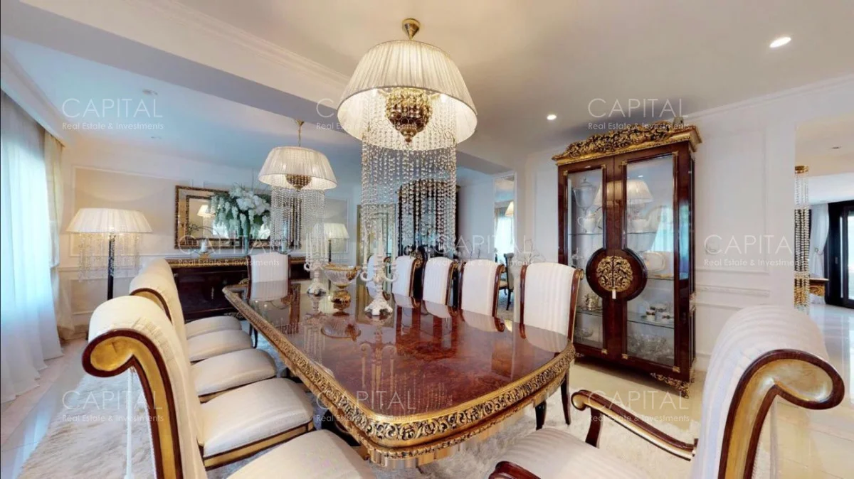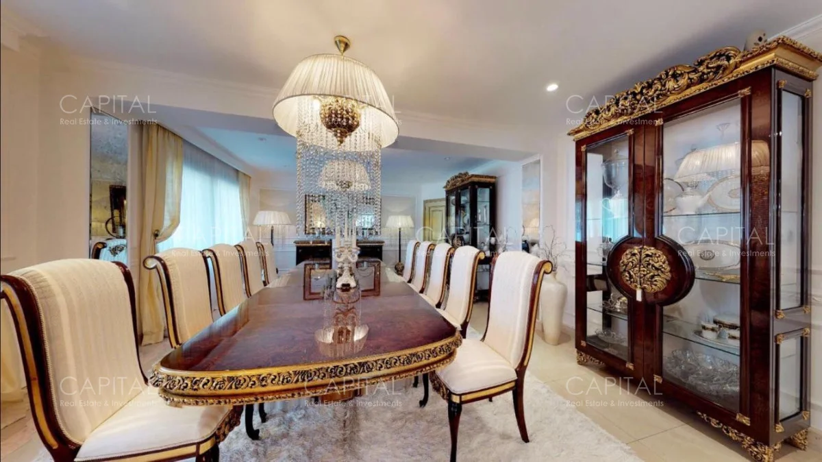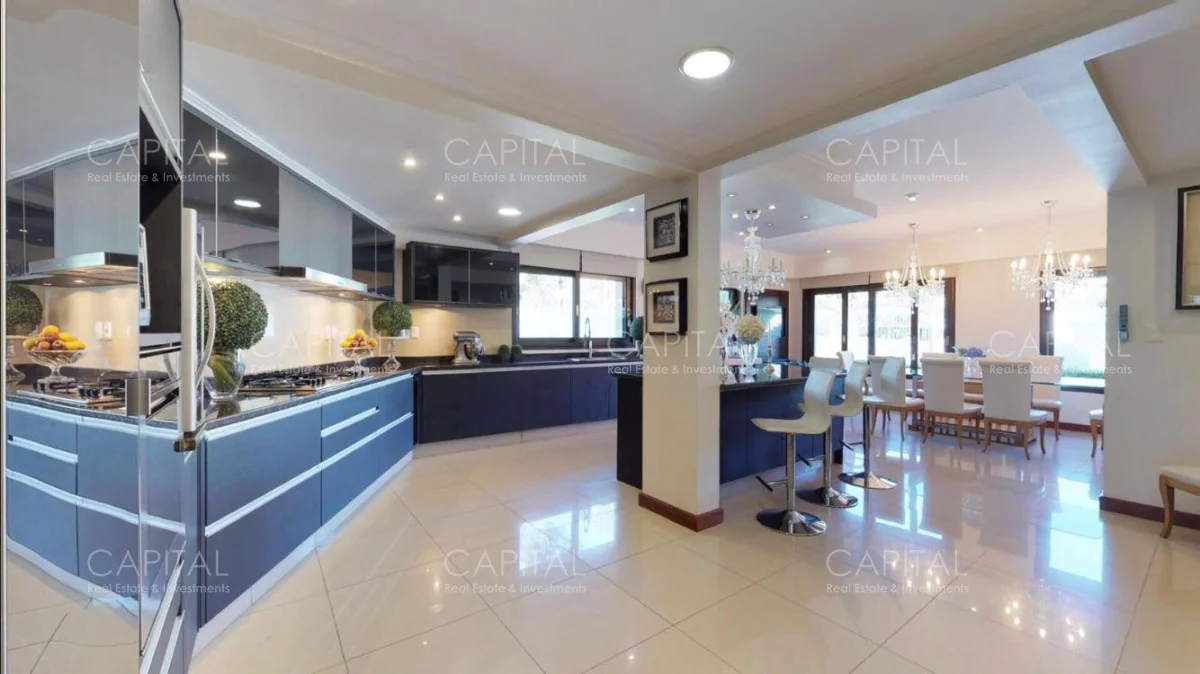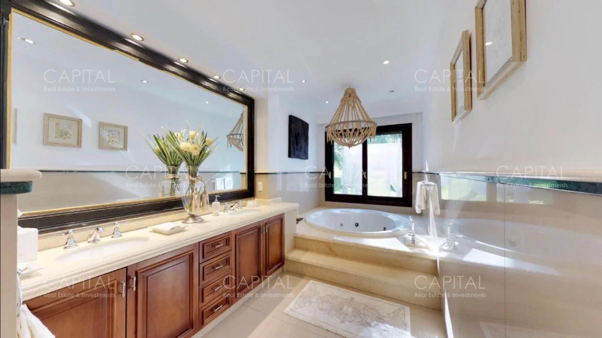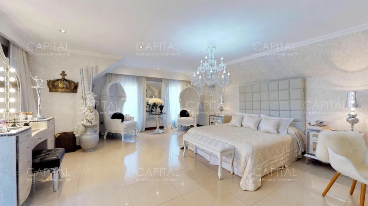 Cuenta con siete amplias suites, todas con vestidor e hidromasaje. Living, comedor, estar, escritorio, playroom, gimnasio, cocina con comedor diario, barbacoa cerrada con piscina exterior-interior con bomba de calor, sauna húmedo y jardín de invierno.