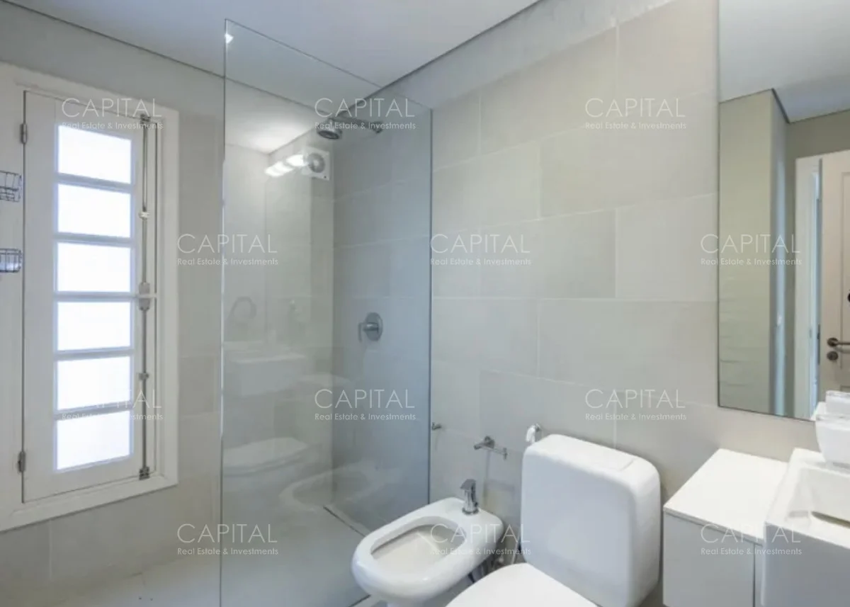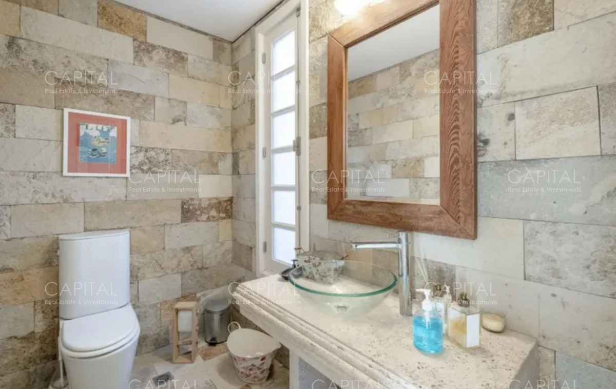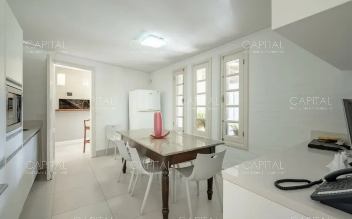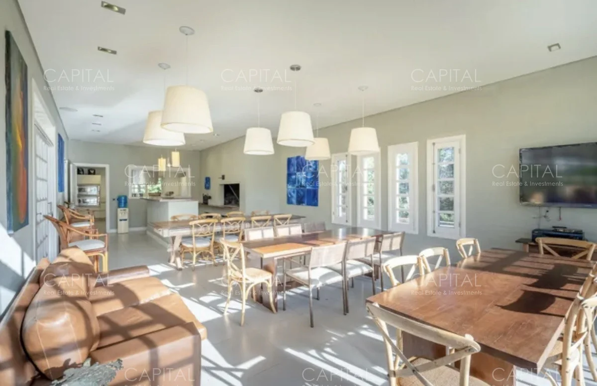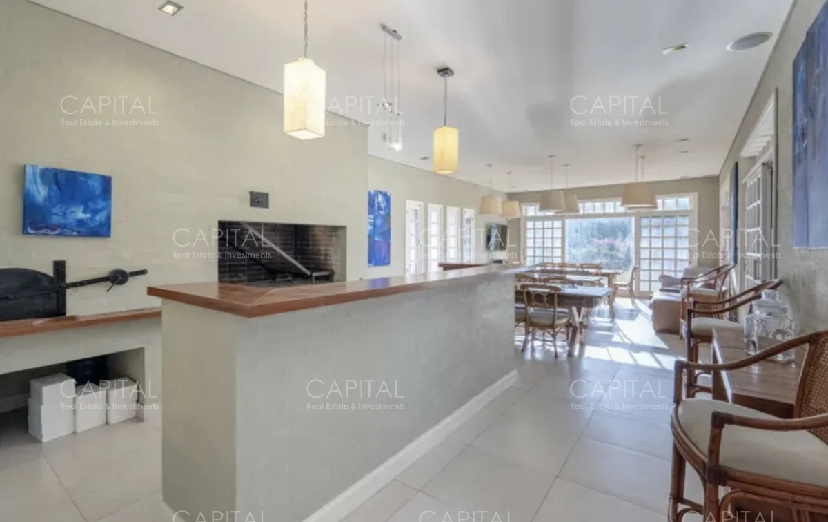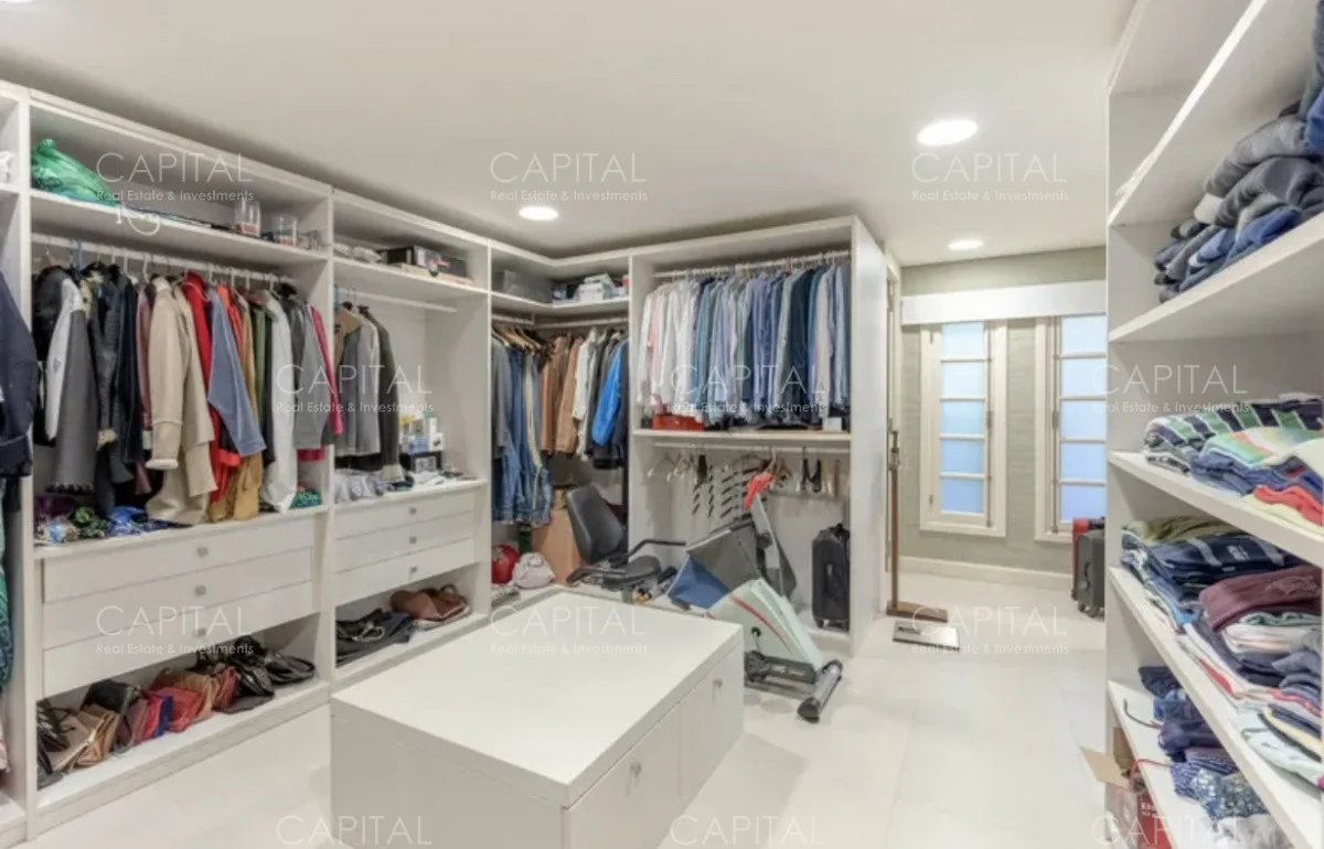 Cuenta con 9 habitaciones en suite (principal suite con amplio vestidor y baño doble con duchas y jacuzzi), 12 baños, oficina, amplia sala, comedor y sala de estar con chimenea, todo con grandes ventanales con vista al parque y piscina. Cocina, amplio quincho, play-room con home cinema, losa radiante a gas, agua caliente central, cancha de tenis, despensa, dependencia de servicio, jardín interior y amplia galería. Lavadero y garaje para 3 coches. Piscina climatizada exterior con deck.