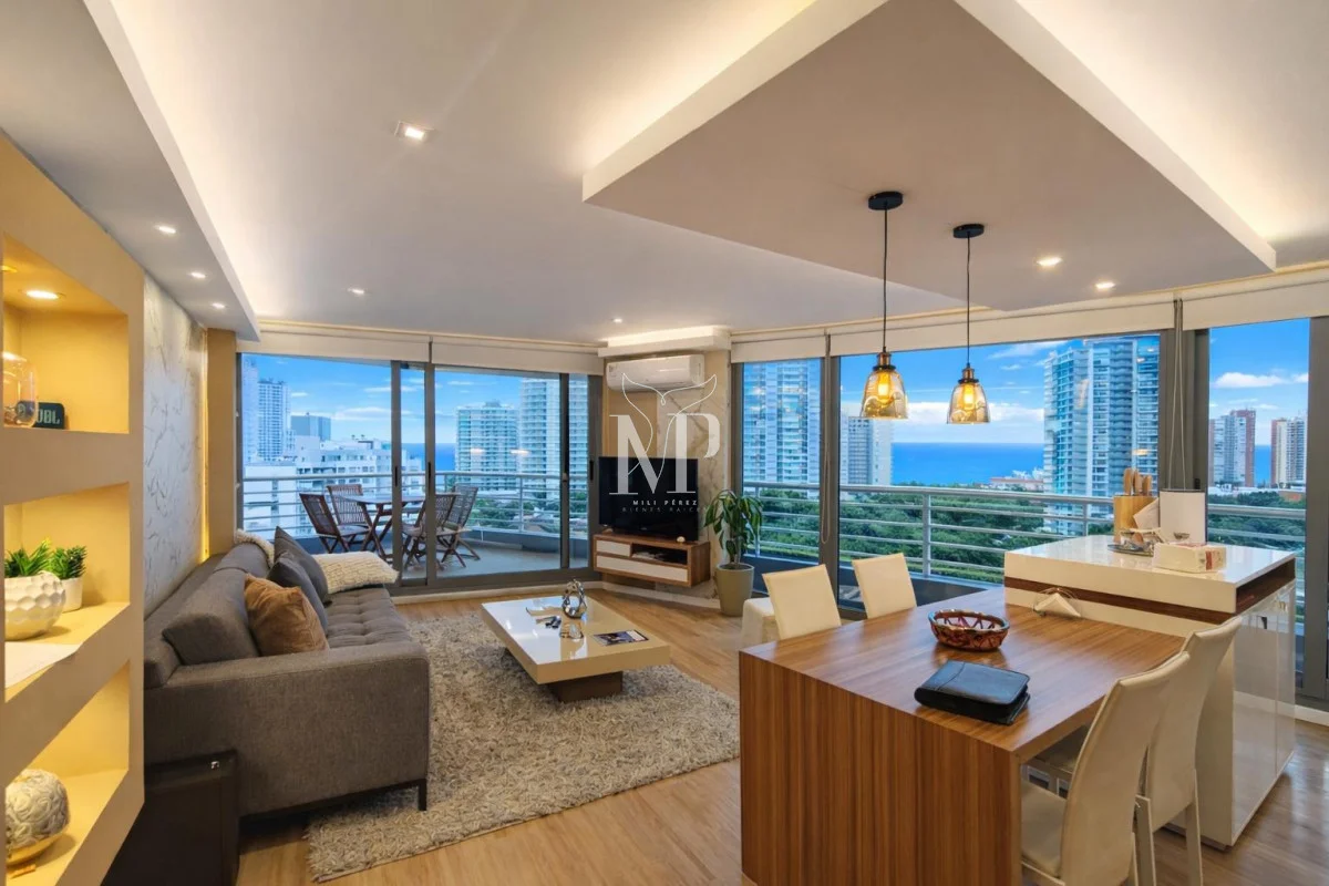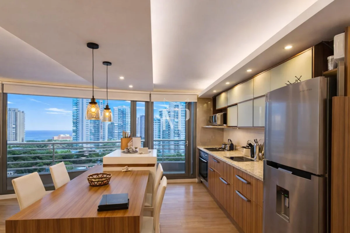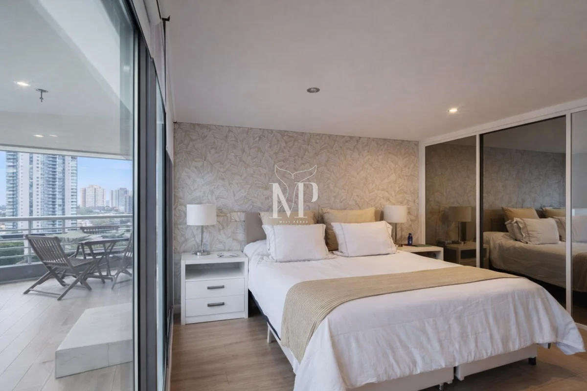 La cocina, equipada con barra, se integra perfectamente al luminoso living-comedor, creando un ambiente acogedor y funcional. Además, contarás con servicios de mucamas y playa, asegurando que cada día sea una experiencia placentera.