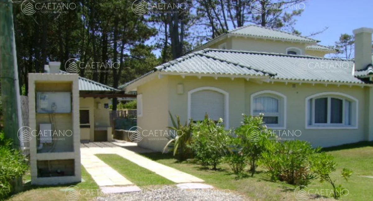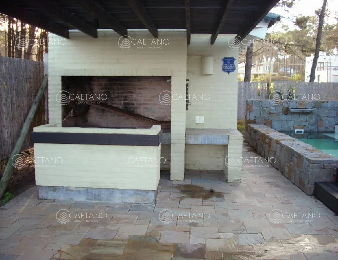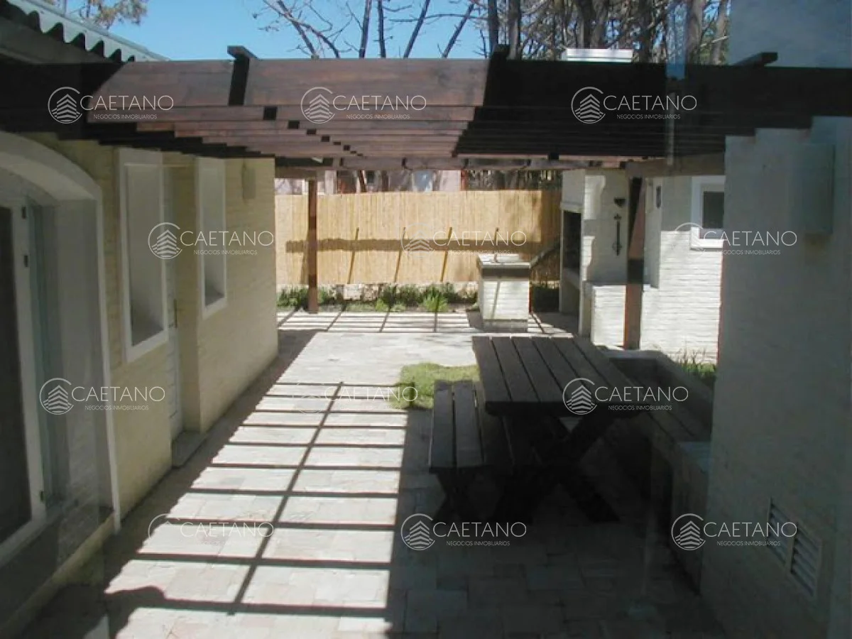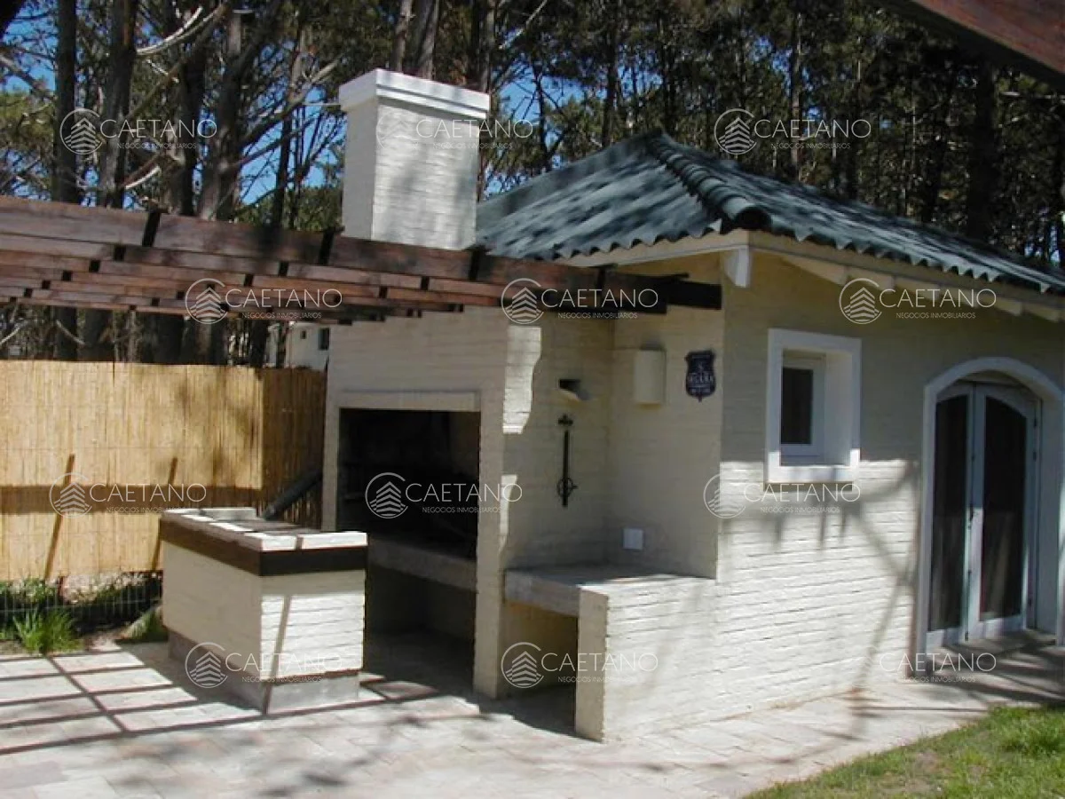 Parrillero y pérgola con mesa y bancos en madera diez personas. Lavadero y tendedero.-Amplio terreno. Riego automatizado. Calefacción por losa radiante.-