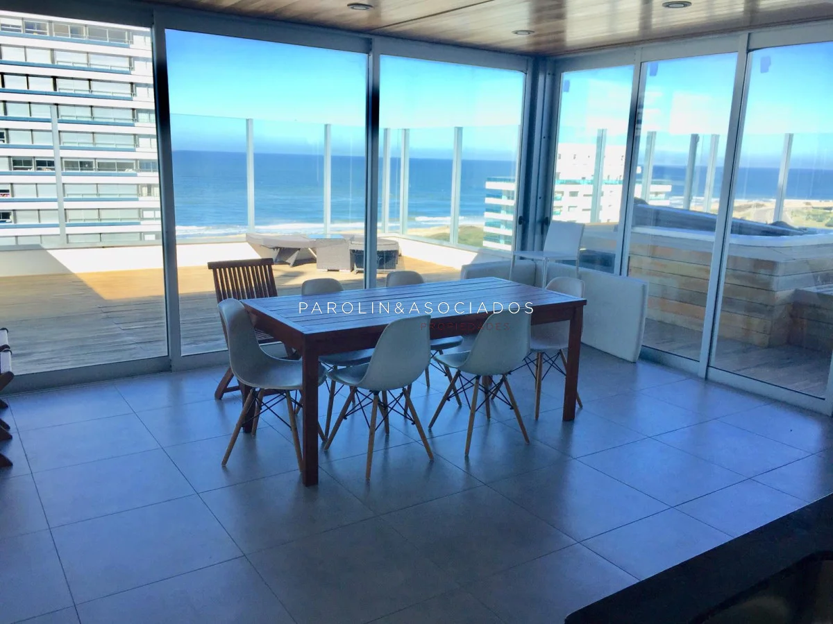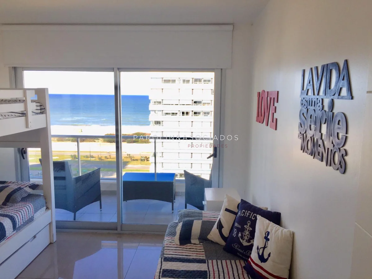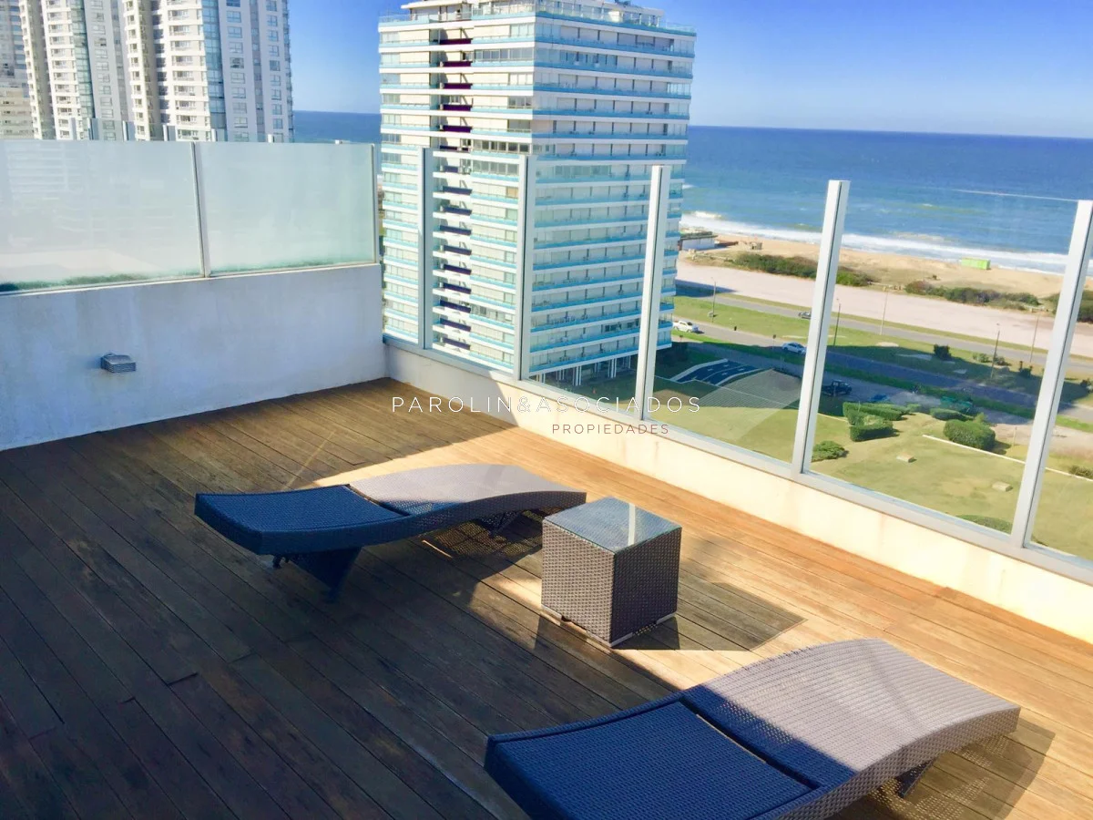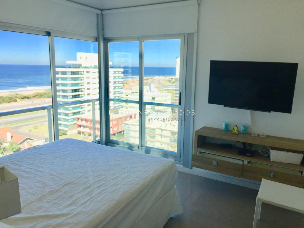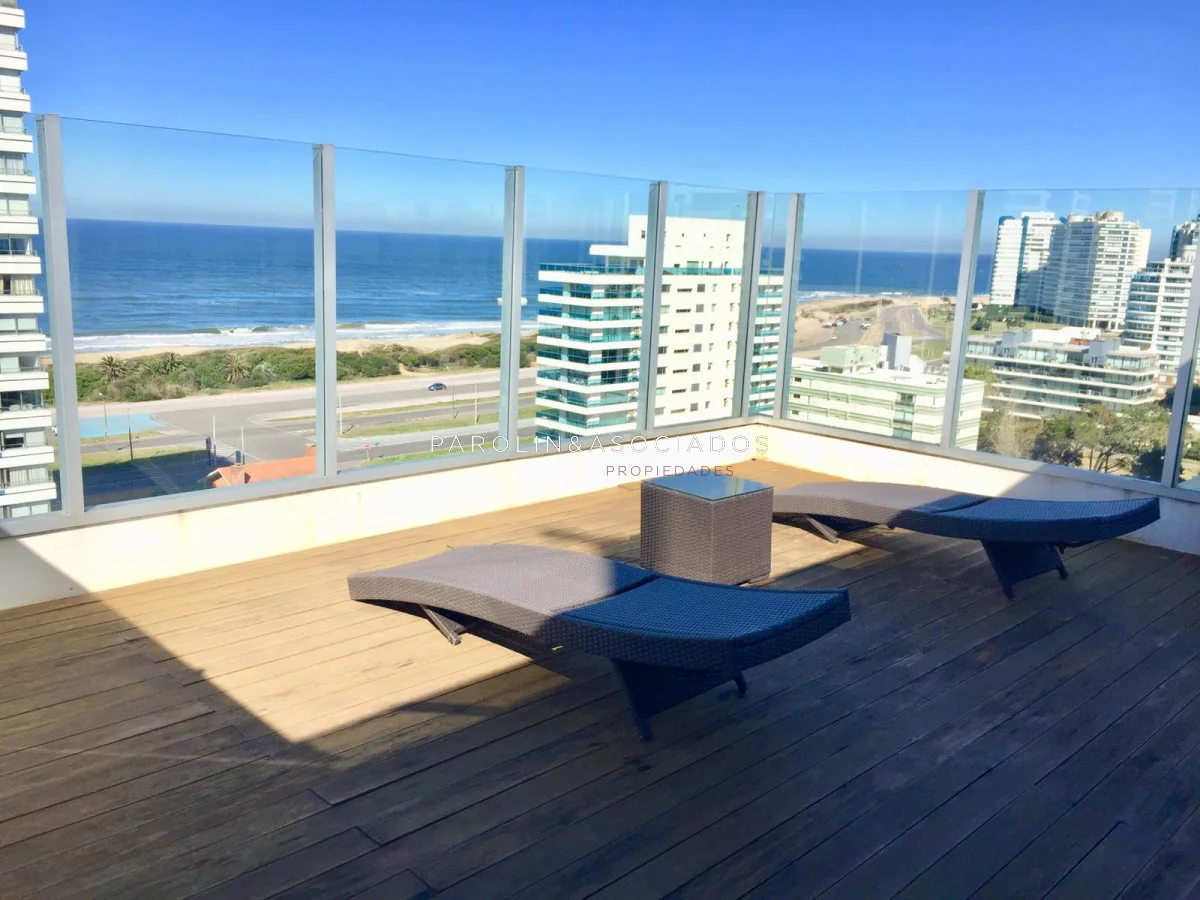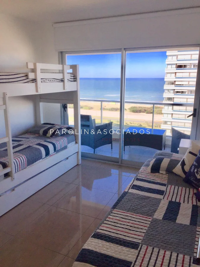 Hermoso apartamento con vista al mar – Playa Brava, Punta del Este. - 2 dormitorios - 2 baños - Living comedor - Cocina definida - Terraza con vista al mar - Garaje - Barbacoa propia en piso 10 con parrillero y jacuzzi El edificio ofrece - Gran hall de entrada - Estar para mayores - Sala de juegos para niños - Sala para adolescentes - Gimnasio de última generación - Piscina exterior climatizada - Deck y solárium - 3 barbacoas en azotea totalmente equipadas - 3 parrilleros en planta baja con modulación para salón de fiestas - Internet con WiFi - Jardines totalmente parquizados - Servicio de playa - Mucama optativa - Recepción 24 hs Parolin and Asociados Propiedades Coordine una visita con nuestros asesores Referencia Interna : Tera-1012