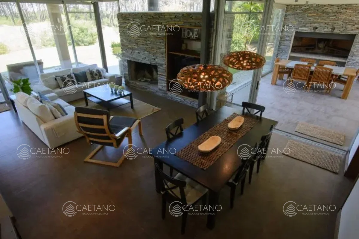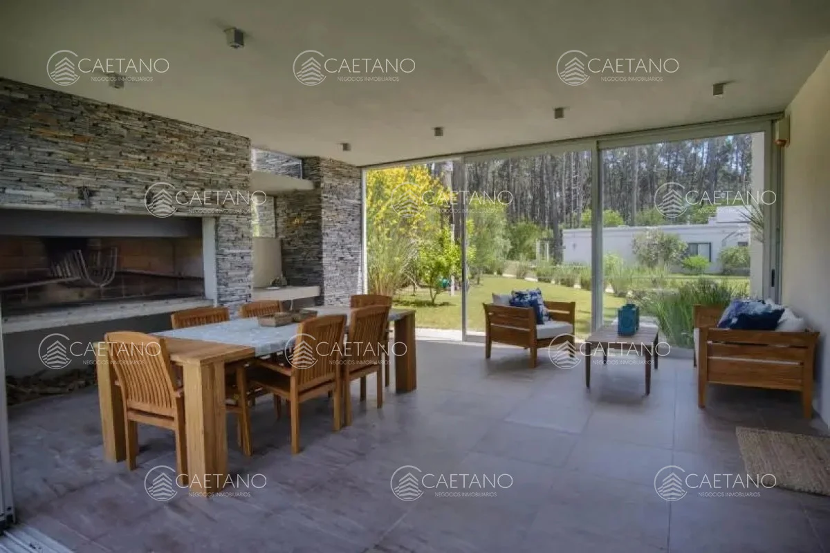 Comedor con mesa extensible para 12 personas. Amplios ventanales con salida a parrillero muy amplio, techado y con cerramiento. En el parrillero mesa 10 personas, sillas, sillones de TEKA.