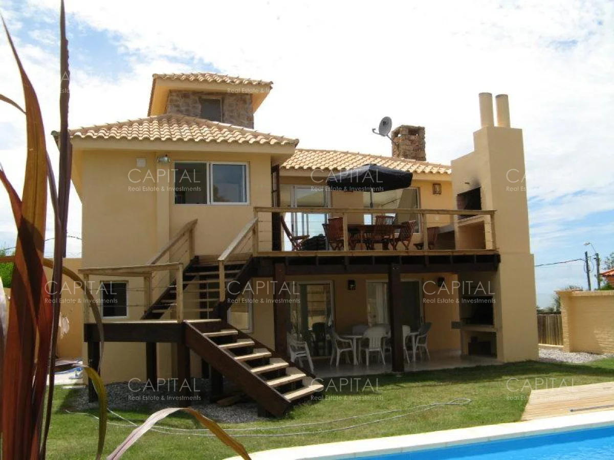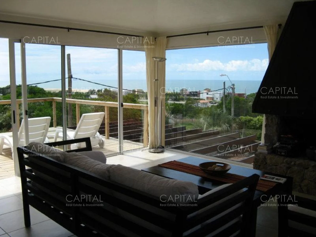 Espectacular casa con vista al mar. Cuenta con cinco dormitorios, tres de ellos en suite, amplia terraza con parrillero, piscina y cerramiento perimetral.